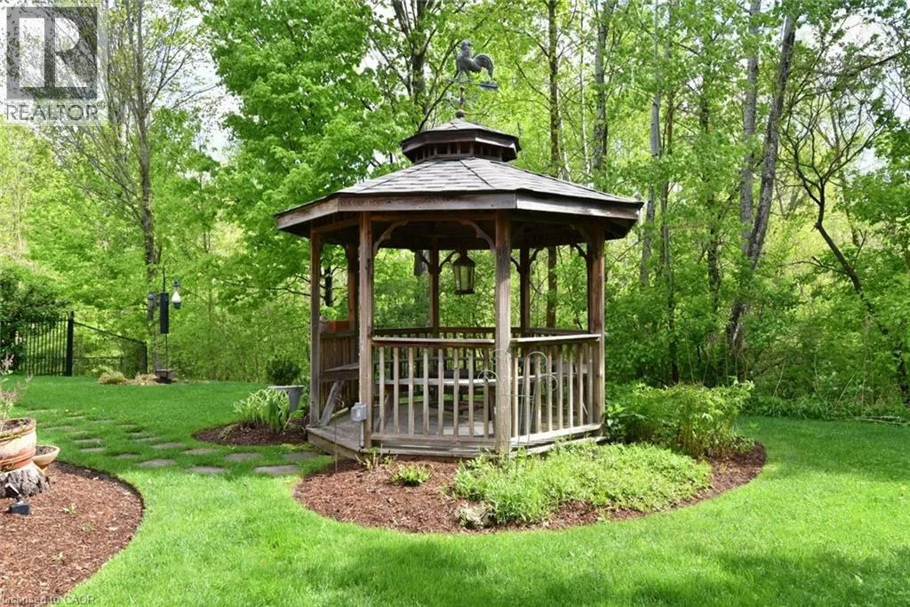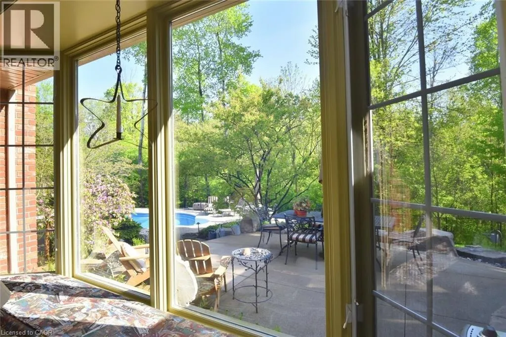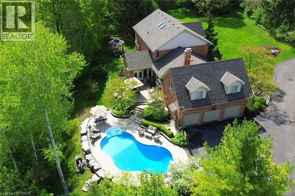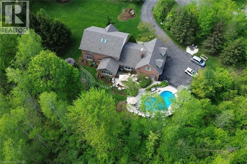 Parkside Dr. in Waterdown - north on Robson Rd, past Connon Nursery A truly magical property! Strategically positioned to capture the woodland views & natural sunlight in the house & on the pool, this custom built, meticulously maintained home on the outskirts of Waterdown is a family's dream come true. Whether playing games on the sprawling lawn, reading in the gazebo, lounging by the pool, hiking through your own woods or finishing your day with smores by the campfire, this home is sure to suit a growing family. Entertain in the formal living room, dining room with recessed buffet, cozy up by the fire in the family room or take in the views in the sun filled sunroom and count the endless number of bird species always at the feeder. Enjoy gathering around the island in the spacious kitchen with ample cabinets & a desk area. Enjoy a restful primary suite and 3 additional bedrooms in the main house. Work from home with a separate private entrance to office. Also there is a 3pce bath conveniently located to serve the main floor & pool guests adjacent to the laundry room entrance and access to the loft / office with kitchen area that can easily accommodate a nanny/ in-law /teenager suite and has its own heat pump for heating & cooling. The lower level has an excellent workshop & is otherwise an open canvas for whatever your heart desires. This is where dreams do come true! (id:27476)