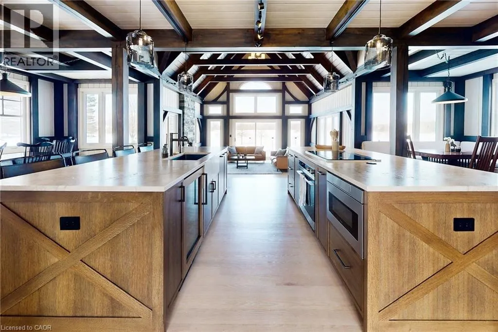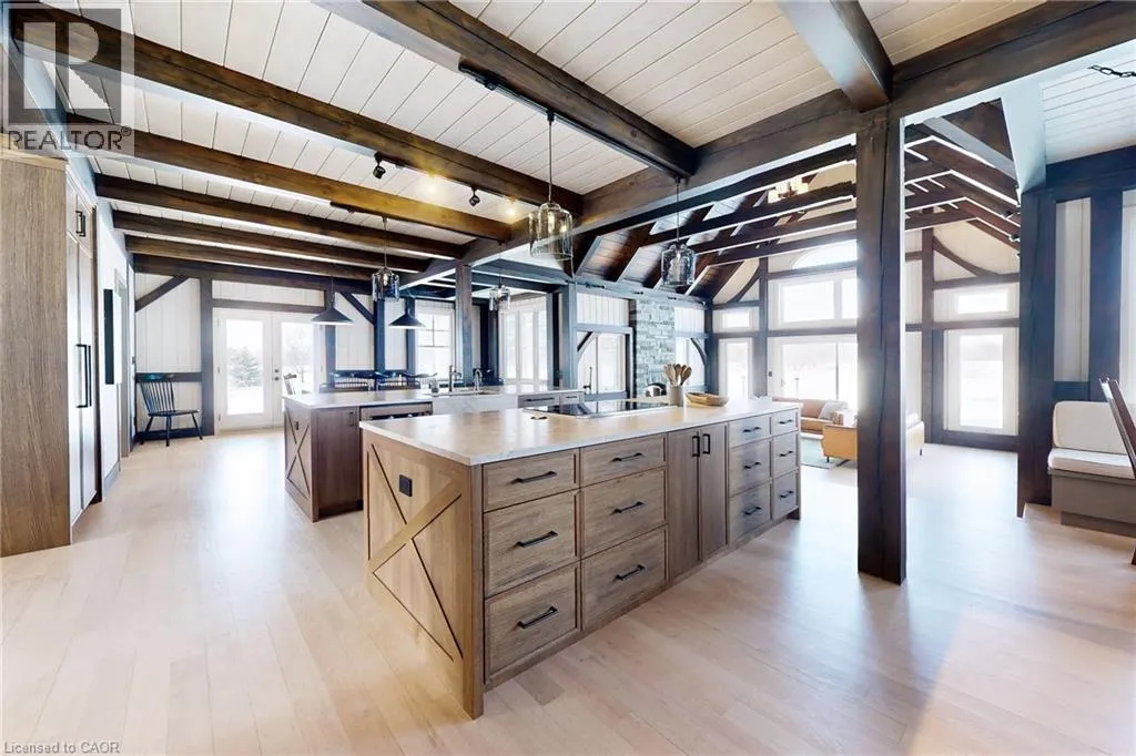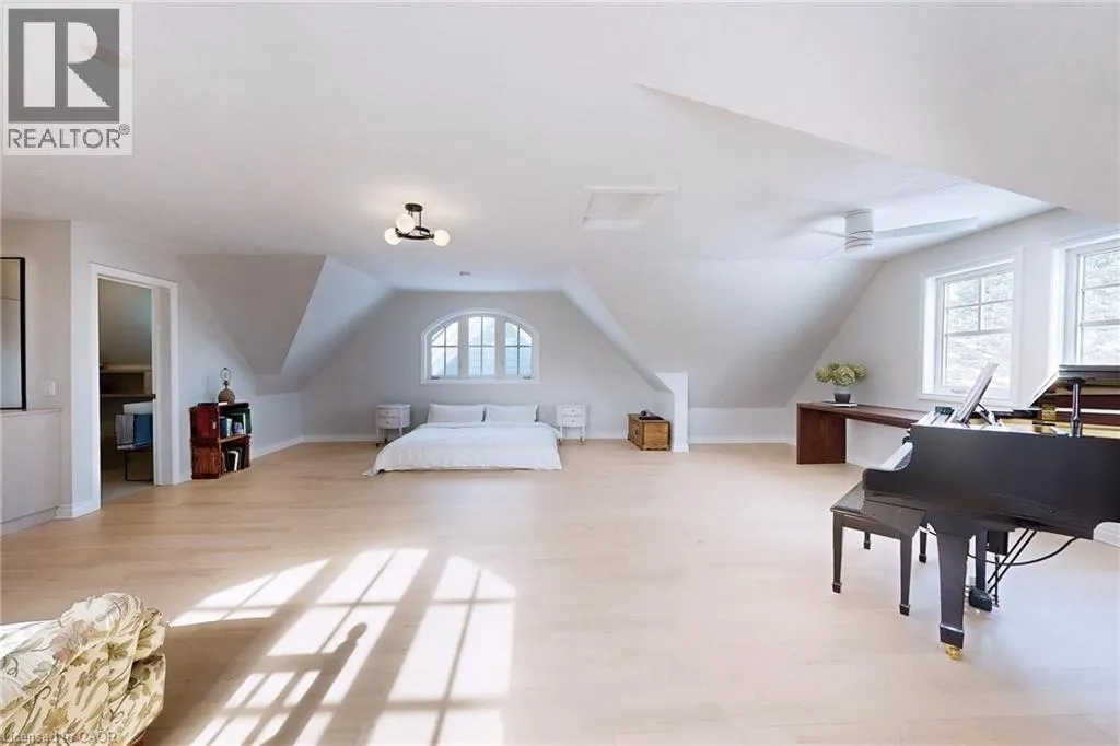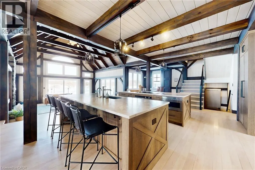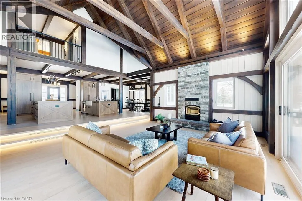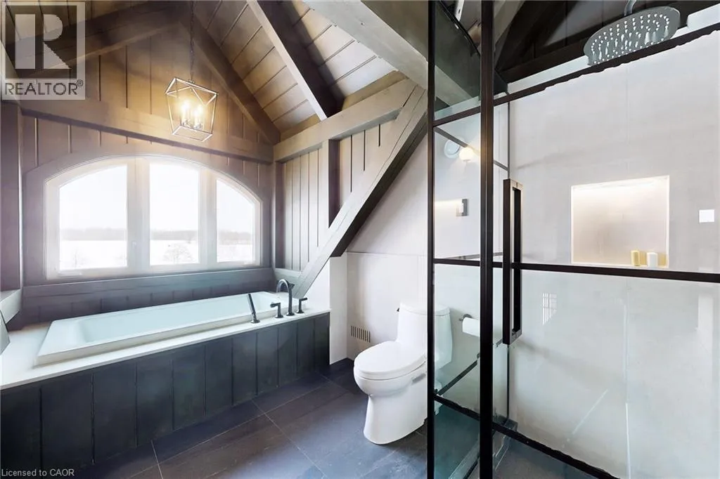 Centre Rd to Concession 5 Rd E Experience the ultimate combination of productive farmland and country estate living on 91.6 acres at 485 Concession 5 Rd E. With 63 acres of actively farmed/leased land carrying Farm Property Class tax status, enjoy substantially reduced property taxes, approximately 25% of the residential rate on eligible farmland. The current tenant farmer contributes approx. $12,000/year in lease income, offsetting costs while preserving the fertile, organically farmed fields. This versatile property features rolling farmland, mature woodlands, 800+ evergreen trees, and a serene spring-fed pond. A 30âx90â Quonset hut provides ample storage for equipment or farming operations. The estate includes a fully renovated 2.5-storey, 6-bed, 6-bath main residence with an attached 2-bed, 2-bath guest house, updated with $2M+ in premium finishes (2022/23). Indoor-outdoor living is effortless with a wrap-around veranda and glass-railed deck overlooking the land. Rarely does a farm offer this combination of income potential, reduced taxes, and luxury living, just 4 minutes from downtown Waterdown, a truly unique and versatile property. (id:27476)
