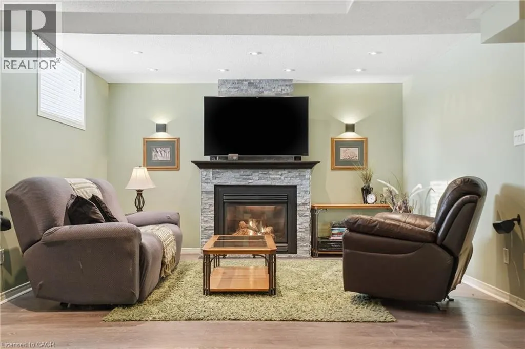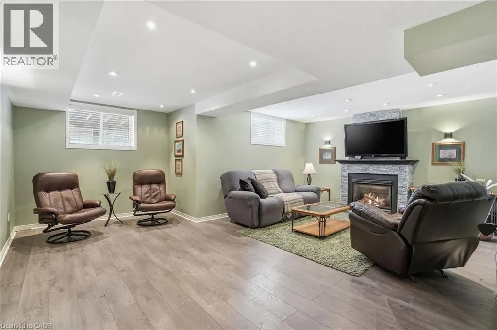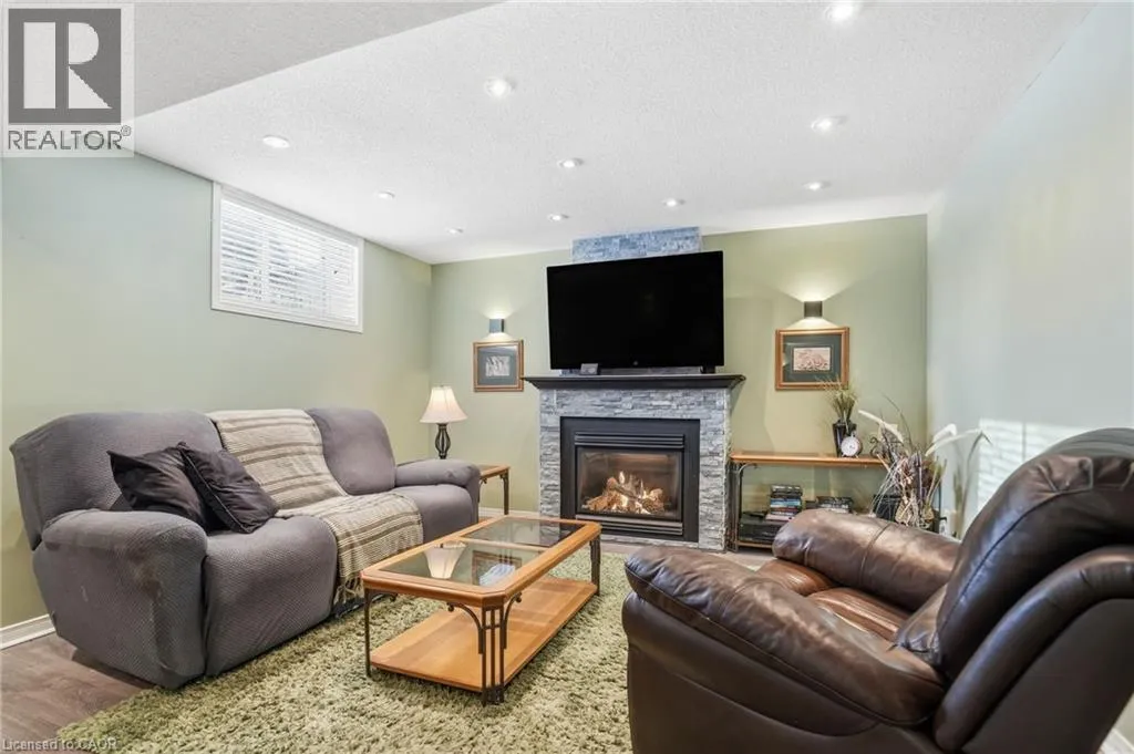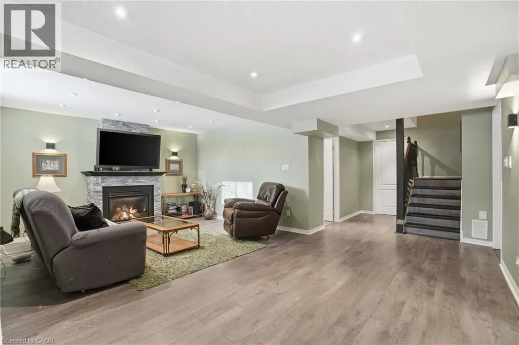 Dundas St E to Riley St, before Premier Rd This home offers A+ curb appeal with a welcoming front porch, beautiful front door and spacious foyer. The standout kitchen is exceptional in size and flooded with natural light, sure to impress anyone who loves to cook and entertain! It offers abundant granite counter space, extensive cabinetry, a large island and built-in wall oven, microwave and cooktop. The main floor features a comfortable family room with electric fireplace, plus hardwood floors and hardwood stairs with wrought iron spindles throughout the main and second levels. Upstairs are three bedrooms, including a stunning primary suite with walk-in closet and a beautifully renovated ensuite featuring a stand-alone tub, glass-enclosed shower, double vanity with quartz countertops and a light-up mirror. The finished basement includes a fourth bedroom, rec room with gas fireplace, laundry area and a huge storage area (ideal for storing outdoor cushions, suitcases and holiday décor!) Enjoy outdoor living in the fully fenced backyard with the composite deck with black railing and gas BBQ hookup. Thoughtfully laid out and full of space, this home is ideal for families while equally appealing to couples seeking room to grow, all within walking distance to schools, shopping, restaurants, parks, the YMCA, public transit and with easy access to highways and the GO station. Donât be TOO LATE*! *REG TM. RSA. (id:27476)