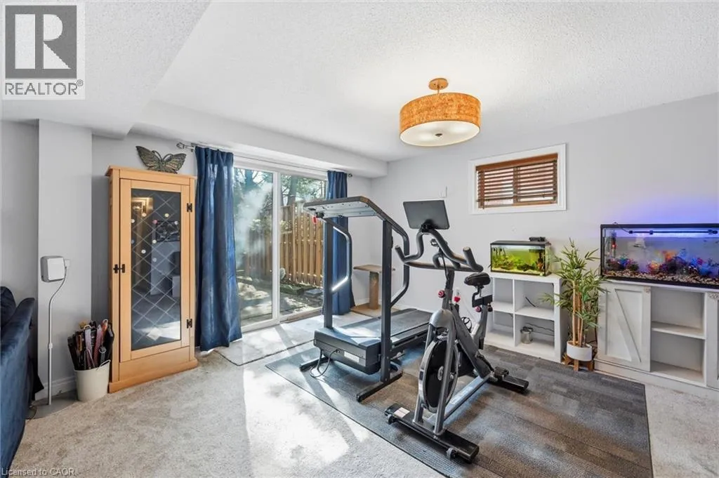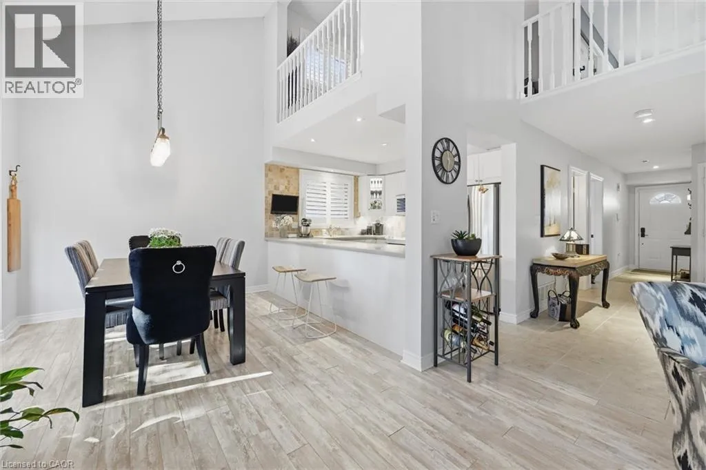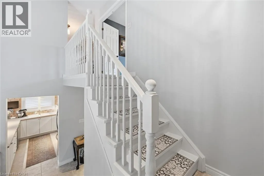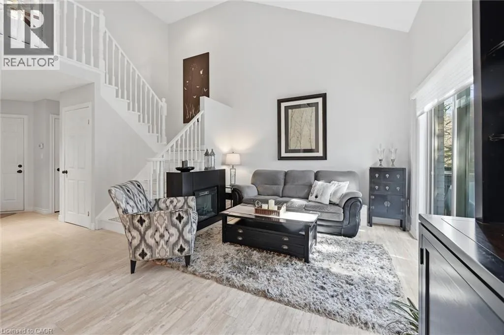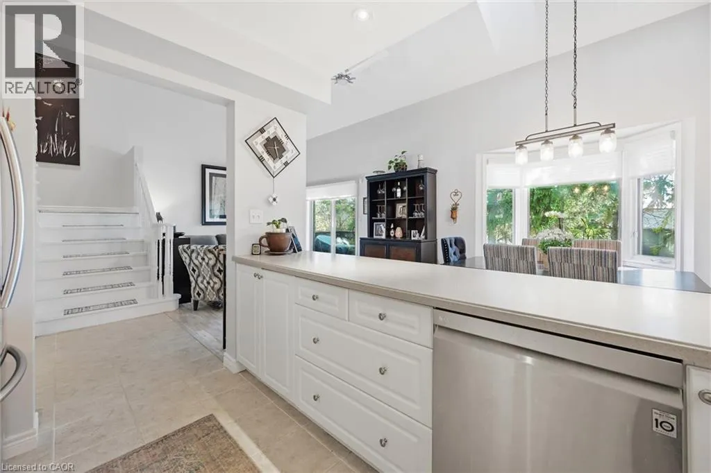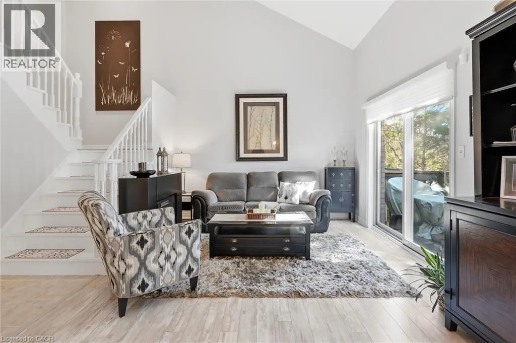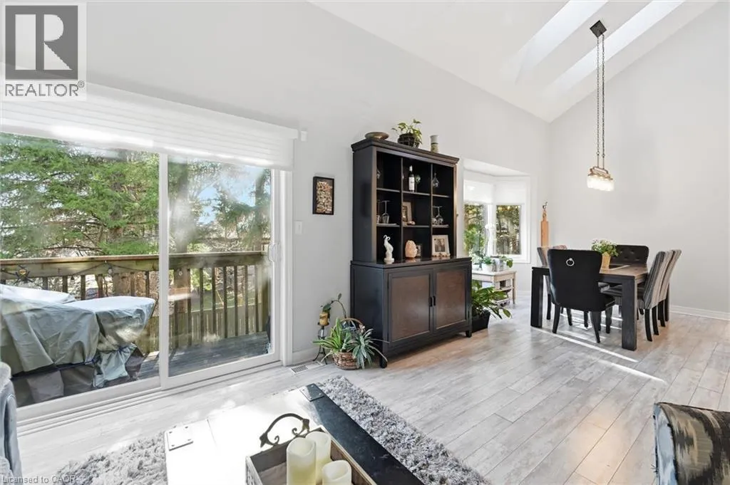 Dundas St E. & Hamilton St S. Absolutely stunning home in Waterdown, located in very small executive townhouse complex ,some semidetached, some townhomes , walking distance to charming downtown area, close to walking trails and waterfalls , and minutes from quaint coffee shops, restaurants and other amenities. This home offers maintenance free living with all 3 levels finished in spectacular fashion. There is double parking in front of the garage, leading to the charming front porch.- inside, you will find an open concept living, dining kitchen area, with soaring cathedral ceiling with skylights ,lots of natural light, and sliding doors to a private balcony,. The dining room opens to the functional kitchen with white cabinetry, and quartz counters. loads of counter area , double sinks , and french door refrigerator. Also on this level is a spacious bedroom with california shutters and a  full bathroom.  Upstairs through double doors is a  gorgeous primary bedroom, with an extra large walk in closet, ensuite bathroom with soaker tub and separate shower . On this level you will find the loft type den or family room-- great for tv watching or working at your computer .Downstairs offers  a huge rec room. exercise area, large bedroom, walk in closet, cold room and storage,- the walkout from this level takes you out to a patio. Everything in this home is finished to perfection- a bedroom and full bath on every level, entrance from the garage, and so much more  -- don't miss out on a great opportunity (id:27476)