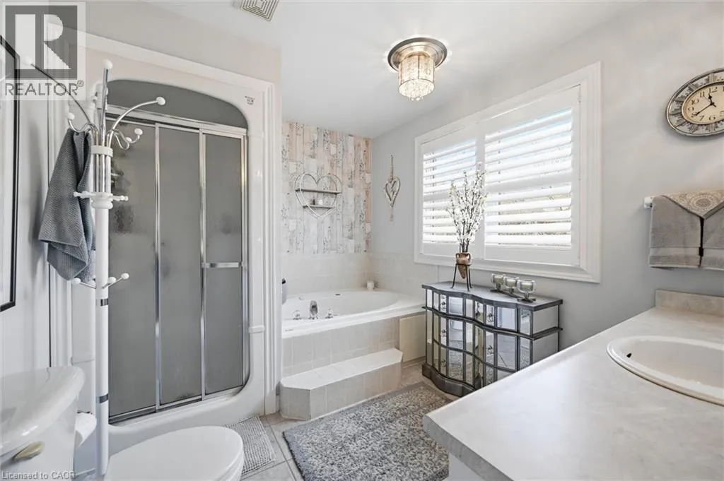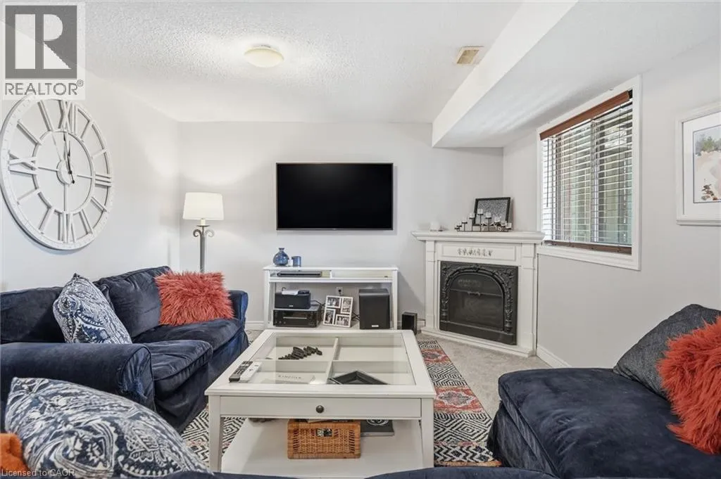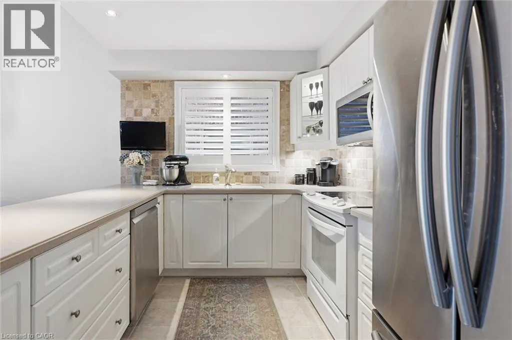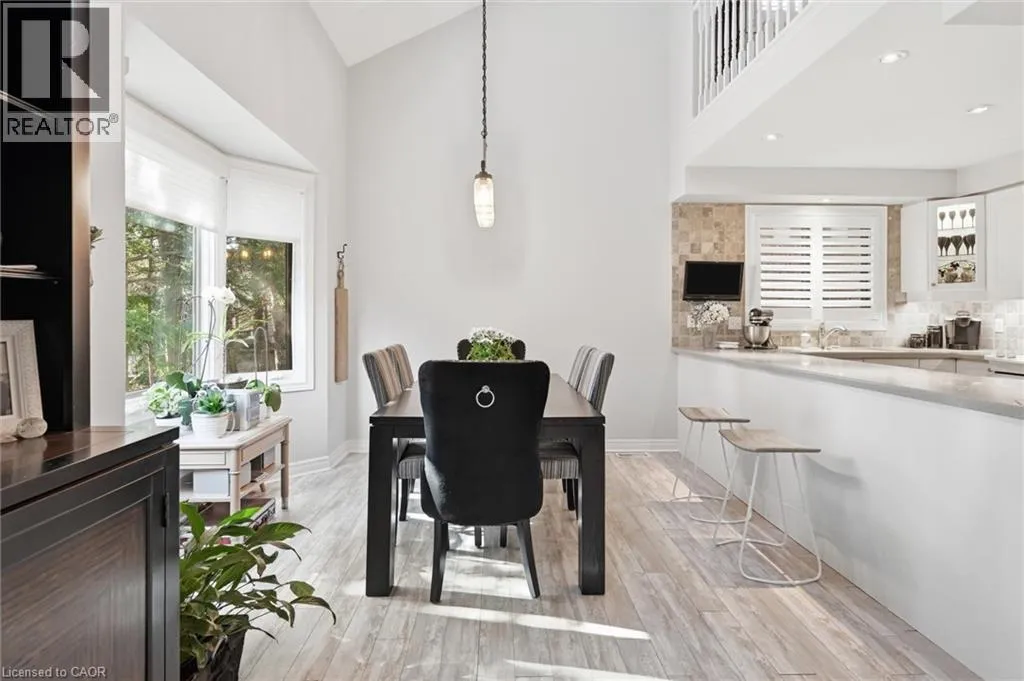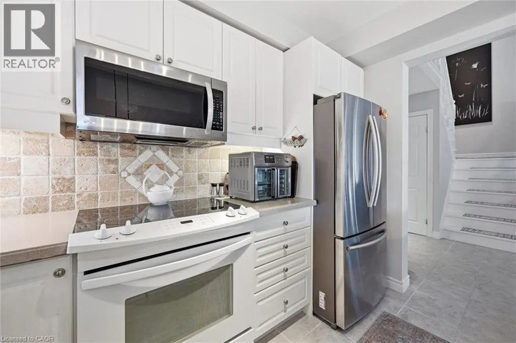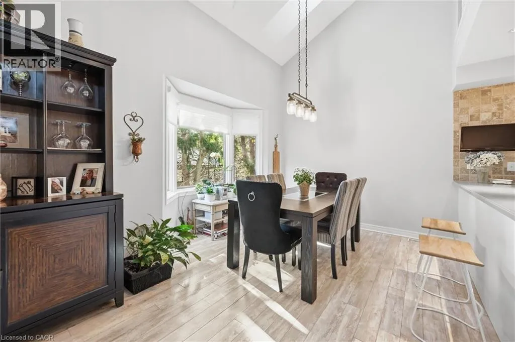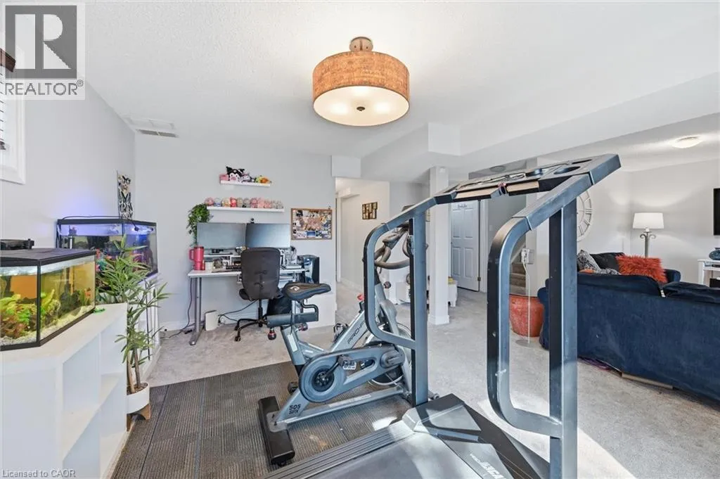 Dundas St E. & Hamilton St S. Absolutely stunning home in Waterdown, located in very small executive townhouse complex ,some semidetached, some townhomes , walking distance to charming downtown area, close to walking trails and waterfalls , and minutes from quaint coffee shops, restaurants and other amenities. This home offers maintenance free living with all 3 levels finished in spectacular fashion. There is double parking in front of the garage, leading to the charming front porch.- inside, you will find an open concept living, dining kitchen area, with soaring cathedral ceiling with skylights ,lots of natural light, and sliding doors to a private balcony,. The dining room opens to the functional kitchen with white cabinetry, and quartz counters. loads of counter area , double sinks , and french door refrigerator. Also on this level is a spacious bedroom with california shutters and a  full bathroom.  Upstairs through double doors is a  gorgeous primary bedroom, with an extra large walk in closet, ensuite bathroom with soaker tub and separate shower . On this level you will find the loft type den or family room-- great for tv watching or working at your computer .Downstairs offers  a huge rec room. exercise area, large bedroom, walk in closet, cold room and storage,- the walkout from this level takes you out to a patio. Everything in this home is finished to perfection- a bedroom and full bath on every level, entrance from the garage, and so much more  -- don't miss out on a great opportunity (id:27476)