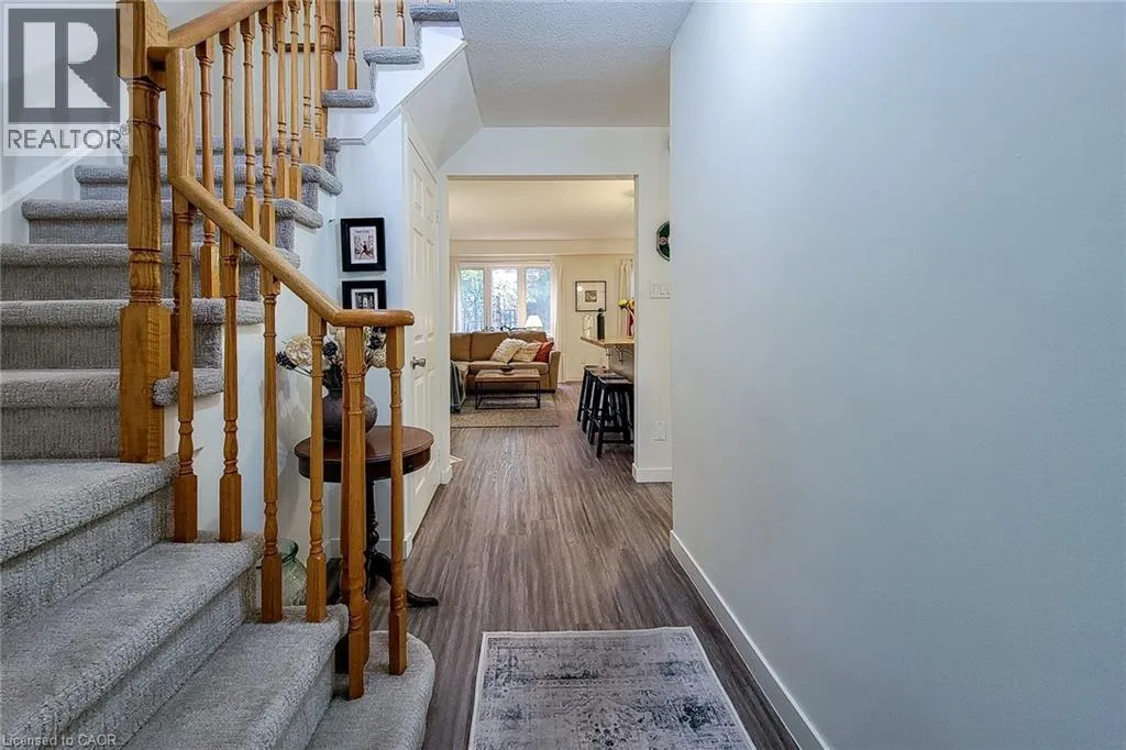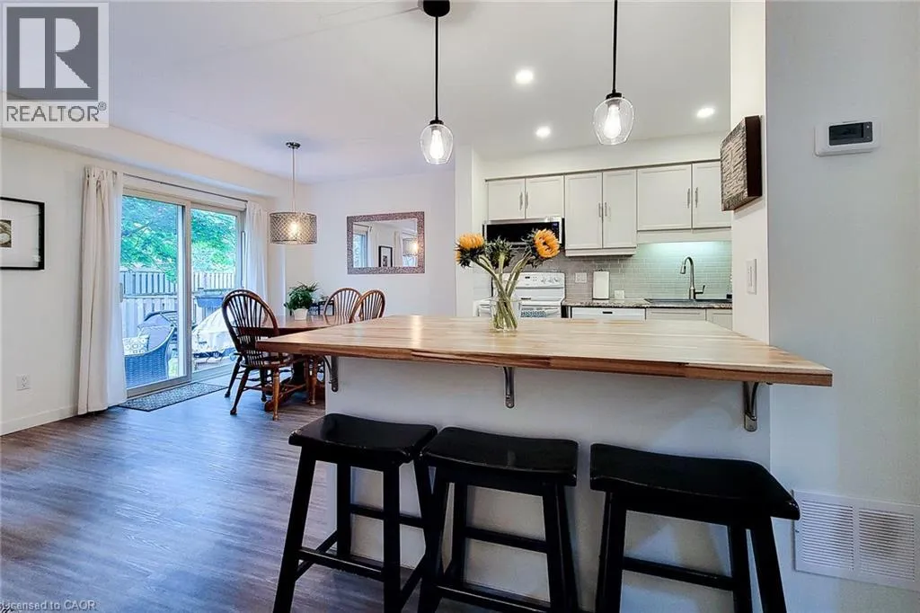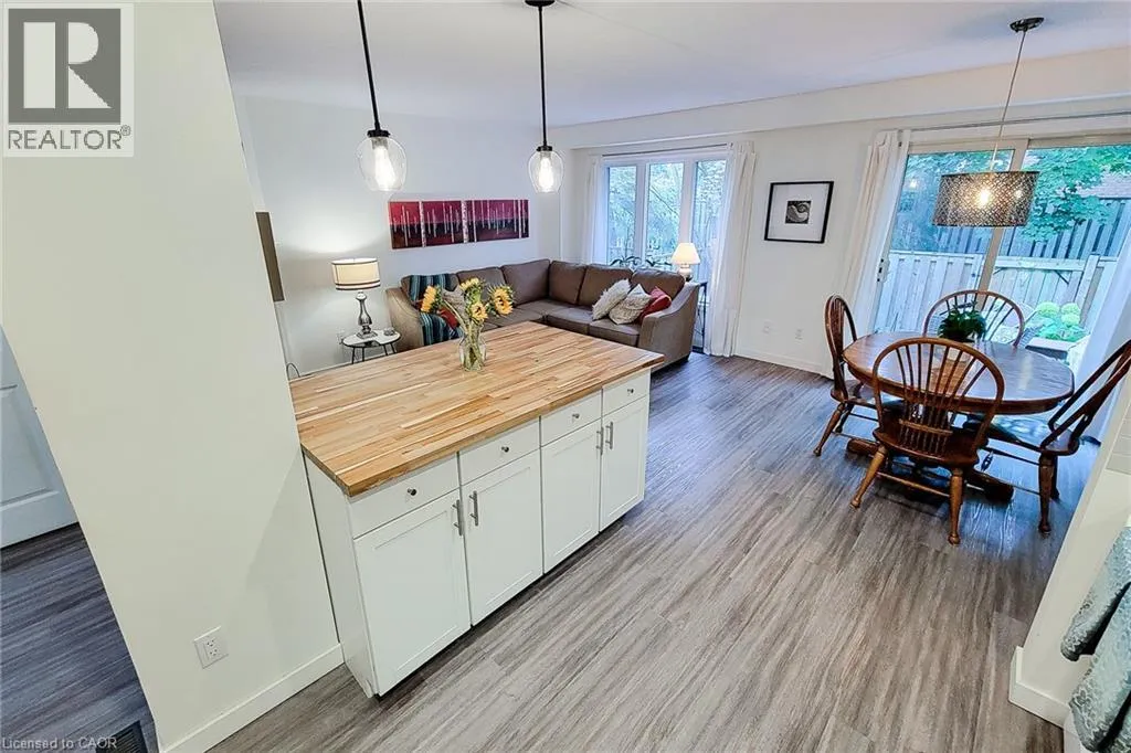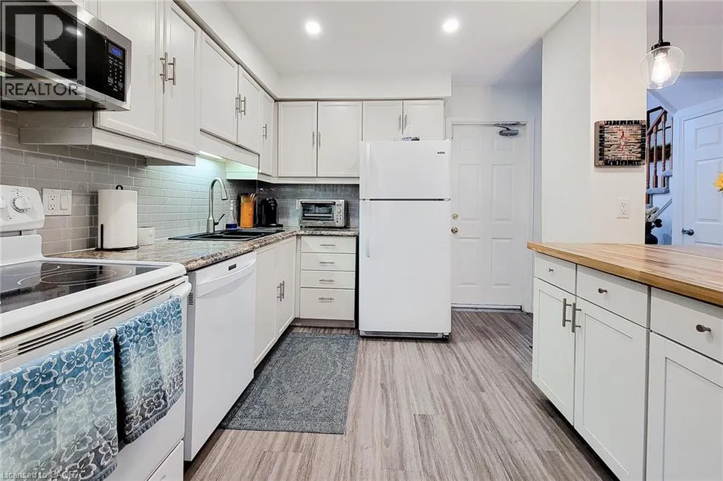 Welcome to this charming townhouse in a mature, family-friendly neighbourhood surrounded by single-family homes and an Elementary school. Ideally located within walking distance to schools, shopping, the YMCA, transit, medical facilities, parks and more. This home offers unbeatable convenience and a great lifestyle. The bright and spacious main floor features an open-concept layout with a modern kitchen, including an island, flowing into the dining area and a great room with a cozy fireplace. Enjoy easy access to the rear deck, a convenient two-piece bathroom and direct entry from the garage. Upstairs, you'll find three generous bedrooms. The primary bedroom offers ensuite privileges to the main four-piece bath for added comfort. The partially finished basement includes a laundry area, utility and storage space and a versatile area ready for your personal touch-ideal for a home office, gym, or recreation room. Professionally painted, this home is move-in ready and shows beautifully. Book your private showing today-this one won't last. * Recent renovations to the front porch/steps not reflected in photos. Please do not let the cat out. (id:27476)