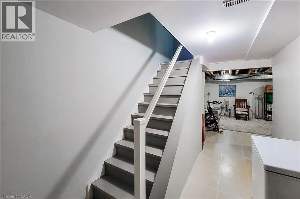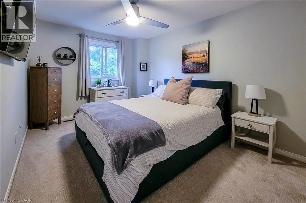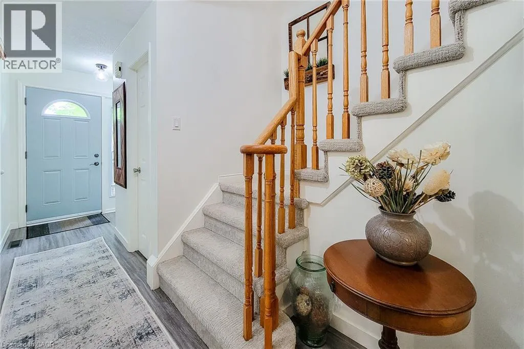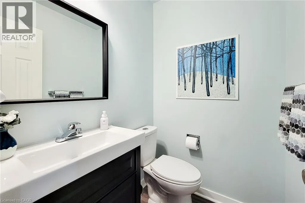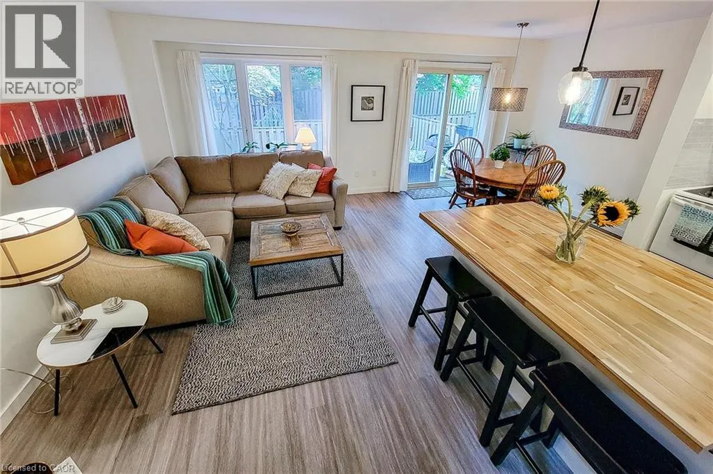 Welcome to this charming townhouse in a mature, family-friendly neighbourhood surrounded by single-family homes and an Elementary school. Ideally located within walking distance to schools, shopping, the YMCA, transit, medical facilities, parks and more. This home offers unbeatable convenience and a great lifestyle. The bright and spacious main floor features an open-concept layout with a modern kitchen, including an island, flowing into the dining area and a great room with a cozy fireplace. Enjoy easy access to the rear deck, a convenient two-piece bathroom and direct entry from the garage. Upstairs, you'll find three generous bedrooms. The primary bedroom offers ensuite privileges to the main four-piece bath for added comfort. The partially finished basement includes a laundry area, utility and storage space and a versatile area ready for your personal touch-ideal for a home office, gym, or recreation room. Professionally painted, this home is move-in ready and shows beautifully. Book your private showing today-this one won't last. * Recent renovations to the front porch/steps not reflected in photos. Please do not let the cat out. (id:27476)