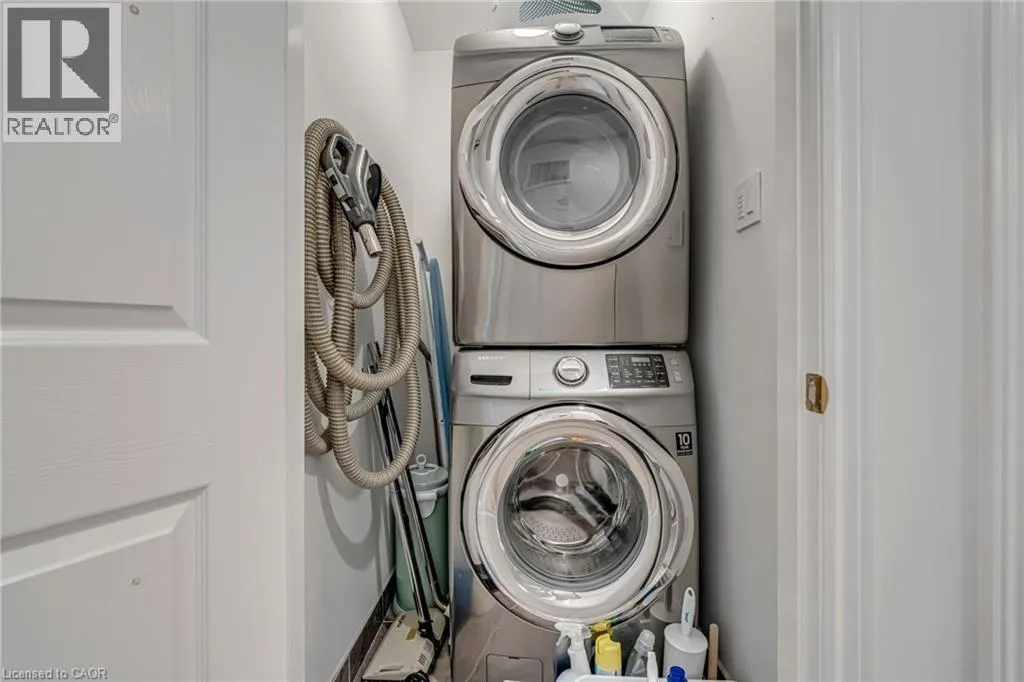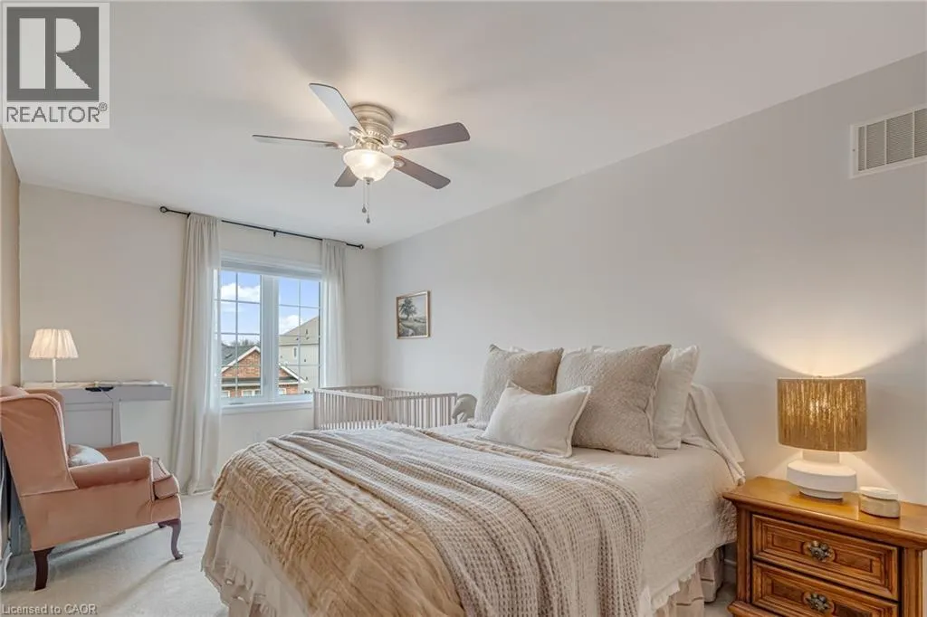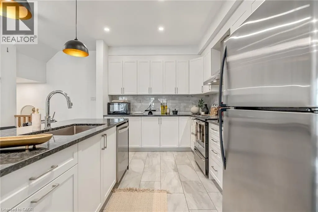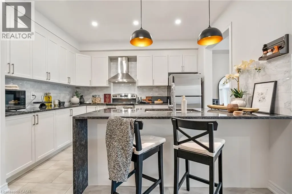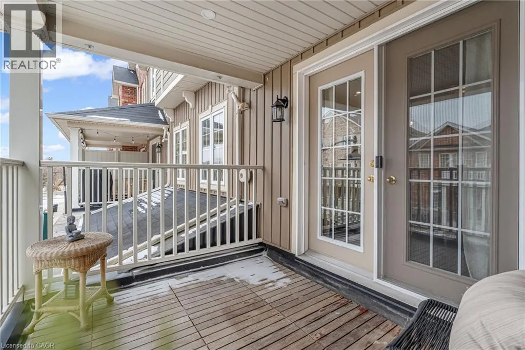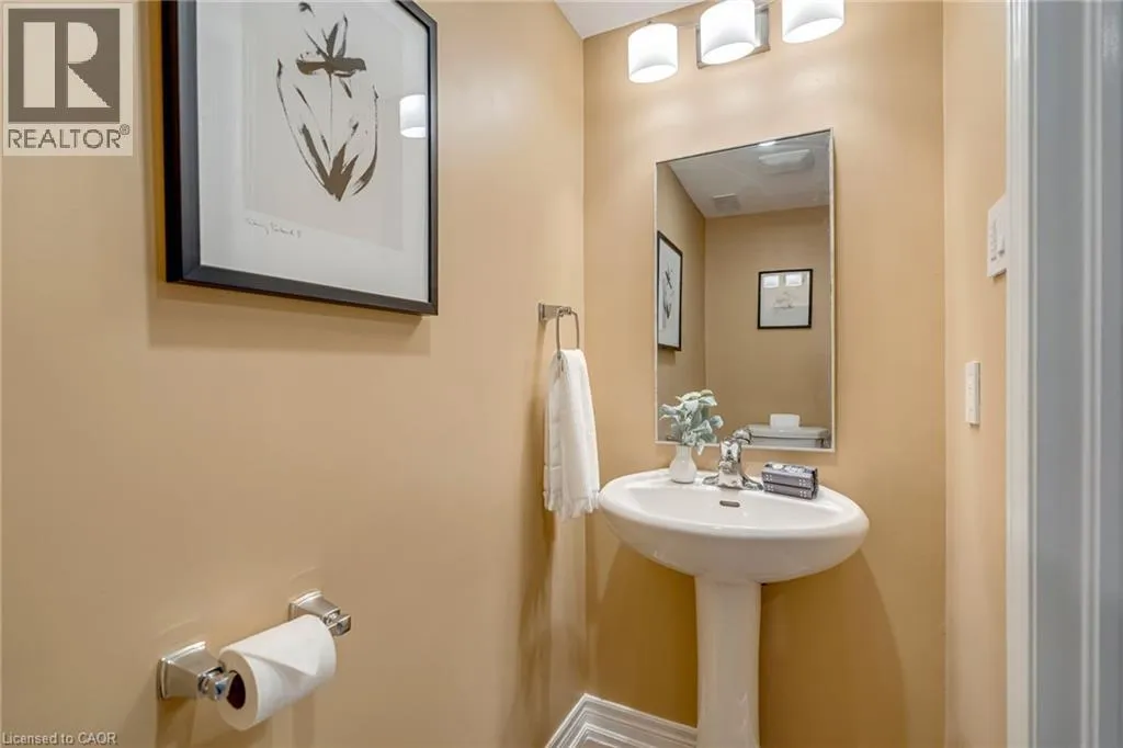 North of Parkside Dr. Turn left from Hamilton ST N onto Nisbet Blvd. Turn right into complex. Welcome to this bright and spacious 3-storey, 2-bedroom, 1.5-bathroom townhome tucked away on a quiet, family-friendly cul-de-sac in the heart of Waterdown. Known for its welcoming atmosphere and friendly neighbours, this beautifully-maintained home offers the perfect blend of comfort, convenience and community. The ground level features a welcoming foyer with a convenient 2-piece bathroom, inside entry from the garage, and ample closet space. The main floor offers a bright, open-concept living and dining area with wide plank hardwood floors and walkout access to a private balconyâperfect for morning coffee or evening relaxation. The modern white kitchen is designed for both style and function, featuring shaker-style cabinetry, stainless steel appliances, double sink, marble countertops, and a large four-seater island. Upstairs, youâll find two spacious bedrooms including a primary suite with walk-in closet and ensuite privilege to the beautifully finished main bathroom with mosaic tile flooring, glass-enclosed tub, and oversized vanity. Bedroom-level stackable laundry adds everyday convenience. Enjoy the quiet court and friendly neighbourhood while being just a short walk to local shops, restaurants, parks, and schools, and only minutes from the countryside and nearby Carlisle. Commuters will appreciate quick access to major routes including Highway 403 and 407, and Aldershot GO Station. Move-in ready and perfectly located on a quiet, family-friendly court, this home offers easy living just steps from parks, schools and the local amenities! (id:27476)