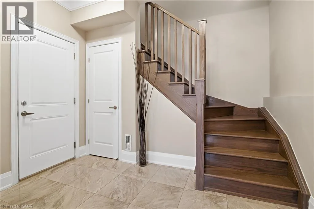 Burke to Humphrey Absolutely stunning 3 bed, 2 bath townhome nestled on a premium corner lot in the highly sought after community of Waterdown! This beautifully maintained home shows like new and is loaded with upgrades throughout â California shutters, new light fixtures, and freshly painted top to bottom, No Carpet. The modern kitchen features stainless steel appliances, and the in-suite stacked washer & dryer adds everyday convenience. Enjoy the privacy of a corner lot , plus one of the few units in the complex with an oversized driveway that fits 2 full-sized vehicles back-to-back â in addition to your single-car garage with inside entry! Step out onto your gorgeous south-facing balcony and take in the beautiful views. Minutes from downtown Waterdown, Burlington, and Highway access! This move-in ready gem is sure to go quick! (id:27476)