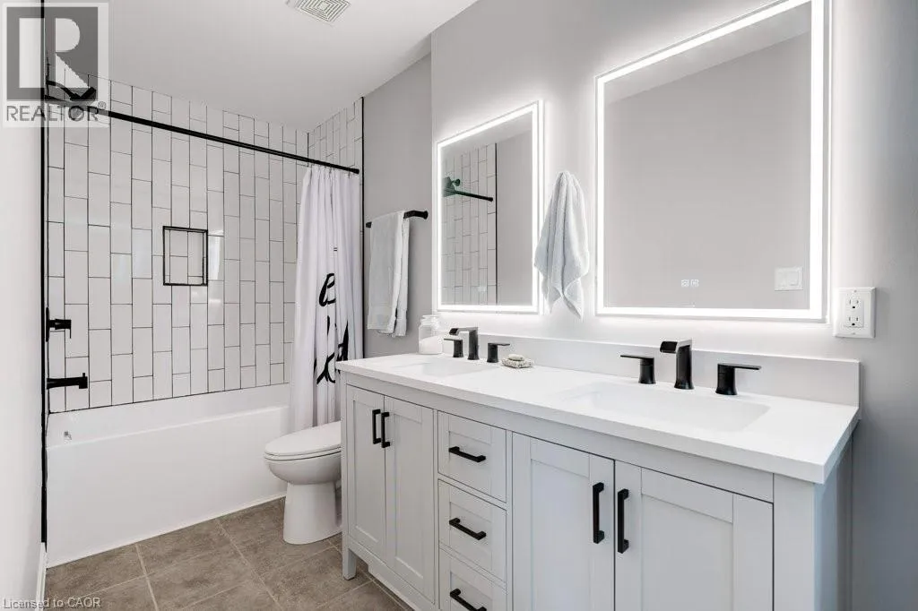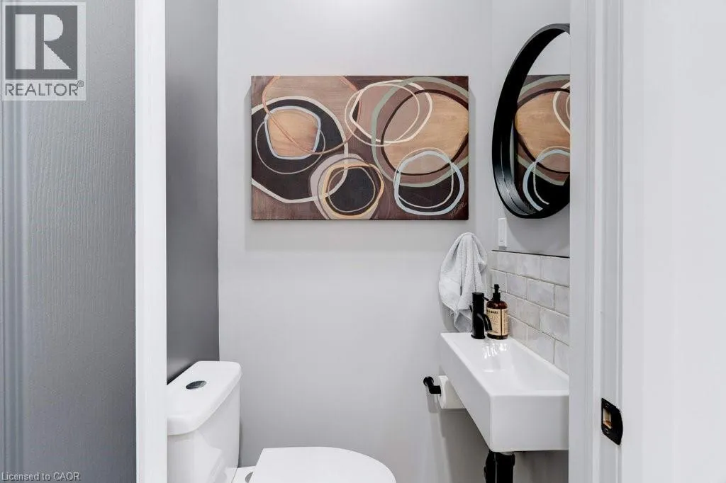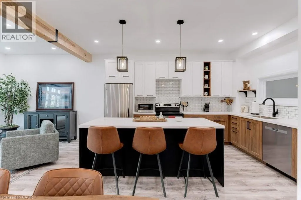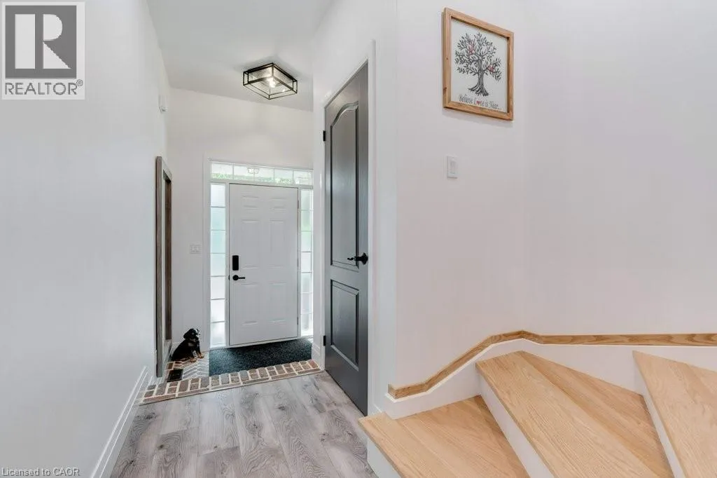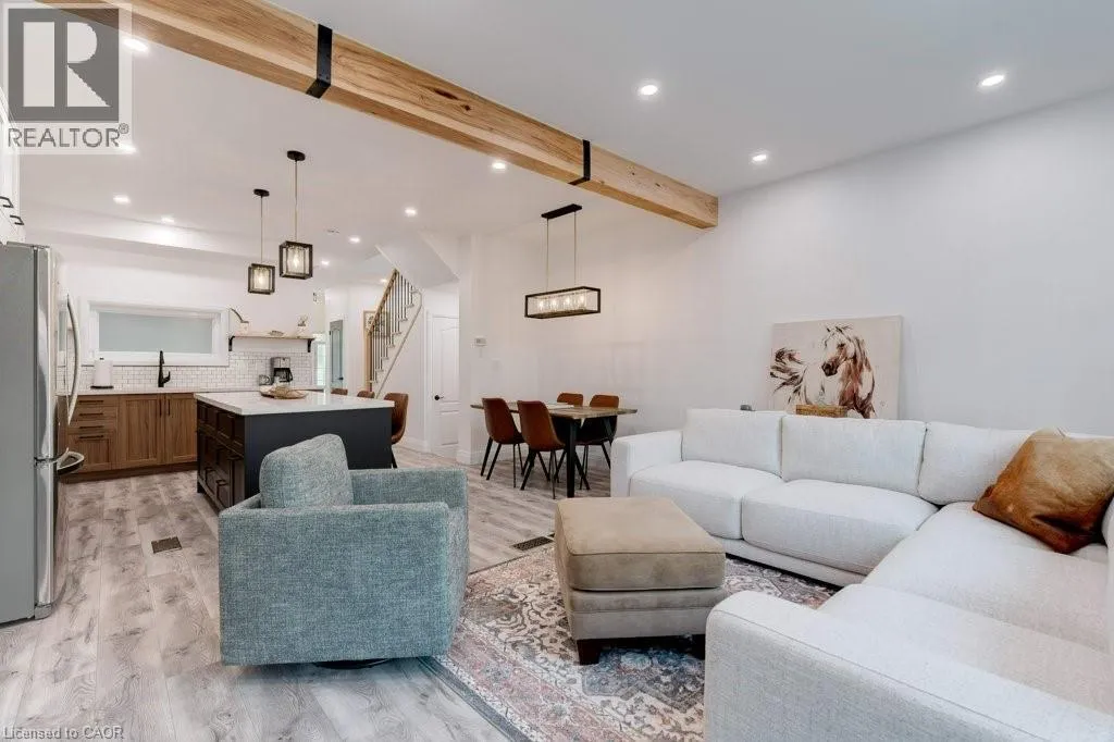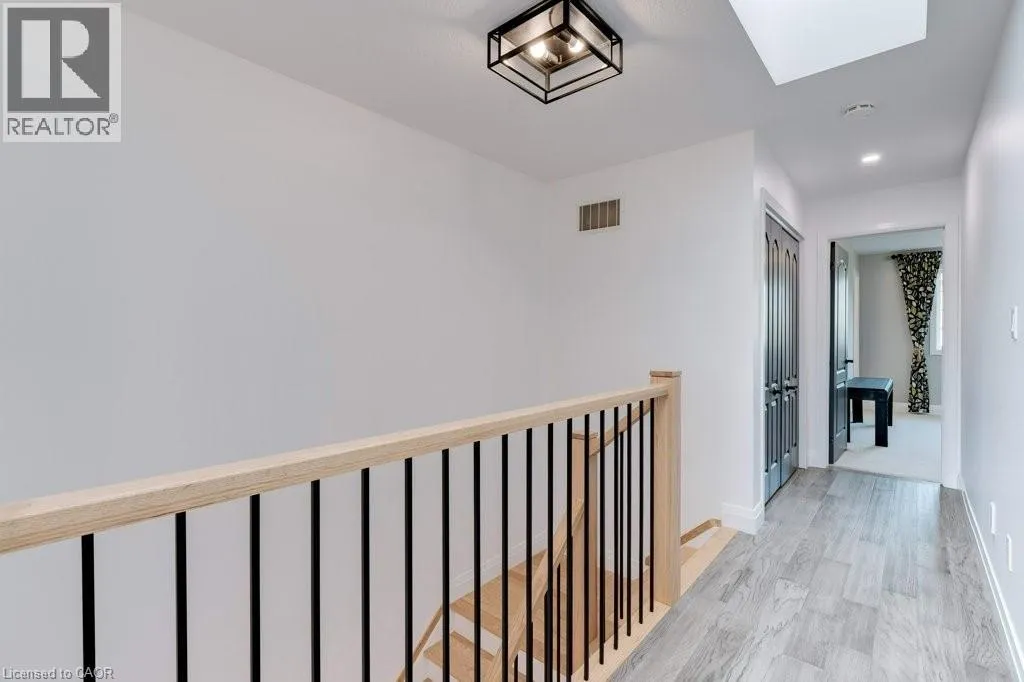 HAMILTON ST N TO PARKSIDE DR TO COLE ST TO BROWNVIEW DR This beautifully upgraded freehold townhome in the heart of Waterdown delivers an exceptional blend of modern design, everyday comfort, and unbeatable convenience. Bathed in natural light, the home feels bright and inviting throughout, with a striking central skylight that fills the upper level with warmth. Completely renovated with permits in 2022, the thoughtfully reimagined layout offers seamless open-concept living that effortlessly connects indoor and outdoor spacesâideal for both family life and entertaining. At the centre of the home is a stunning custom kitchen, completed in 2023, combining style and functionality with high-end finishes. A handcrafted hickory-clad beam adds character, while the custom staircase and railings create a standout architectural feature. Organization is elevated with built in custom California Closets installed in every bedroom and the upper-level laundry area, ensuring practical, well-designed storage throughout. Extensive upgrades provide both comfort and peace of mind, including a new roof in 2023 with a 40-year warranty, updated flooring, carpet, trim, and fresh paint. Roxul Safe ânâ Sound insulation has been added to the main floor ceiling, interior walls, and party walls for enhanced privacy and quiet. The ducts and furnace were professionally cleaned in 2023, completing the homeâs comprehensive list of improvements. Outside, professionally landscaped yard feature low-maintenance turf in the back, offering year-round greenery with minimal upkeep. Perfectly situated close to schools, parks, trails, the YMCA, shopping, dining, and vibrant downtown Waterdown, this home also provides quick access to Aldershot GO Station and major highways including the QEW, 403, 407, and Highway 6. Stylish, turnkey, and impeccably maintained, this is a rare opportunity to own in one of Waterdownâs most sought-after communities. Donât be TOO LATE*! *REG TM. RSA. (id:27476)