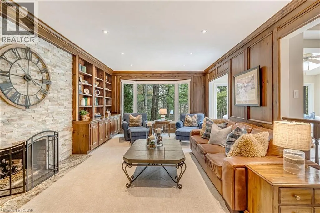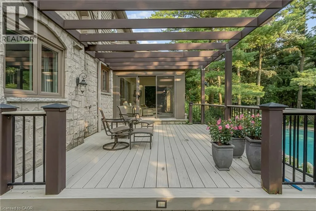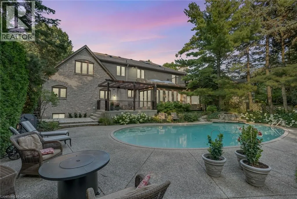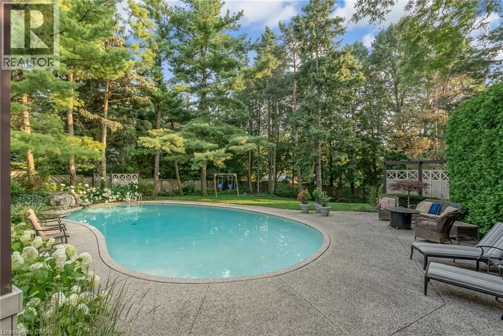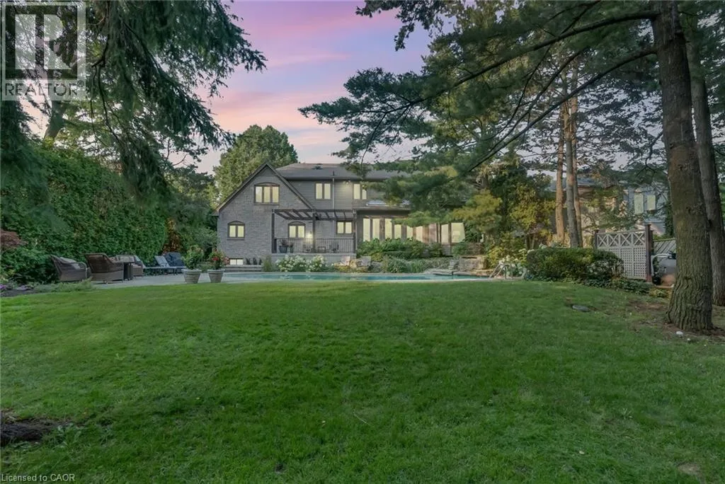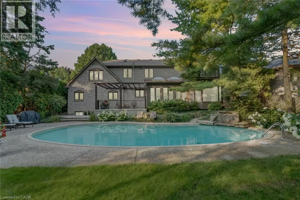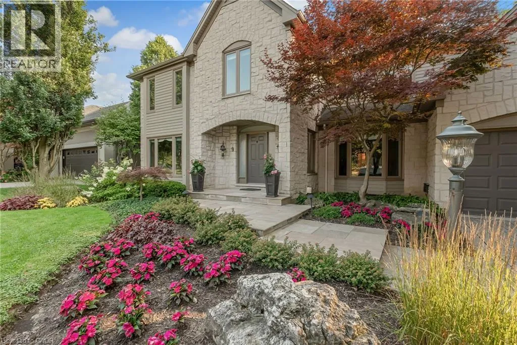 Waterdown Rd to Mountain Brow Rd to Flanders Rd Welcome to 9 Flanders Driveâan exceptional executive residence nestled in one of Waterdownâs most coveted and established neighbourhoods. Offering over 5,200 sq/ft of beautifully finished living space, this stunning home blends timeless elegance with modern comfort, ideal for families seeking both luxury and functionality. Boasting 4+1 spacious bedrooms and 4.5 bathrooms, this home is thoughtfully designed with generous principal rooms, refined finishes, and a layout that effortlessly accommodates both everyday living and entertaining. The heart of the home features an inviting kitchen and living space, complemented by elegant formal areas and abundant natural light throughout. Step outside to your own private backyard retreatâprofessionally landscaped and designed for enjoyment. The show-stopping concrete pool is surrounded by lush greenery and ample space for lounging, creating the perfect setting for summer entertaining or quiet relaxation. Located in a prestigious Waterdown pocket known for its executive homes, top-rated schools, parks, and community feel, this is a rare opportunity to own a truly remarkable property in a prime location. (id:27476)