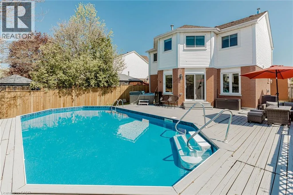 DUNDAS ST E - RILEY ST - MEAGHAN ST Welcome to this beautifully maintained 4-bedroom, 3-bath brick home in highly desirable Waterdown West! Located on a quiet, family-friendly street, this spacious home features formal living/dining rooms, a bright kitchen with stainless steel appliances and eat-in area, and a cozy family room with a gas fireplace. Large windows overlook the private backyard with an in-ground pool and hot tub perfect for summer entertaining! Upstairs you'll find four generous bedrooms, including a primary suite with space for a sitting area or home office. Additional features include a double garage with inside access, a combined laundry/mudroom with side entrance, and plenty of natural light throughout. A fantastic opportunity in a great neighbourhood! (id:27476)
