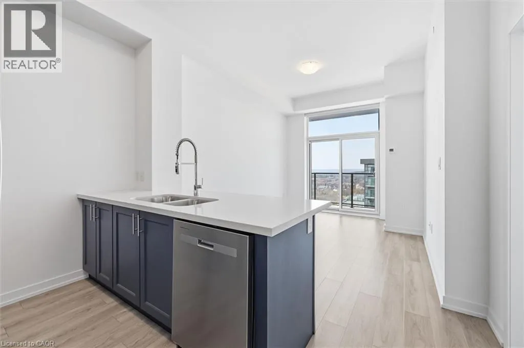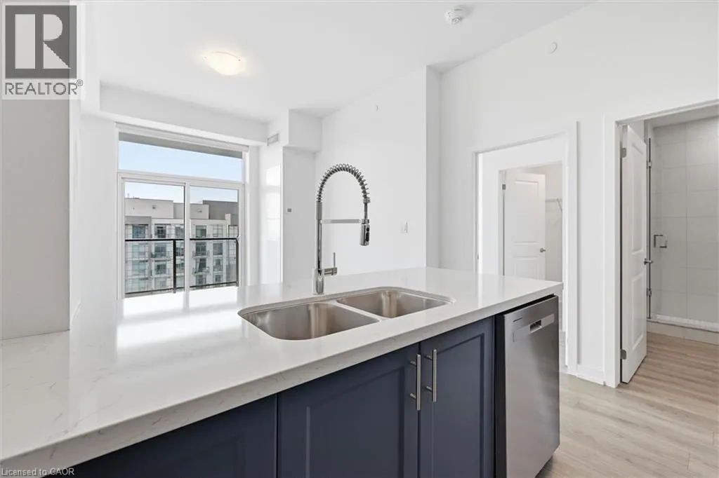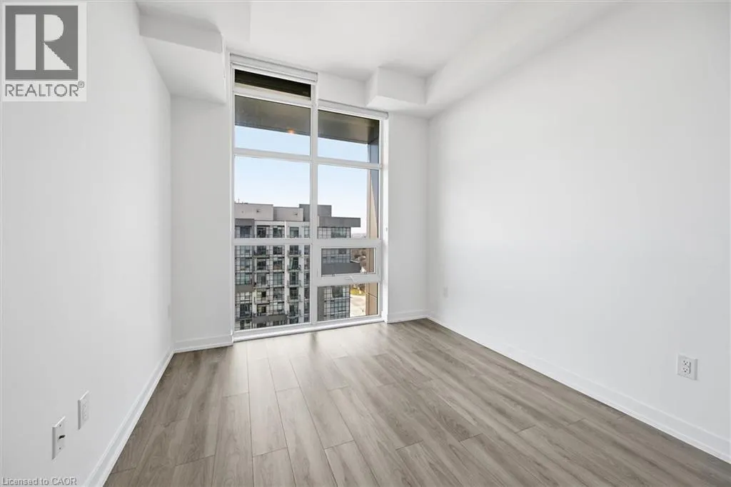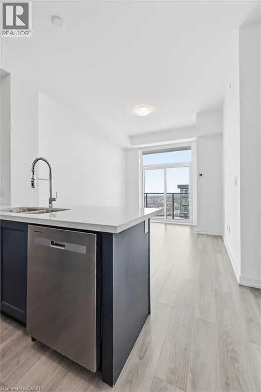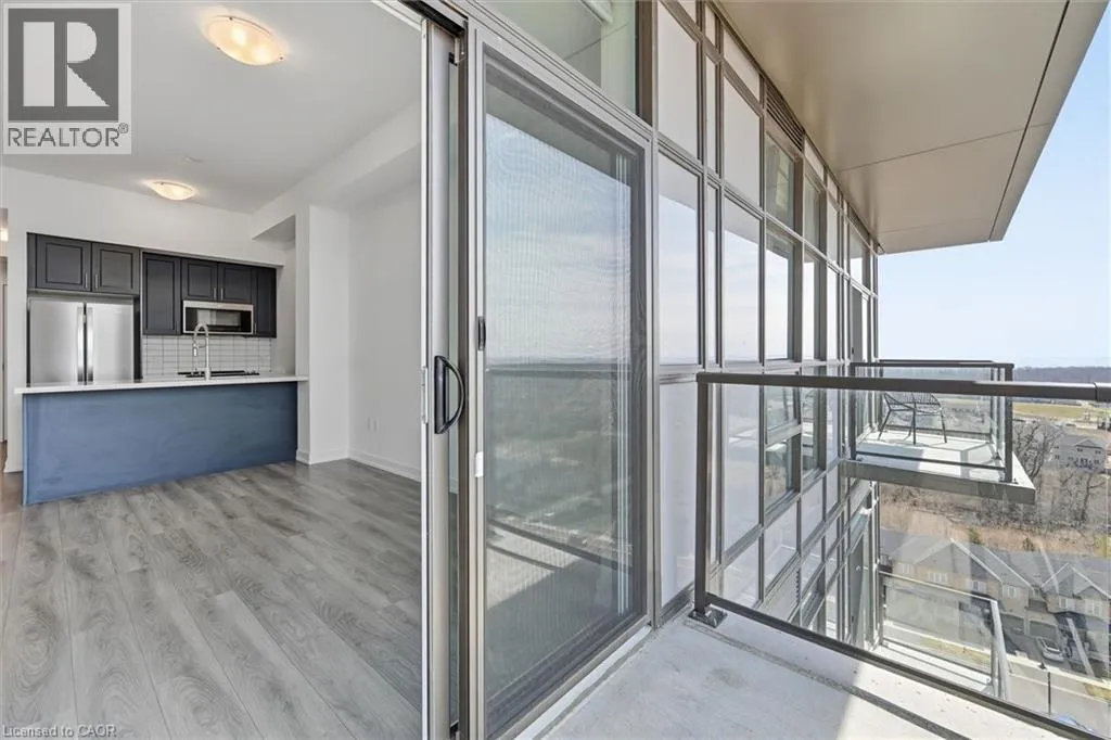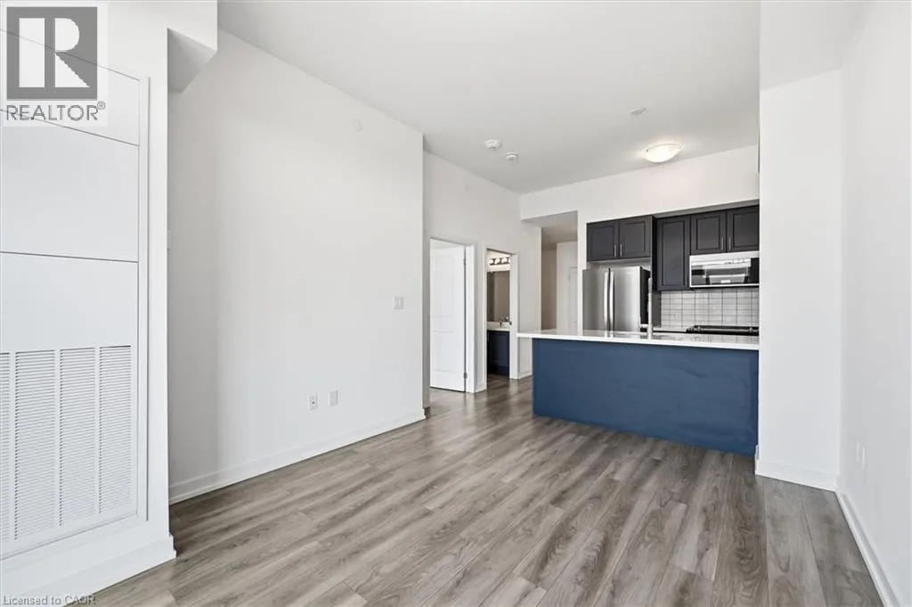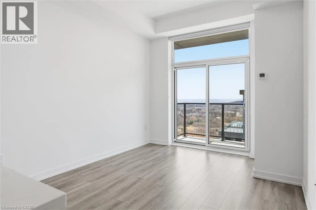 DUNDAS ST/MALLARD TR Experience elevated living in this stunning penthouse retreat perched on the top floor, offering 638 square feet of thoughtfully designed space. This 1 bedroom plus den residence impresses with soaring 10-ft ceilings and an abundance of natural light streaming through floor-to-ceiling windows. Step out to your private balcony and take in sweeping southwest panoramic views over the east end of Waterdown-the perfect backdrop for morning coffee or evening sunsets. The suite is loaded with quality upgrades, including custom navy cabinetry, gleaming white quartz countertops with an extended breakfast bar, upscale stainless steel appliances, a timeless subway tile backsplash, and top-of-the-line vinyl flooring that blends durability with contemporary style. Residents enjoy exceptional building amenities, including a rooftop terrace with BBQ, stylish party room, fully equipped gym, and convenient bicycle storage locker. Geothermal heating/cooling ensures energy efficiency and low utility costs year-round. Complete with 1 underground parking space and 1 storage locker, this residence offers comfort, convenience, and sophistication. This is more than a home-it's a lifestyle at the top, where modern design, smart efficiency, and breathtaking views come together seamlessly. (id:27476)