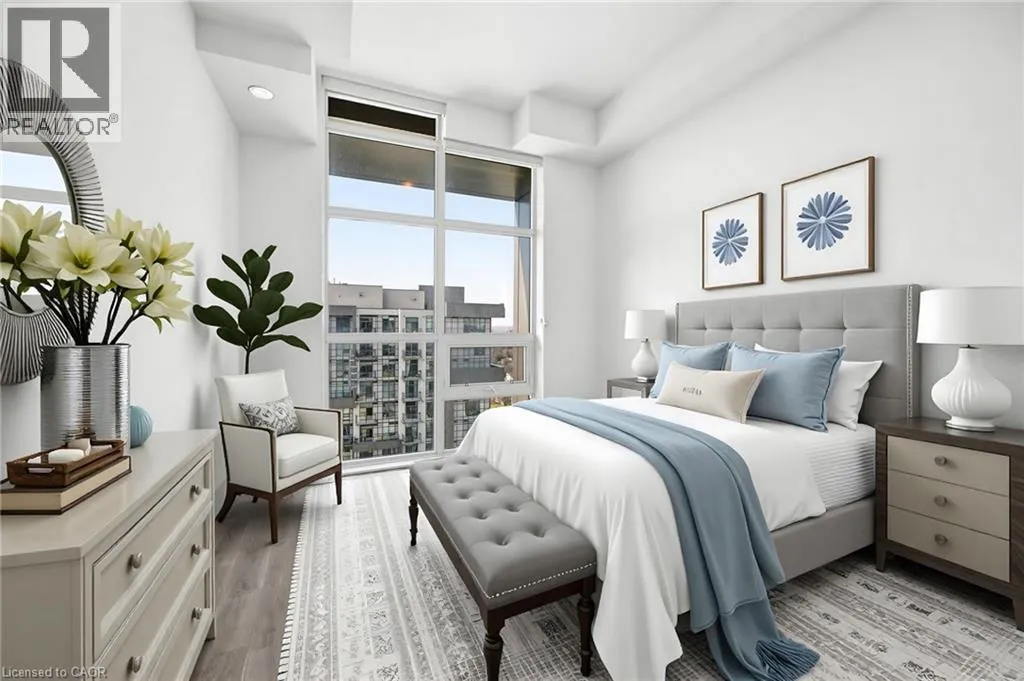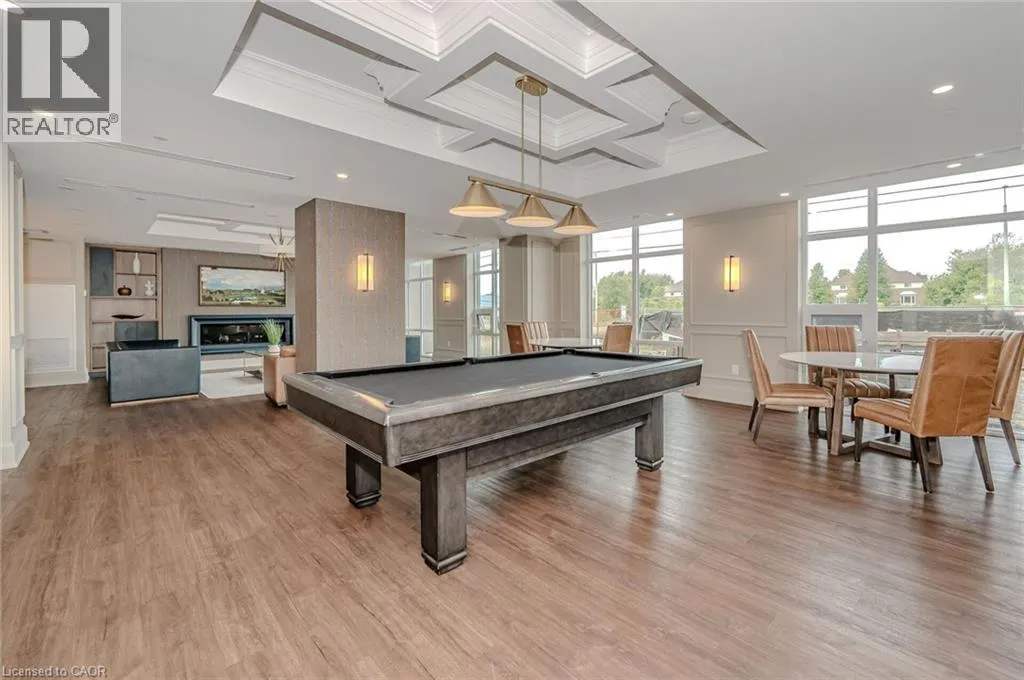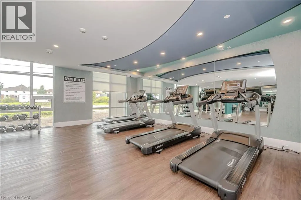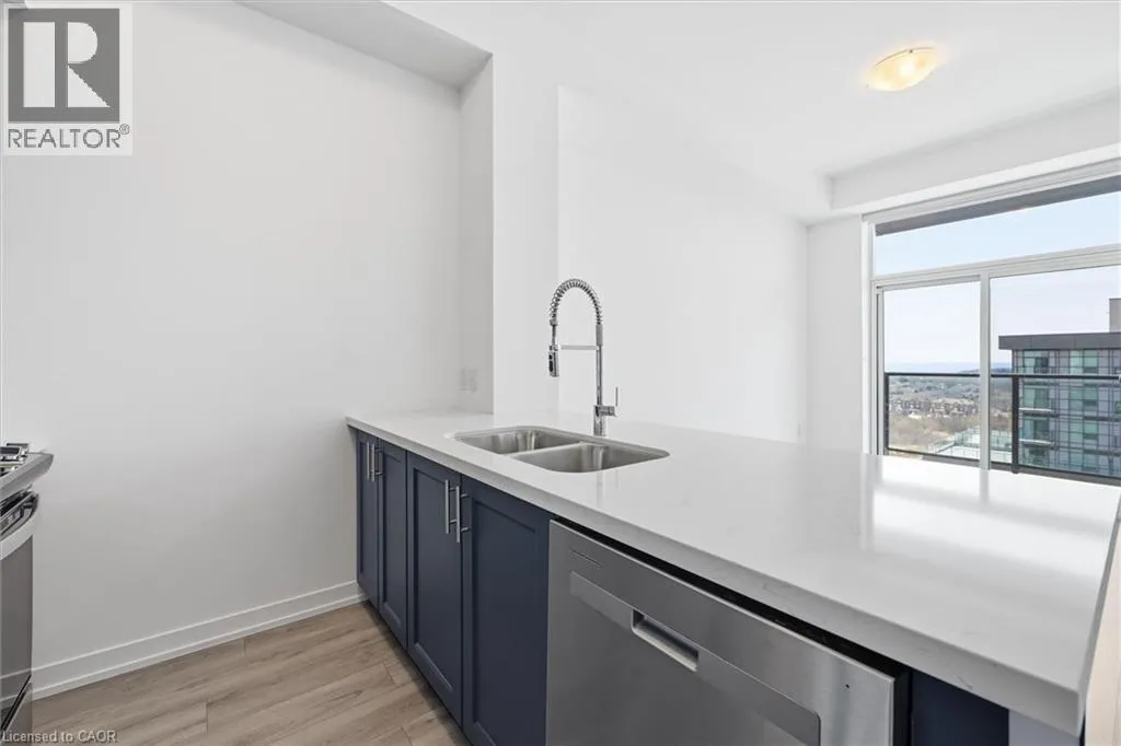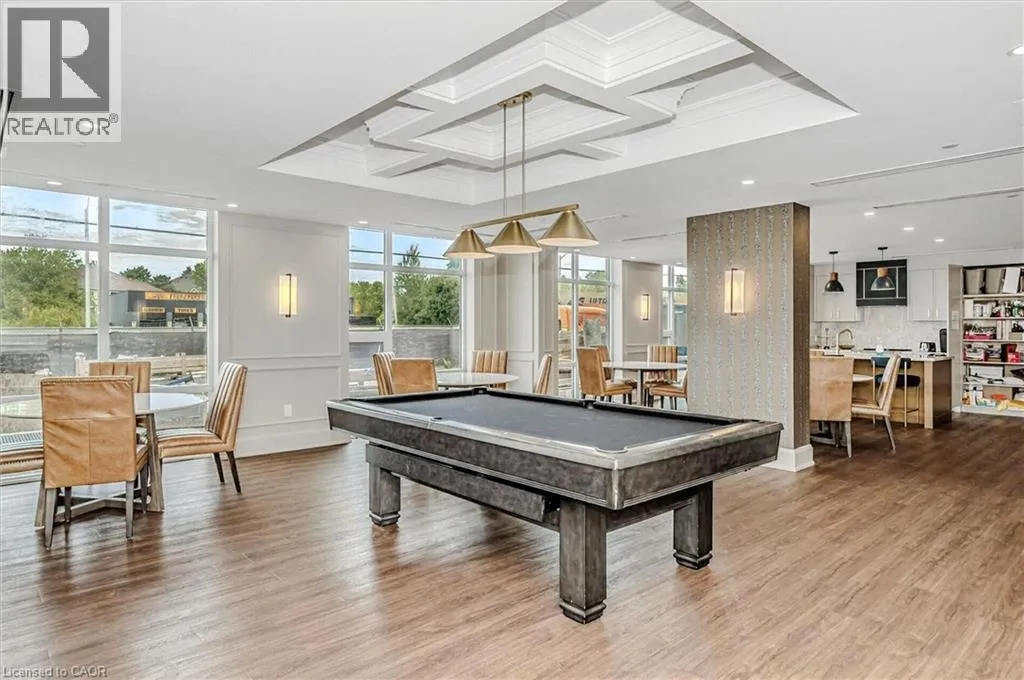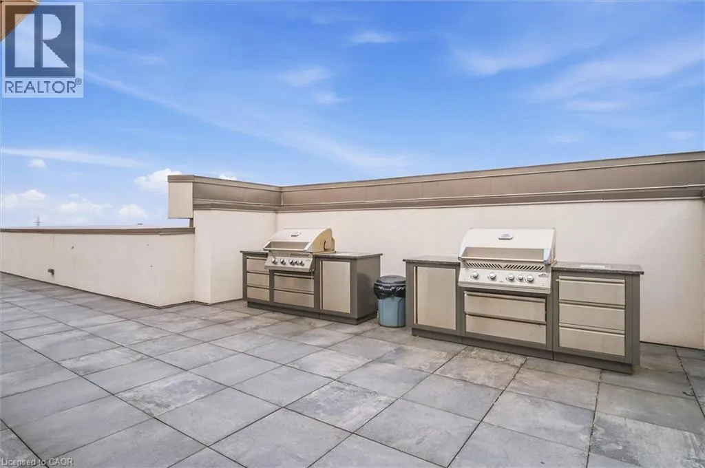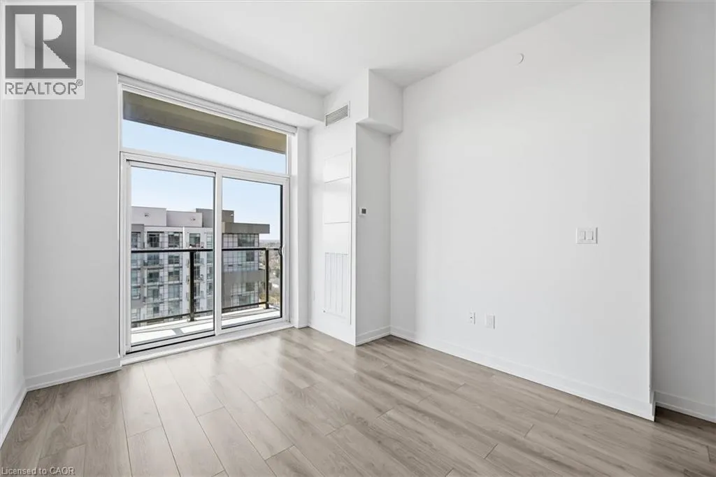 DUNDAS ST/MALLARD TR Experience elevated living in this stunning penthouse retreat perched on the top floor, offering 638 square feet of thoughtfully designed space. This 1 bedroom plus den residence impresses with soaring 10-ft ceilings and an abundance of natural light streaming through floor-to-ceiling windows. Step out to your private balcony and take in sweeping southwest panoramic views over the east end of Waterdown-the perfect backdrop for morning coffee or evening sunsets. The suite is loaded with quality upgrades, including custom navy cabinetry, gleaming white quartz countertops with an extended breakfast bar, upscale stainless steel appliances, a timeless subway tile backsplash, and top-of-the-line vinyl flooring that blends durability with contemporary style. Residents enjoy exceptional building amenities, including a rooftop terrace with BBQ, stylish party room, fully equipped gym, and convenient bicycle storage locker. Geothermal heating/cooling ensures energy efficiency and low utility costs year-round. Complete with 1 underground parking space and 1 storage locker, this residence offers comfort, convenience, and sophistication. This is more than a home-it's a lifestyle at the top, where modern design, smart efficiency, and breathtaking views come together seamlessly. (id:27476)