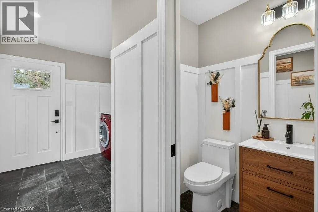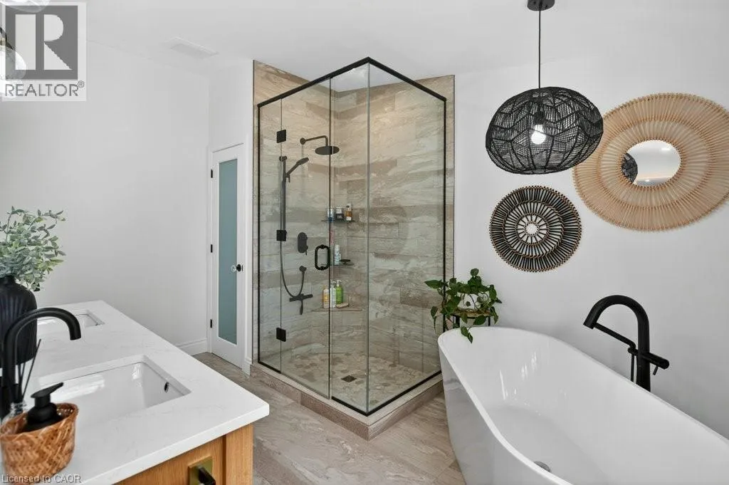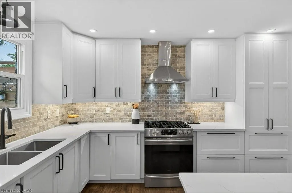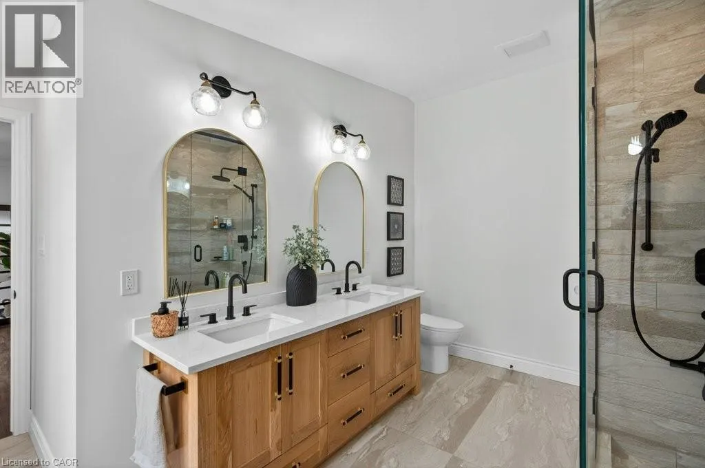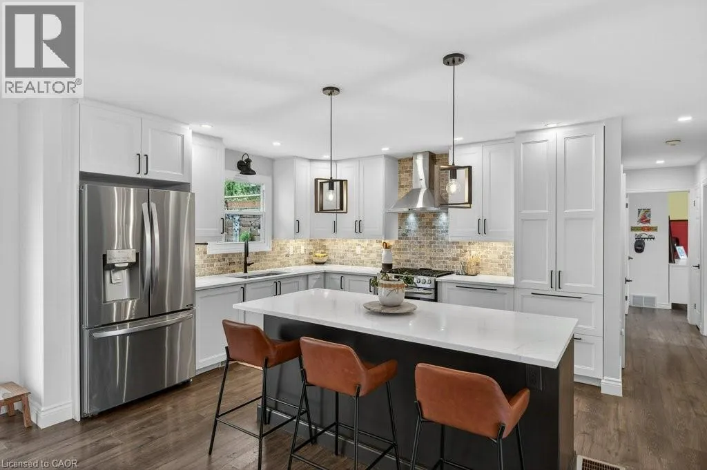 Dundas St. E. to Mill St. N. to Albert St. to north on Victoria St. to Nelson Absolutely stunning 4 bedroom plus den, 3.5 bathroom renovated home on a quiet dead end street in Waterdown's beautiful core! This is the home you have dreamed of! The gorgeous exterior finishes makes this home an absolute stand out! A large addition was completed in 2023 almost doubling the square footage of this home. The family and entertaining friendly open layout on the main floor features a beautiful kitchen with large island, quartz counters and stainless appliances. A large dining area with sliders to the rear yard and great room with gorgeous gas fireplace flanked by built-ins provide seamless flow for keeping an eye on the kids or staying engaged with guests while preparing a meal. A built-in coffee servery is another part of the incredible detail and thought put into this home! A main floor laundry and powder room area provides access to the rear yard. In the other end of the main floor you will find 3 bedrooms and a 4 piece bathroom. A hardwood staircase takes you to the absolutely incredible primary retreat! This one will take your breath away featuring vaulted and timber beam ceiling, french doors to a juliette balcony, an expansive walk-in closet with built-ins and a gorgeous ensuite with stand alone soaker tub, glass enclosed shower and a double custom vanity! The lower level is completely finished with a large family room, play area, workout space, large storage area, den and mudroom with built-ins with access to the attached garage. The spacious backyard has a large upper deck and a gorgeous stone patio with firepit. BONUS is a custom 10 x 12 outbuilding matching the home in finishes. It is insulated and has heating and cooling - ideal for a home office, he/she shed or workshop! This location can't be beat for those looking for a quiet spot to call home, yet conveniently located in the hub of it all, walking distance to schools, shops, restaurants, trails and Memorial Park. Homes like this rarely come along! (id:27476)