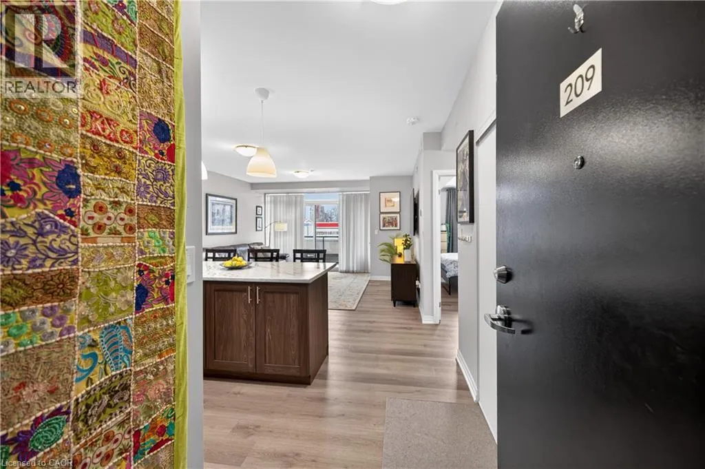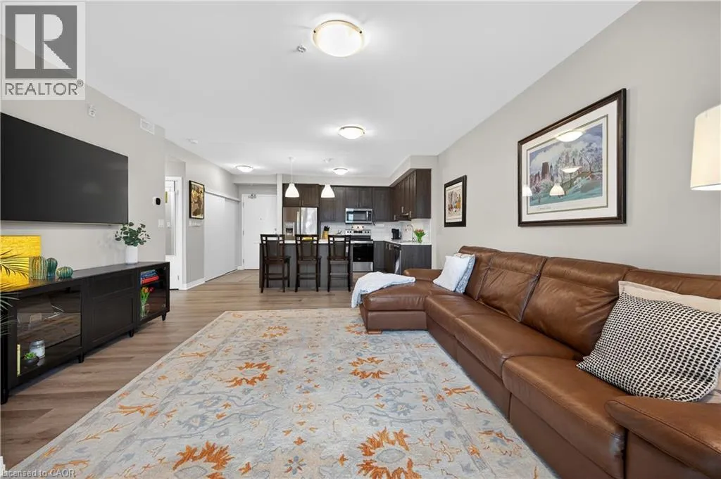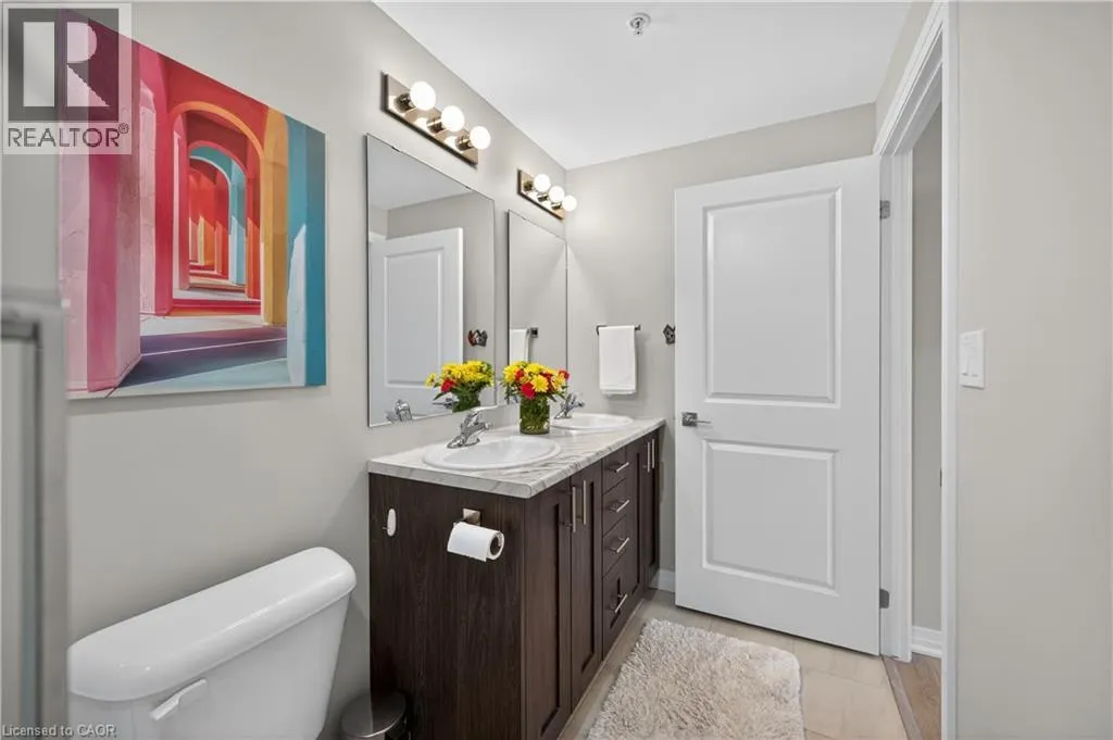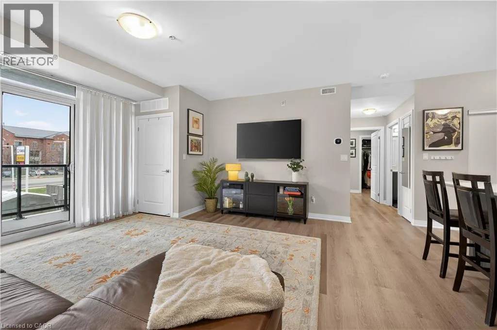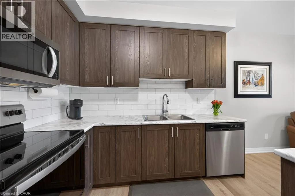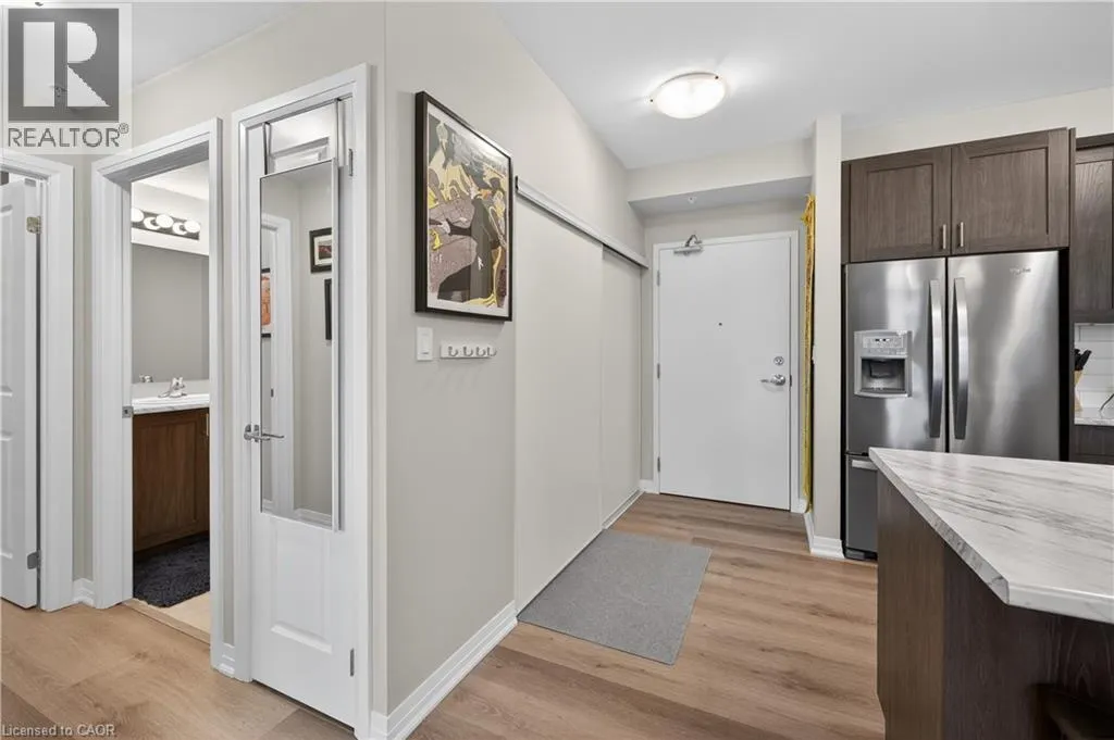 This residence offers an open-concept floorplan, providing a modern and seamless flow throughout the living space. With a total area of 1025 square feet, this space is designed for comfortable living and entertaining. The kitchen is equipped with stainless steel appliances, including a refrigerator, stove, and dishwasher. There is ample cabinetry for storage, while the kitchen island with breakfast bar adds both functionality and style. Under-cabinet lighting further enhances the workspace, making meal preparation convenient and enjoyable. Enjoy abundant natural light thanks to the floor-to-ceiling, wall-to-wall windows. A patio door leads directly to a private balcony, perfect for relaxing outdoors. Upgraded vinyl flooring is installed throughout the home, offering durability and ease of maintenance. There is no carpet, making cleaning straightforward. The primary bedroom includes a walk-in closet and a private ensuite. The ensuite is equipped with an oversized glass shower and a vanity with two sinks, combining luxury with practicality. This property is ideally situated close to shopping, restaurants, and all local amenities. Public transit is also easily accessible, making commuting simple and convenient. Underground parking and a storage locker, providing secure and accessible options for your vehicle and belongings. (id:27476)