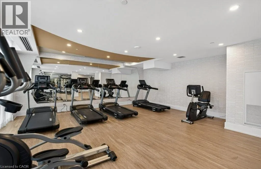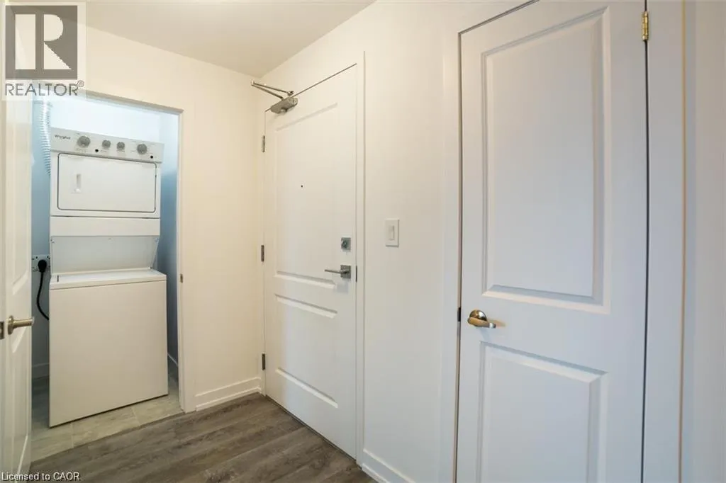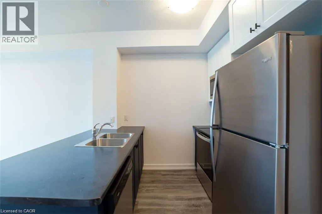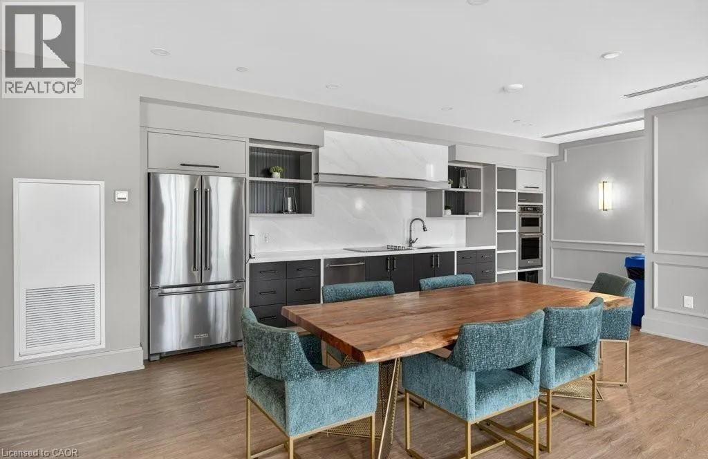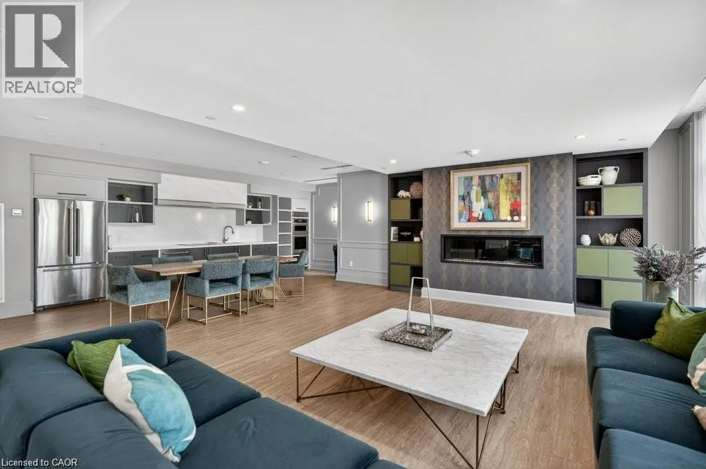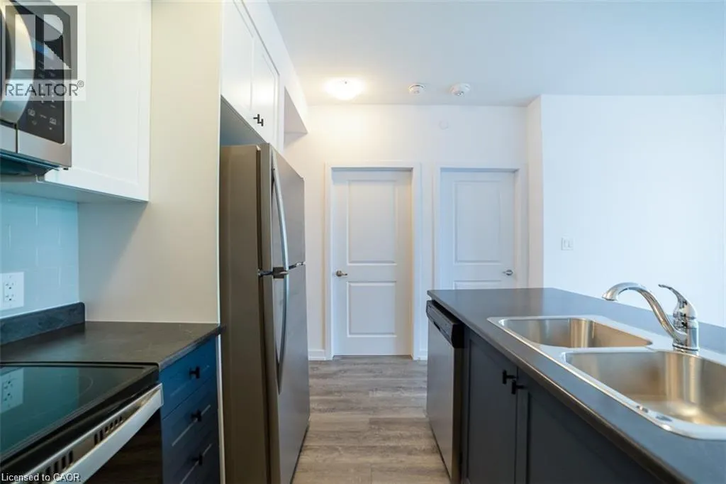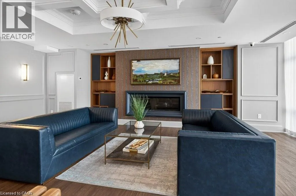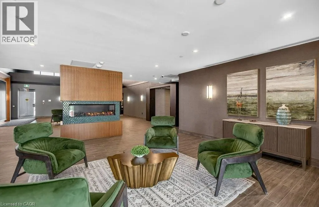 Dundas Street E to Mallard and Riverwalk Welcome to Waterdown! This beautifully designed 1+1 bedroom, 1 bathroom condo is available for rent in a newly built building by award-winning developer New Horizon, featuring energy-efficient geothermal heating and cooling. The modern kitchen showcases stylish white and blue cabinetry, stainless steel appliances, subway tile backsplash, and a convenient breakfast bar. The spacious den offers incredible flexibility, perfect as a home office, dining area, or cozy lounge space. Enjoy a bright, sun-filled living area with floor-to-ceiling windows and walkout access to a private balcony. Ideally located with easy access to the QEW and 407, and just minutes from grocery stores, banks, restaurants, shops, scenic trails, and Aldershot GO Station. This unit includes 1 parking space and a locker, along with access to premium building amenities such as a fitness room, party room, bike storage, and a rooftop terrace with BBQ area. Available for June 5th possession, with a preference for a 1+ year lease term. Tenant is responsible for hydro, water, and internet. No smoking. Small pets are welcome. Seeking AAA+ tenants. (id:27476)