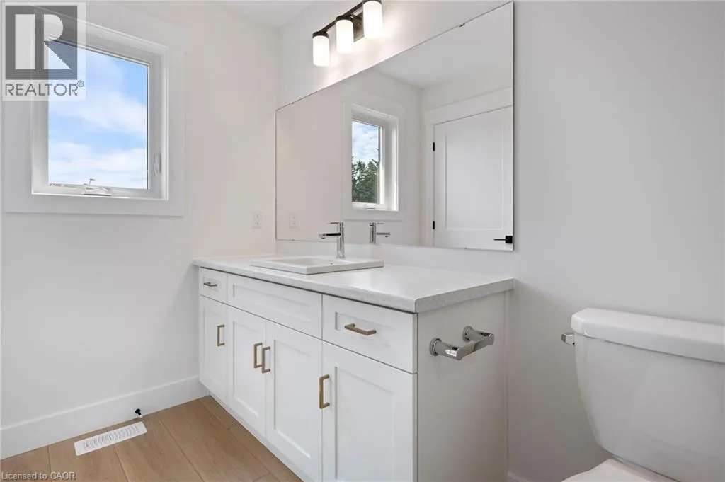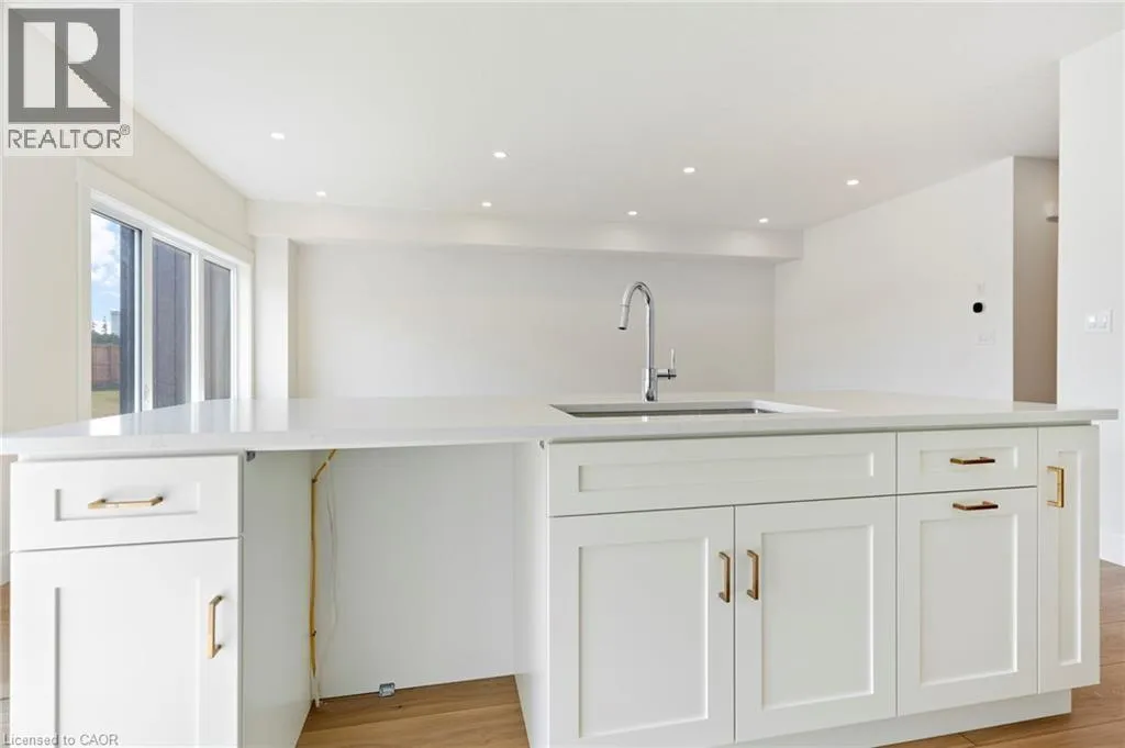 Old Highway 24 to Gibbons, Left on Amber to 127 Get ready to fall in love with The AMBROSE-LEFT, a stunning new semi-detached 2-storey home with an attached double-car garage in the beautiful Villages of Waterford! Offering 1799 sqft of modern living space, this home is perfect for families seeking comfort & style. The home welcomes you with a covered front porch leading to a spacious foyer that opens to an open concept kitchen, dining nook & great room. The kitchen features custom cabinetry with pot & pan drawers, pull-out garbage & recycle bins, soft-close drawers & doors, quartz countertops, a breakfast bar island & a pantry. Luxury vinyl plank flooring is featured throughout the main floor, upper-level bathrooms & the upstairs laundry room, which comes complete with a sink. The second floor features 3 spacious bedrooms, including the large primary bedroom with a 4-piece ensuite (tub/shower combo) & a walk-in closet. With 9 ft ceilings on the main floor & 8 ft ceilings in the basement, the home is airy & open, providing plenty of space for your family to enjoy. The attached double-car garage comes with an 8 ft high door, & thereâs room for 2 more cars on the driveway. The undeveloped basement features large windows, a bathroom rough-in, & offers plenty of potential for customization. The home includes front & rear landscaping, central air conditioning tankless hot water, & rough-ins for central vacuum. Thoughtful details such as contemporary lighting, pot lights, & a brick, stone, & vinyl exterior add to the home's charm & durability. Enjoy the peace of mind that comes with new construction & the New Home Warranty. Additional perks include fibre optic internet, a programmable thermostat, & no rental equipment. The home is conveniently located near schools, the library, shopping, & grocery stores, making it ideal for families and investors. Licensed Salesperson in the Province of Ontario has an interest in Vendor Corp. (id:27476)