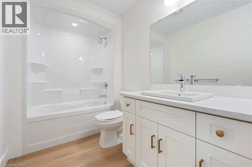 Old Highway 24 to Gibbons, Left on Amber to 123 Get ready to fall in love with The AMBROSE-RIGHT, a stunning new semi-detached 2-storey home with an attached double-car garage & potential for a 1-bdrm legal suite in the basement. Located in the sought-after Villages of Waterford, this home offers 1,775 sqft of beautifully designed living space. Step inside from the covered front porch into a spacious foyer that leads to an open concept kitchen, dining nook & great room. The kitchen features custom cabinetry with pot/pan drawers, pull-out garbage & recycle bins, soft-close drawers/doors, quartz countertops, island with breakfast bar & pantry. The entire main floor, along with the upstairs bathrooms & laundry room, is finished with durable & stylish luxury vinyl plank flooring. This home boasts 3 bdrms, 2.5 baths & an upstairs laundry room complete with a sink for added convenience. The primary bedroom includes a 4-piece ensuite with a tub/shower combo & a walk-in closet. With 9 ft ceilings on the main floor & 8 ft ceilings in the basement, the home feels open & airy. The attached double-car garage offers an 8 ft high door & space for two additional cars in the driveway, providing ample parking. The undeveloped basement has in-floor heating and is ready for customization, with potential to create a 1-bdrm legal suite for rental income or multi-generational living. Enjoy the peace of mind that comes with new construction: landscaped front & rear yards, tankless hot water, forced air furnace & central air conditioning for the main & upper levels. The home also includes rough-ins for central vacuum, contemporary lighting & pot lights & durable brick, stone & vinyl exterior. Additional features include fibre optic internet, a programmable thermostat & NO rental equipment. Located close to elementary & high schools, shopping & grocery stores, perfect for families or investors. Licensed Salesperson in the Prov of Ont has interest in Vendor Corp. (id:27476)