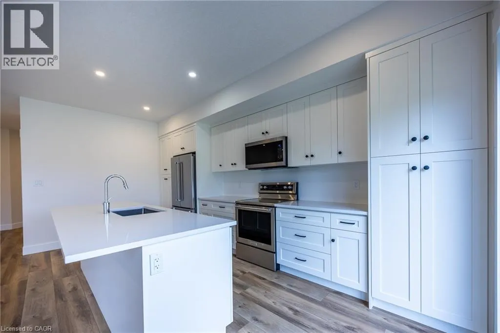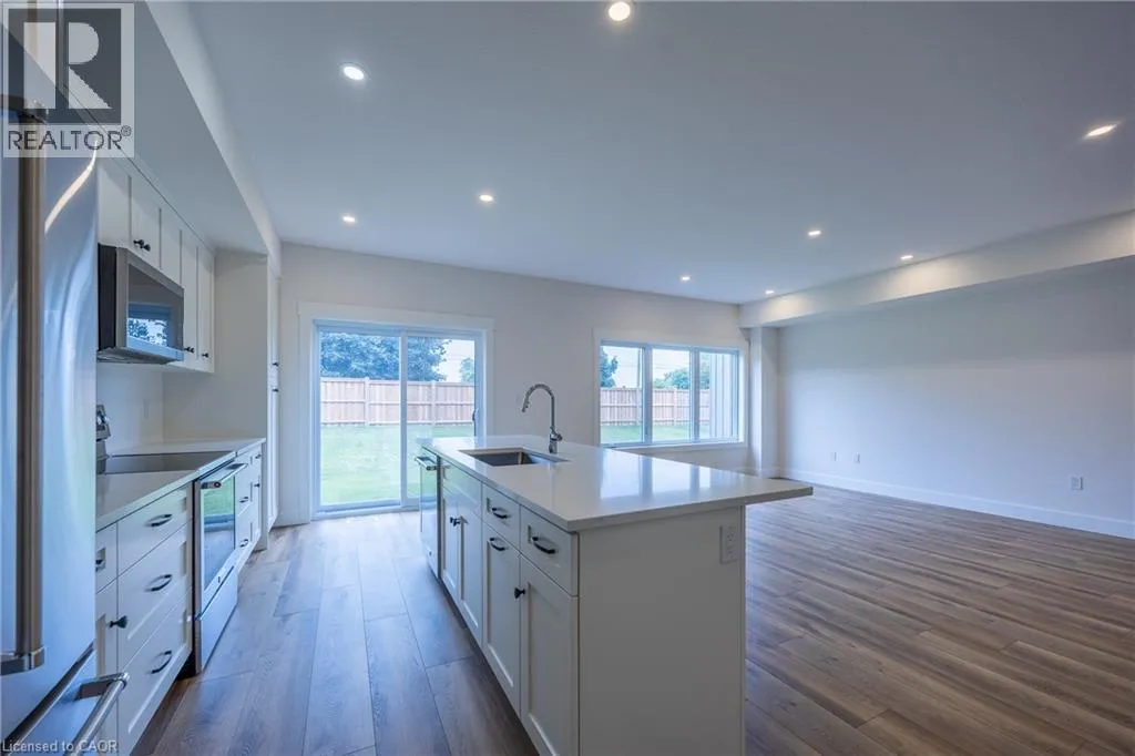 Take Old Highway 24 and turn onto Amber Street. Continue until reaching property number 103. Welcome to 103 Amber Street, Waterford â a newly built semi-detached home that blends modern design with small-town charm. With1787 sq. ft. of thoughtfully designed living space, this 2-storey semi-detached home offers the perfect balance of comfort, style, and functionality, making it ideal for todayâs growing families. Step inside from the covered front entrance into a spacious foyer that opens into a bright, open-concept main floor. The kitchen is a true showpiece, featuring custom cabinetry, quartz countertops and a breakfast island, all designed with modern convenience in mind. The dining area and great room flow seamlessly together, creating an inviting space for gatherings and everyday living. Luxury vinyl plank flooring throughout the main level ensures both durability and style. Upstairs, youâll find three generously sized bedrooms, including a primary suite complete with a 4-piece ensuite and walk-in closet. Practical details such as an upper-level laundry room with sink, 9-ft main floor ceilings, and an attached double-car garage with 8-ft door add everyday convenience. The unfinished basement with large windows and a rough-in bath is ready for your personal touch. Beyond the home, Waterford is a community that truly shines. Known for its friendly atmosphere, and welcoming downtown, local stores and restaurants, and Waterford North Conservation Area with three ponds and trails, it offers the best of small-town living while keeping you close to everything you need. Larger centres like Simcoe, Brantford, and Hamilton are just a short drive away, giving you easy access to shopping, healthcare, and major highways while letting you come home to peace and charm. With modern finishes, energy-efficient systems, and fibre-optic internet already in place, 103 Amber Street offers more than just a houseâit offers a lifestyle. (id:27476)