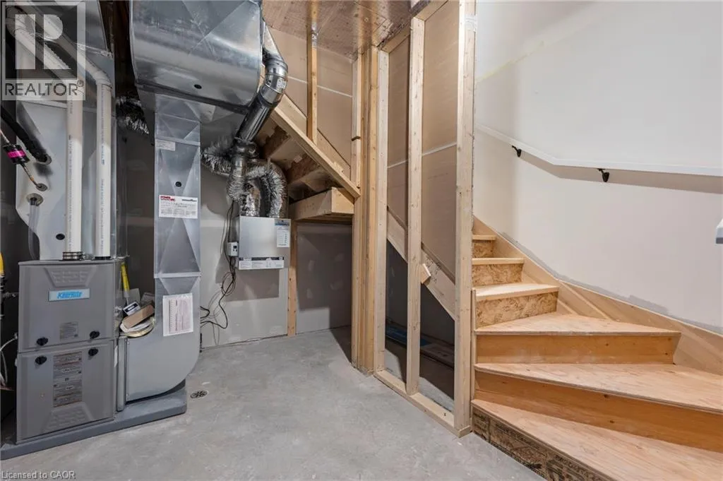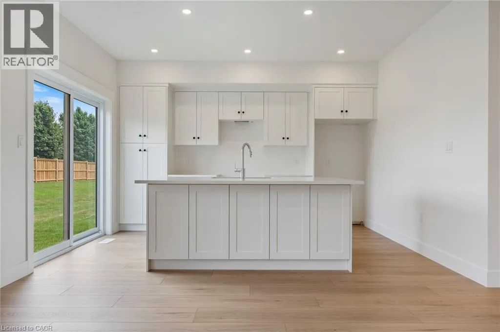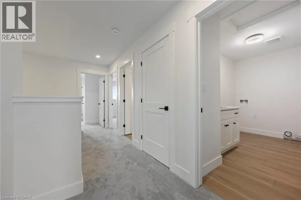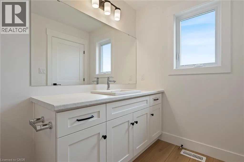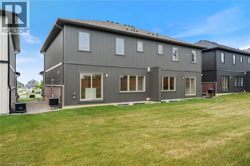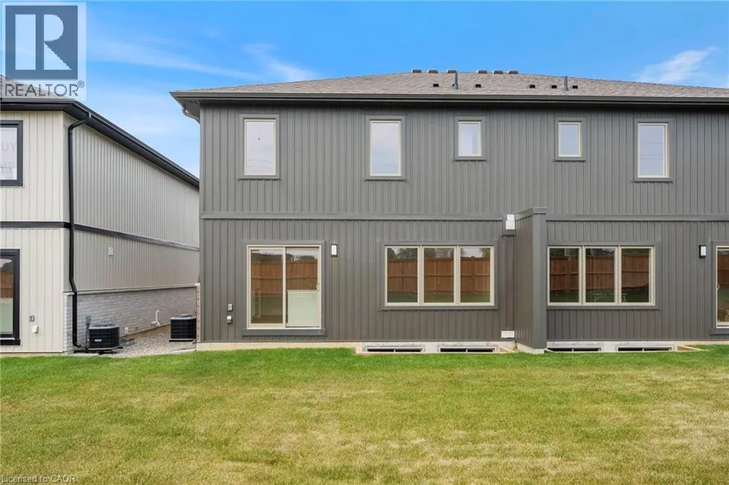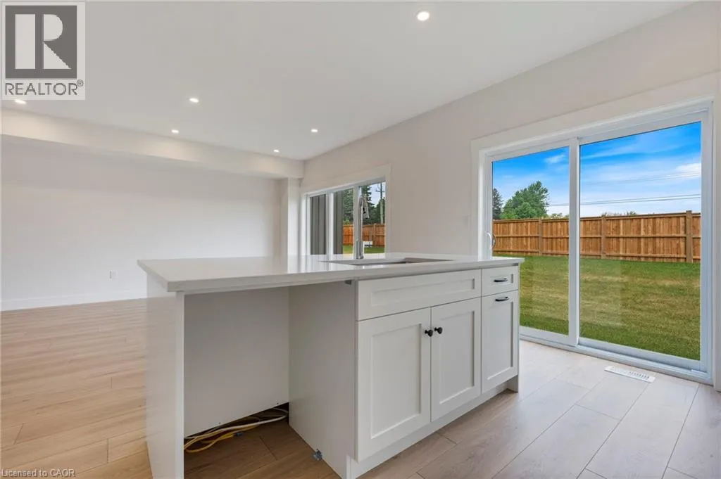 Old Highway 24 to Gibbons, Left on Amber to 115 Potential Legal Suite with Framed Basement â Fall in love with this stunning semi-detached 2-storey home located in the Villages of Waterford subdivision in Waterford! Boasting 1,775 sq. ft. of thoughtfully designed living space, this home features a spacious 3-bedroom, 2.5-bath layout with upstairs laundry and an attached double-car garage. Step inside from the covered front porch into a bright foyer leading to an open-concept kitchen, dining nook, and great room. The kitchen is a chefâs dream, complete with custom cabinetry, quartz countertops, island with breakfast bar, pantry, pot/pan drawers, pull-out garbage/recycle bins, and soft-close doors/drawers. Durable luxury vinyl plank flooring runs throughout the main floor, upstairs bathrooms, and laundry room. The primary suite includes a 4-piece ensuite with tub/shower combo and a walk-in closet, while 9 ft ceilings on the main floor and 8 ft ceilings in the basement create an open, airy feel throughout. The basement is undeveloped, featuring in-floor heating and the potential for a 1-bedroom legal suite, ideal for rental income or multi-generational living. The home also offers modern comforts such as central air, tankless hot water, programmable thermostat, fibre optic internet, and rough-ins for central vacuum and contemporary lighting. Outside, enjoy landscaped front and rear yards, durable brick, stone, and vinyl exterior, and ample parking with an 8 ft garage door plus driveway space for 2 additional cars. Conveniently located near schools, shopping, and grocery stores, this home is perfect for families or investors alike. Down has been framed for a future 1 bedroom and one bath suite. New construction, modern features, and endless possibilities â welcome home! Licensed Salesperson in the Province of Ontario has interest in Vendor Corp. (id:27476)