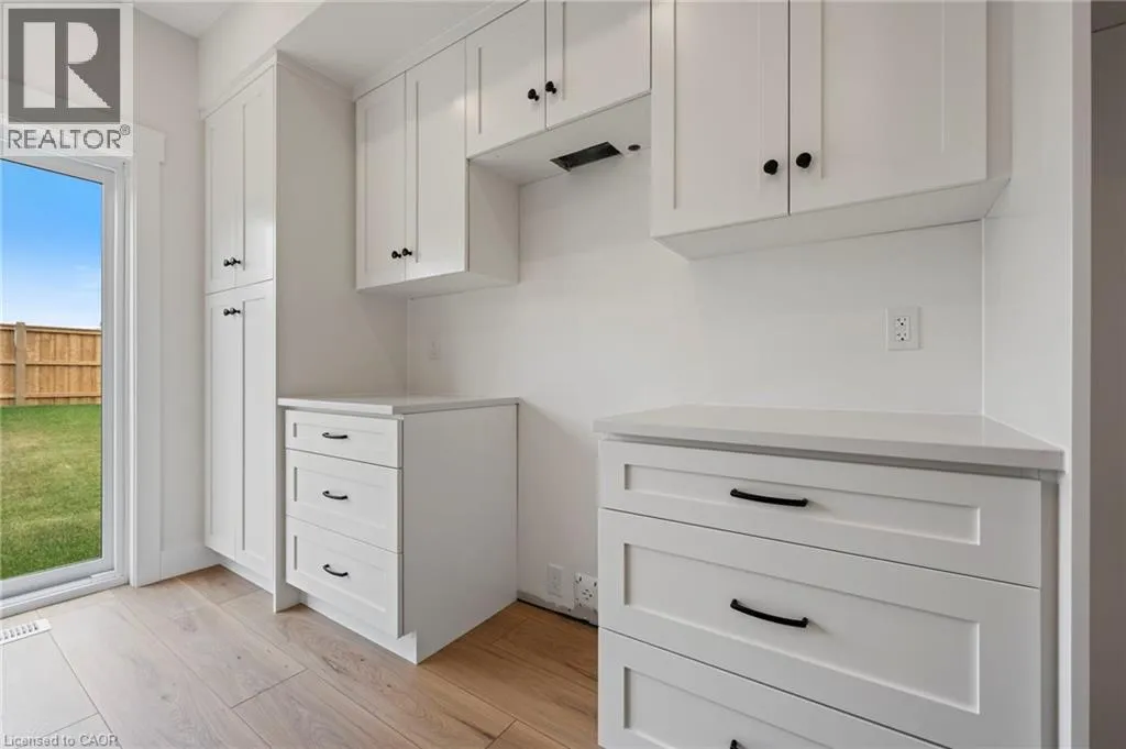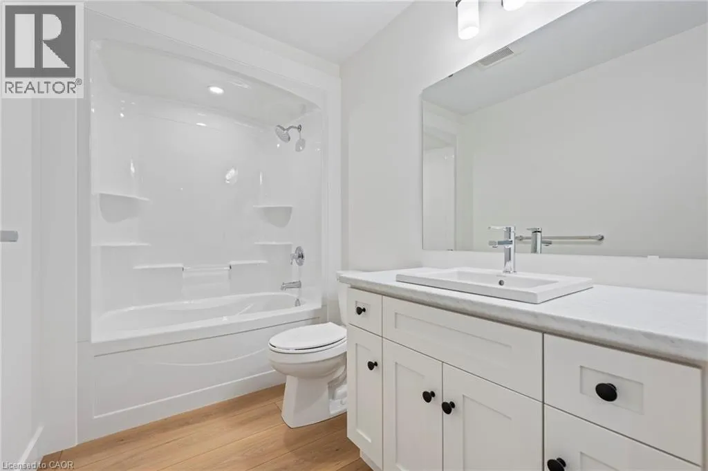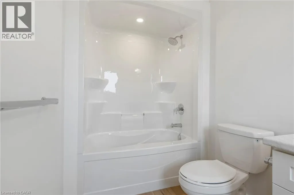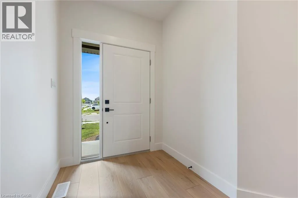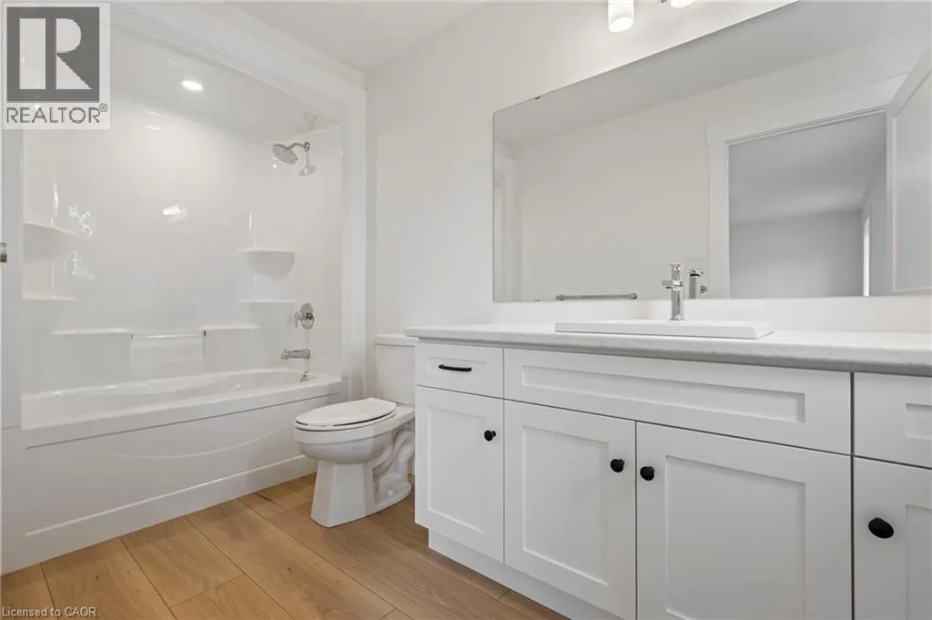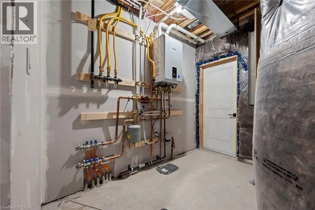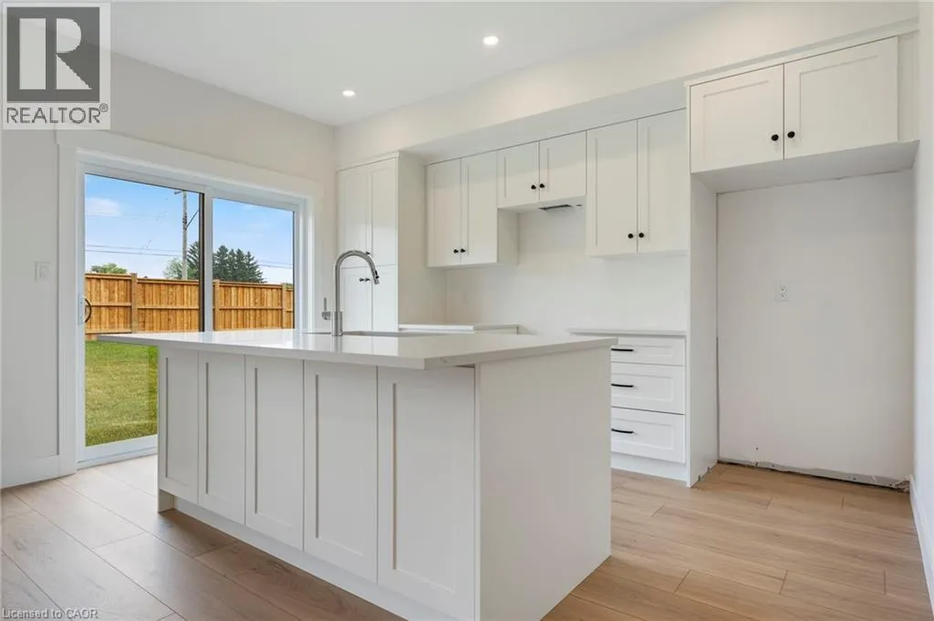 Old Highway 24 to Gibbons, Left on Amber to 115 Potential Legal Suite with Framed Basement â Fall in love with this stunning semi-detached 2-storey home located in the Villages of Waterford subdivision in Waterford! Boasting 1,775 sq. ft. of thoughtfully designed living space, this home features a spacious 3-bedroom, 2.5-bath layout with upstairs laundry and an attached double-car garage. Step inside from the covered front porch into a bright foyer leading to an open-concept kitchen, dining nook, and great room. The kitchen is a chefâs dream, complete with custom cabinetry, quartz countertops, island with breakfast bar, pantry, pot/pan drawers, pull-out garbage/recycle bins, and soft-close doors/drawers. Durable luxury vinyl plank flooring runs throughout the main floor, upstairs bathrooms, and laundry room. The primary suite includes a 4-piece ensuite with tub/shower combo and a walk-in closet, while 9 ft ceilings on the main floor and 8 ft ceilings in the basement create an open, airy feel throughout. The basement is undeveloped, featuring in-floor heating and the potential for a 1-bedroom legal suite, ideal for rental income or multi-generational living. The home also offers modern comforts such as central air, tankless hot water, programmable thermostat, fibre optic internet, and rough-ins for central vacuum and contemporary lighting. Outside, enjoy landscaped front and rear yards, durable brick, stone, and vinyl exterior, and ample parking with an 8 ft garage door plus driveway space for 2 additional cars. Conveniently located near schools, shopping, and grocery stores, this home is perfect for families or investors alike. Down has been framed for a future 1 bedroom and one bath suite. New construction, modern features, and endless possibilities â welcome home! Licensed Salesperson in the Province of Ontario has interest in Vendor Corp. (id:27476)
