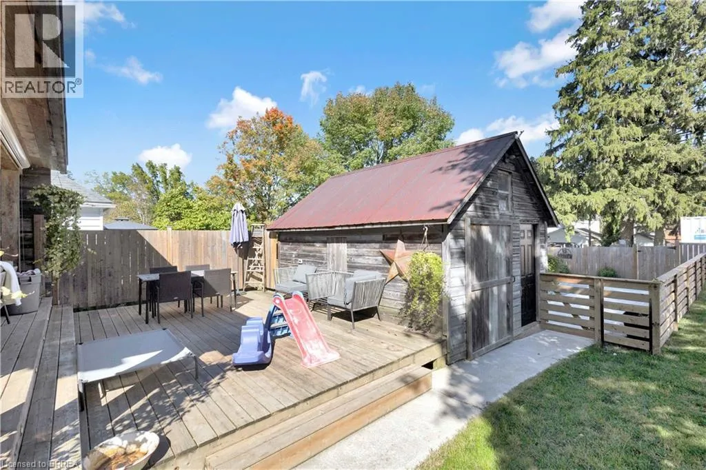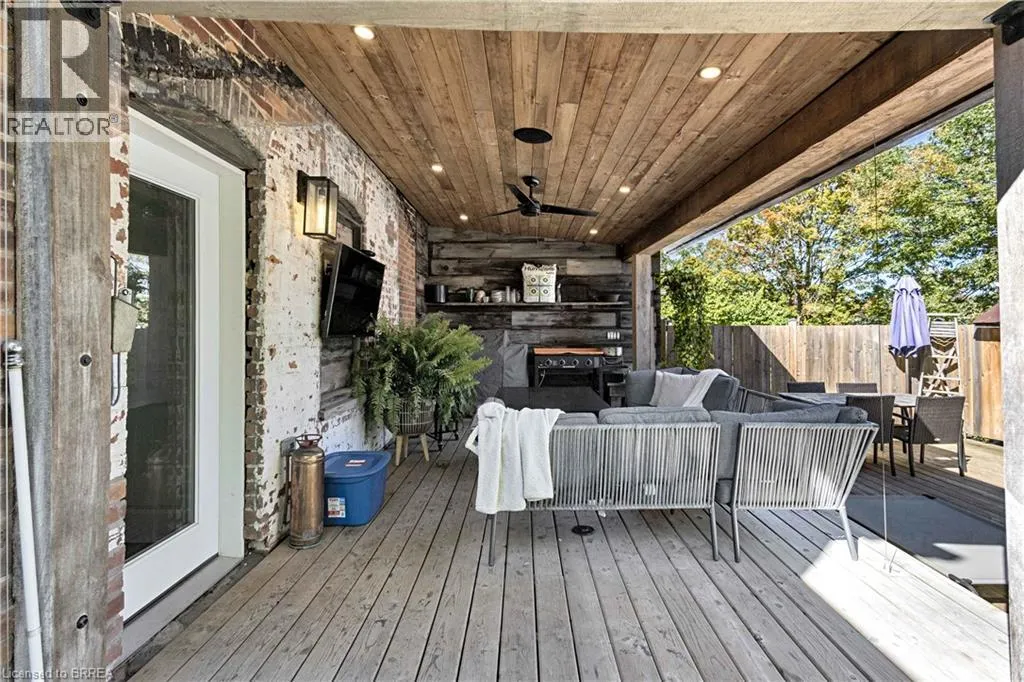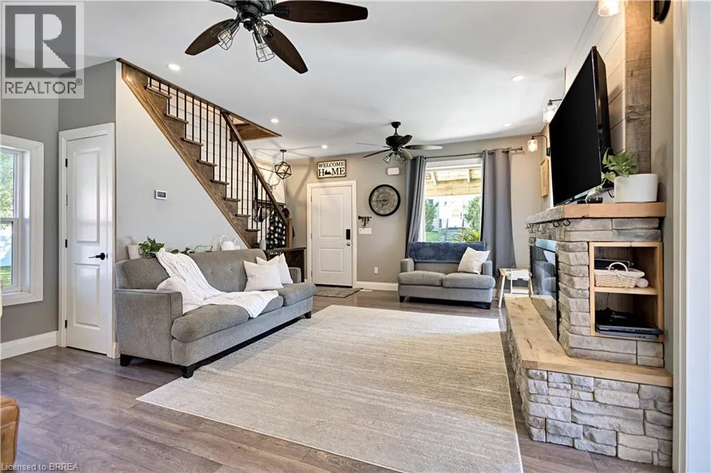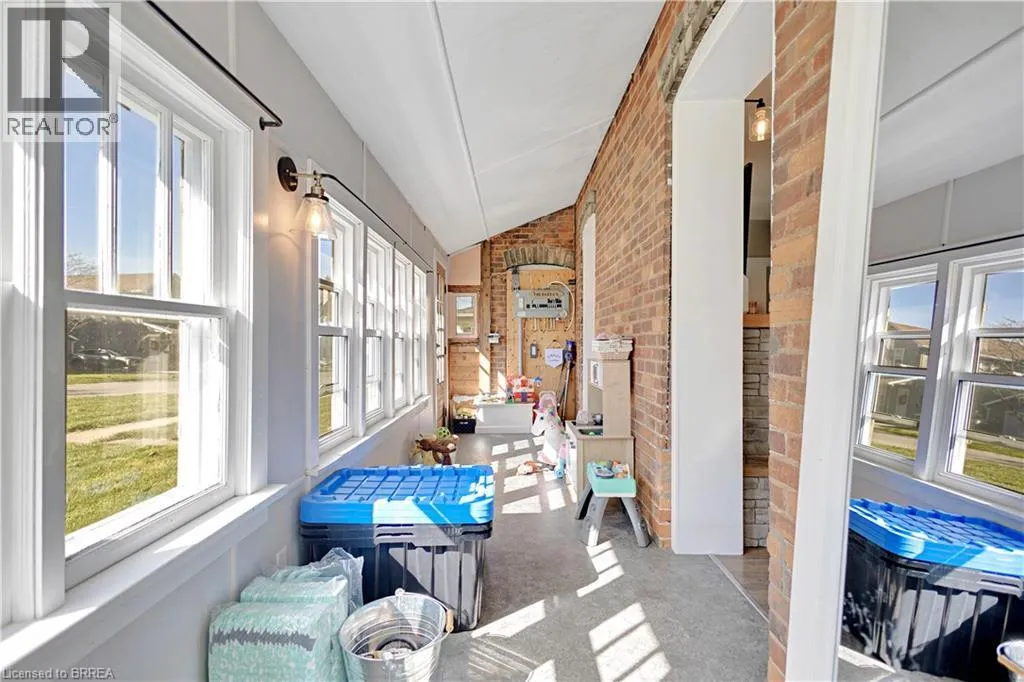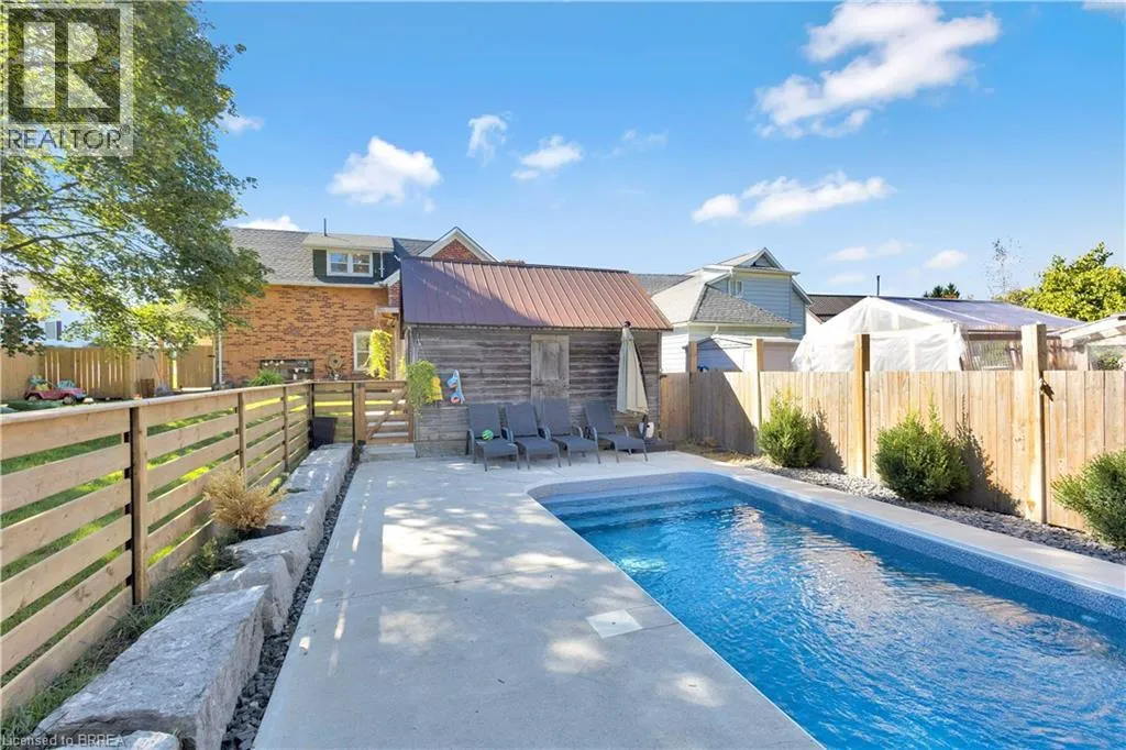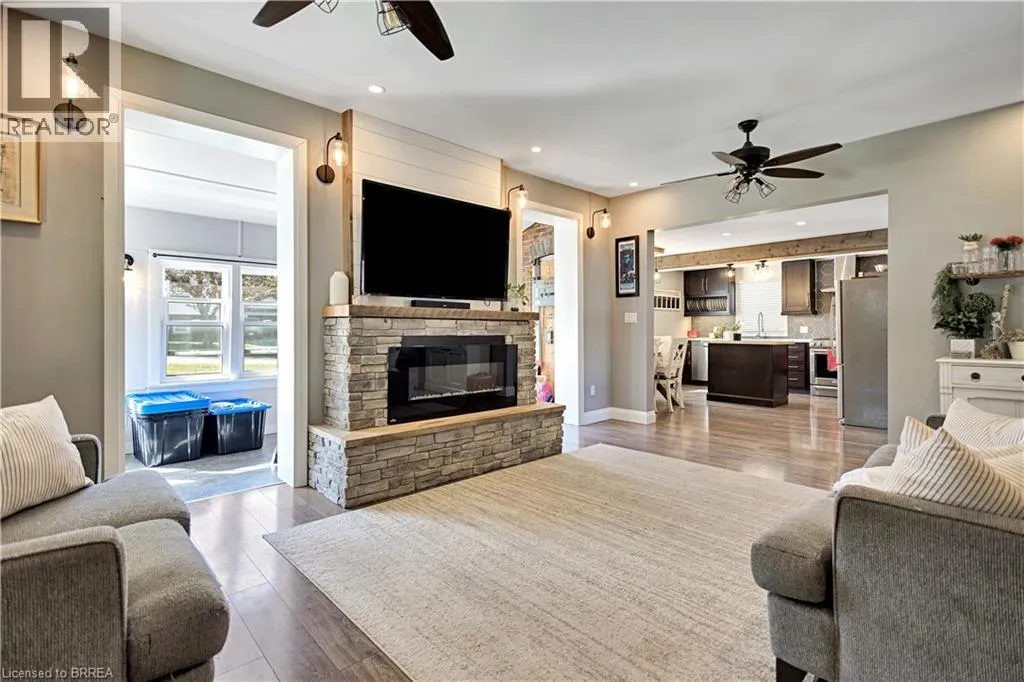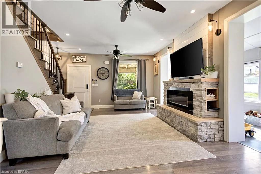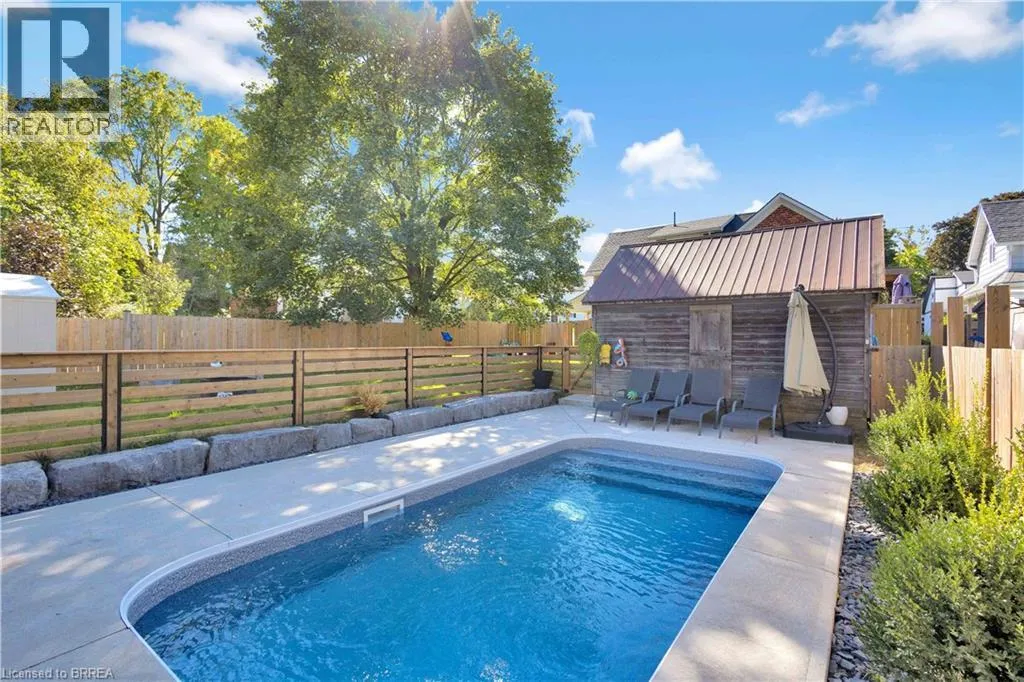 Corner of Washington. & Temperance. Welcome to 79 Washington Street, Waterford. Taken right down to the studs and completely rebuilt in 2018, this stunning home blends modern finishes with timeless character. Featuring 2 spacious bedrooms and 2 full bathrooms, itâs perfect for couples, small families, or anyone seeking turnkey living. The main level offers an inviting open-concept layout highlighted by an exposed wooden beam, a striking electric stone fireplace in the family room, and a charming sunroom with exposed brick. The dream kitchen boasts abundant counter and cabinet space, upgraded stainless steel appliances, and a bright eat-in dining area. A stylish 4-piece bathroom completes the main floor. Upstairs, youâll find two generous bedrooms, including a primary suite with two large closets and a luxurious ensuite featuring a tiled walk-in shower and double vanity. Step outside to your backyard oasisâperfect for entertaining or relaxing. Enjoy the covered deck with retractable privacy screens, a fully fenced and landscaped yard, oversized shed with hydro, and an inground pool with its own separate fence for added privacy and convenience. Every detail of this home has been thoughtfully crafted to provide both comfort and functionâinside and out. Move in and start enjoying everything 79 Washington Street has to offer! (id:27476)