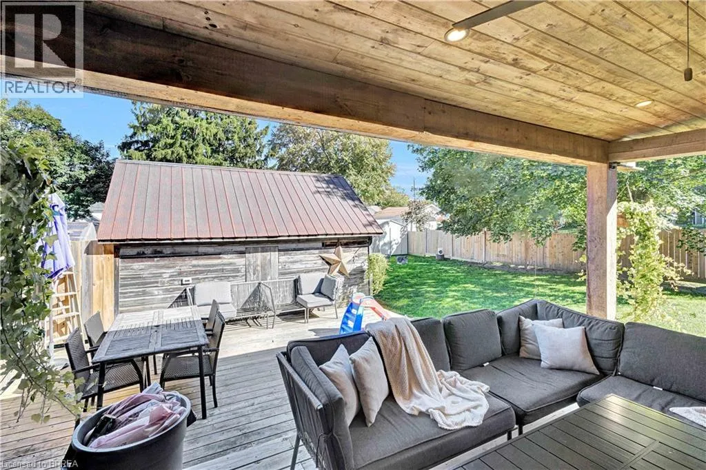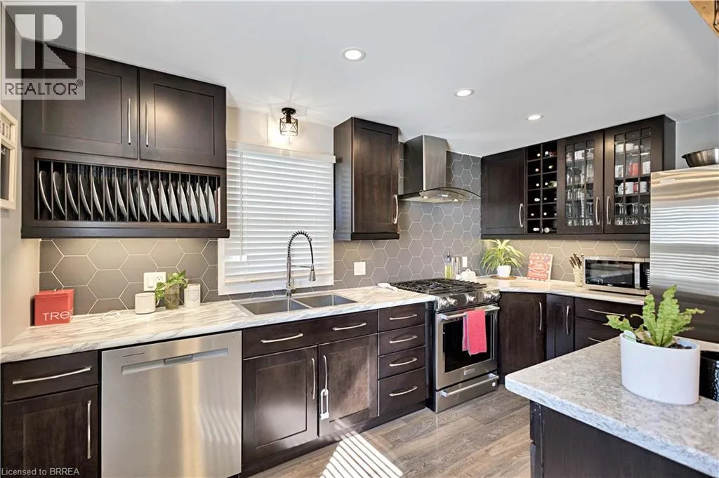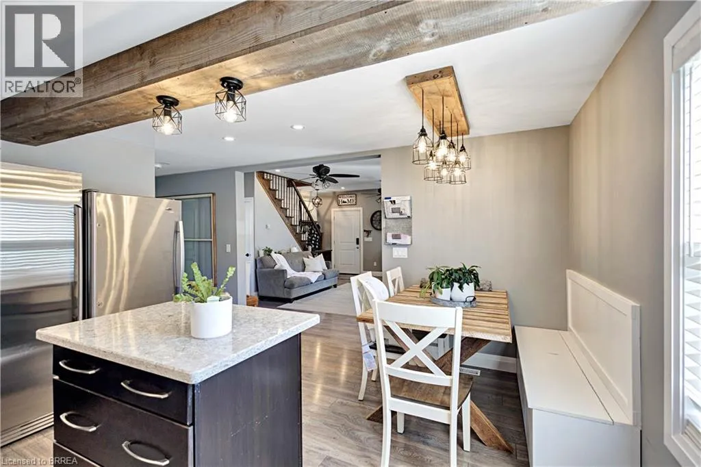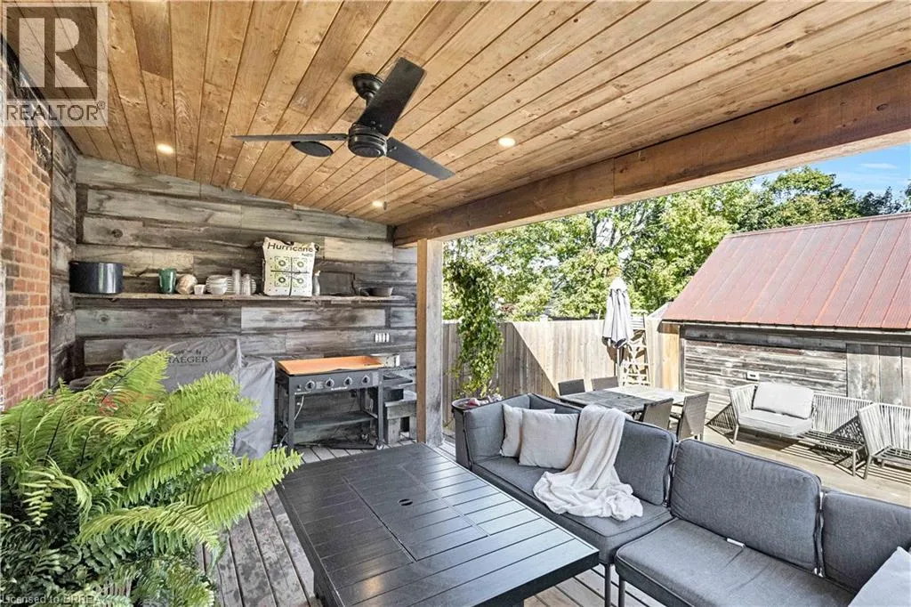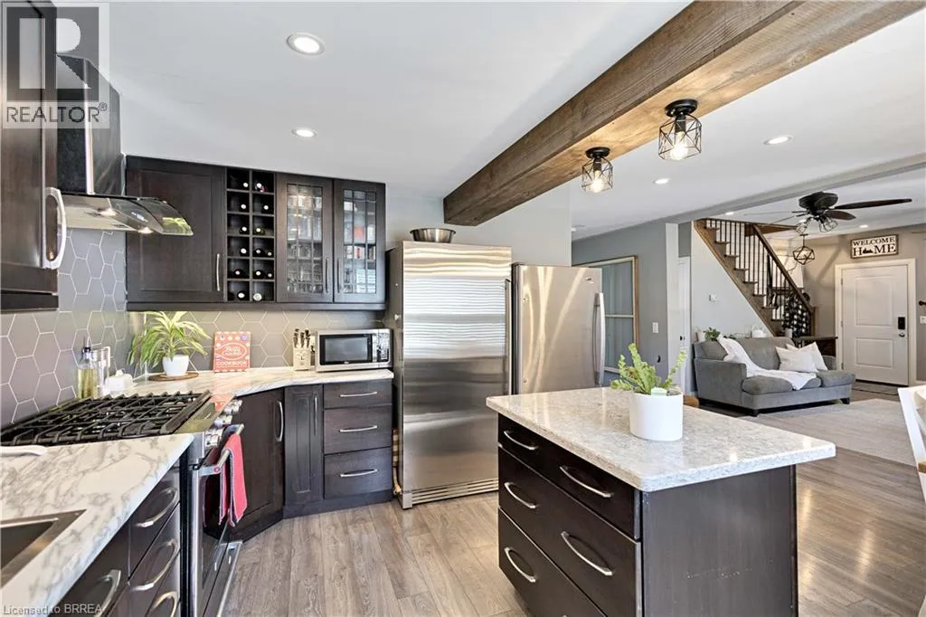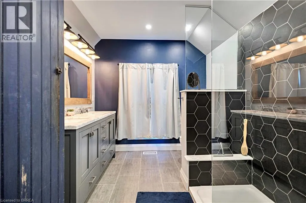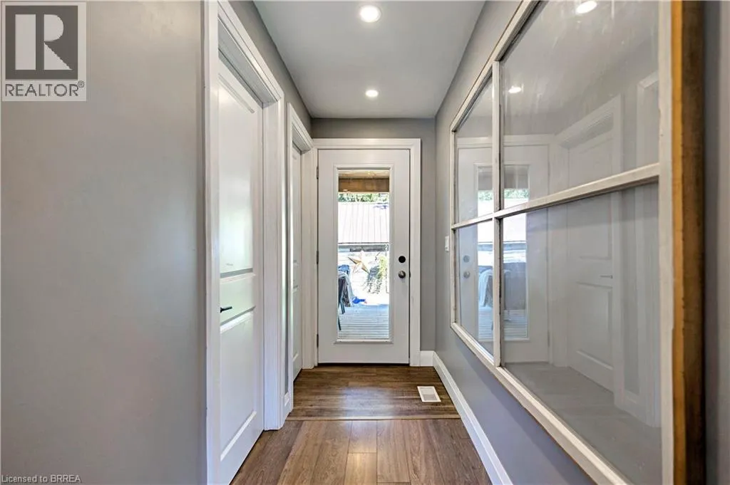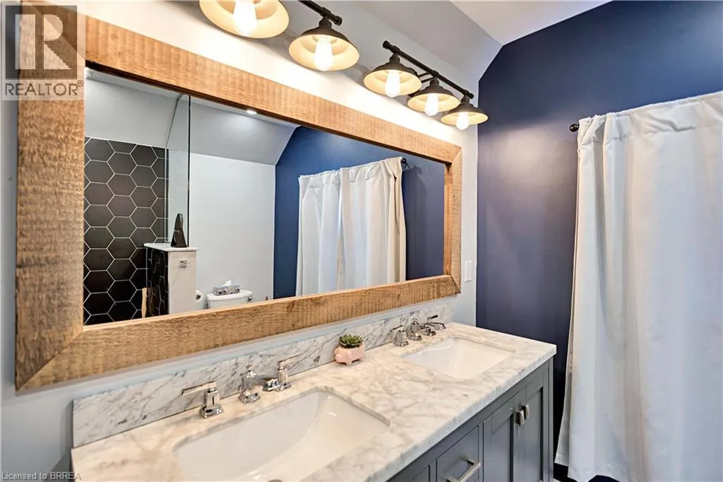 Corner of Washington. & Temperance. Welcome to 79 Washington Street, Waterford. Taken right down to the studs and completely rebuilt in 2018, this stunning home blends modern finishes with timeless character. Featuring 2 spacious bedrooms and 2 full bathrooms, itâs perfect for couples, small families, or anyone seeking turnkey living. The main level offers an inviting open-concept layout highlighted by an exposed wooden beam, a striking electric stone fireplace in the family room, and a charming sunroom with exposed brick. The dream kitchen boasts abundant counter and cabinet space, upgraded stainless steel appliances, and a bright eat-in dining area. A stylish 4-piece bathroom completes the main floor. Upstairs, youâll find two generous bedrooms, including a primary suite with two large closets and a luxurious ensuite featuring a tiled walk-in shower and double vanity. Step outside to your backyard oasisâperfect for entertaining or relaxing. Enjoy the covered deck with retractable privacy screens, a fully fenced and landscaped yard, oversized shed with hydro, and an inground pool with its own separate fence for added privacy and convenience. Every detail of this home has been thoughtfully crafted to provide both comfort and functionâinside and out. Move in and start enjoying everything 79 Washington Street has to offer! (id:27476)