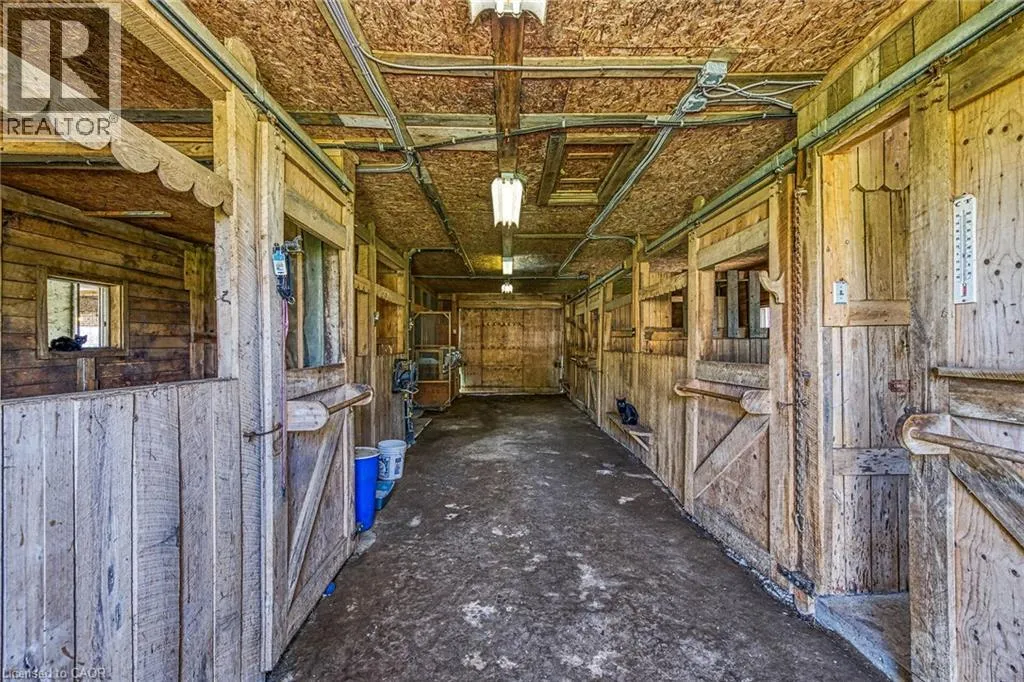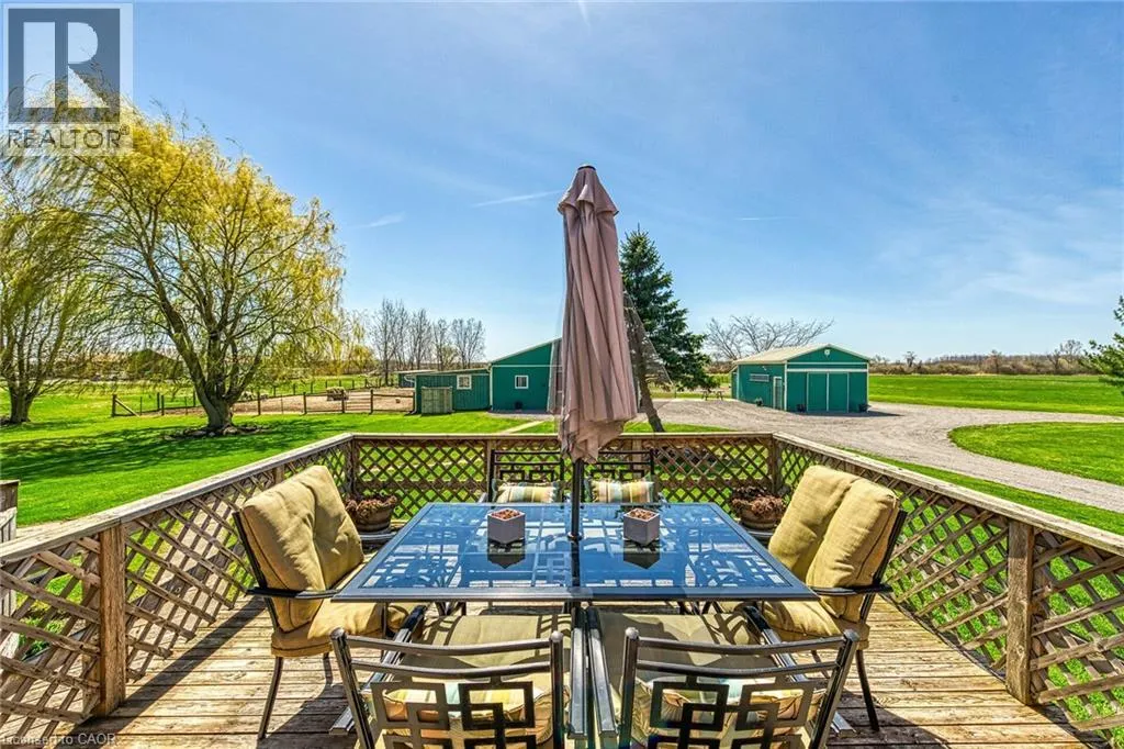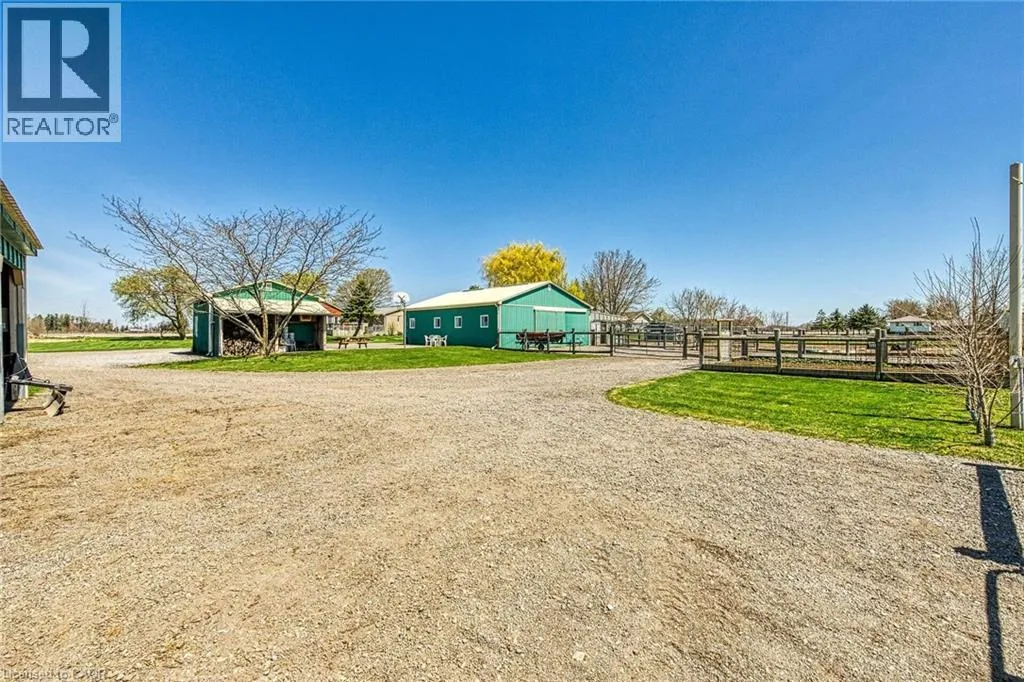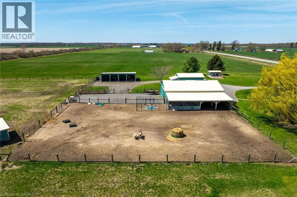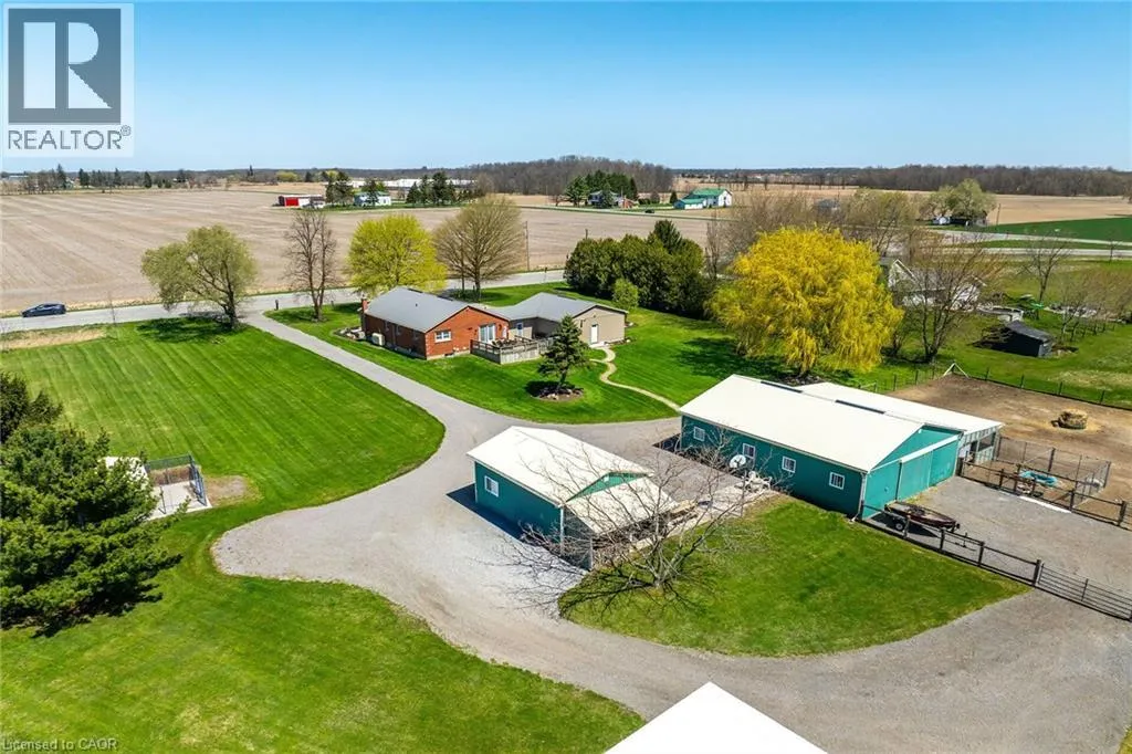 County Line 74 to West on Thompson Road Immaculate 14.34ac hobby farm located on eastern outskirts of Norfolk Cnty near Haldimand Cnty border central to Hagersville & Waterford. Incredible package begins at extensively renovated brick/stone/sided bungalow introducing over 2000sf of flawless living area (both levels), 680sf htd/ins. attached garage w/10ft ceilings, new stamped conc floor, 2 new ins. doors & p/g heater - complimented w/over 800sf of recently poured conc. front/side patio + 360sf tiered rear deck. Livestock lovers will appreciate metal clad 30x42 barn (blt in 2000) incs 5 hardwood box stalls, hydro, water & 16x42 lean-to w/separate road entrance. Additional buildings inc metal clad 24x16 garage (blt in 2000), versatile 3 bay open-end building att. to 22x40 sea-container, 20x14 dog kennel on conc. slab & multiple paddocks - majority of land is workable capable of supplying self sufficient feed livestock needs. Pristine home ftrs grand foyer incs 2 closets, rear & garage entry - leads to stylish kitchen'22 sporting dark cabinetry, tile back-splash, SS p/g stove, comm. style side/side SS fridge/freezer topped off w/granite counters - segues to dinette boasting garden door deck WO. Gorgeous travertine tile flooring compliment these rooms w/upscale flair. Continues to luxurious living room augmented w/hardwood flooring & picture window - on to primary bedroom ftrs WI closet & en-suite privilege to chicly appointed remodeled bath in 2022 - completed w/guest bedroom. Custom wood staircase descends to lower level family room - perfect for large family gatherings or simply to relax - additional rooms inc 2 bedrooms, modern 4pc bath, office/den or poss. 5th bedroom (no window), laundry room & utility room. Extras -metal roof, new ceilings, 200 hydro, vinyl windows, recent facia/soffit/eaves/siding, 4 ext. doorsâ23, int. doors/hardware/trim/baseboardsâ13, ex. well w/purification system, p/gas aqua-therm furnace-2025, AC, C/VAC & more. Experience rural living - rooted in sustainability & satisfaction. (id:27476)