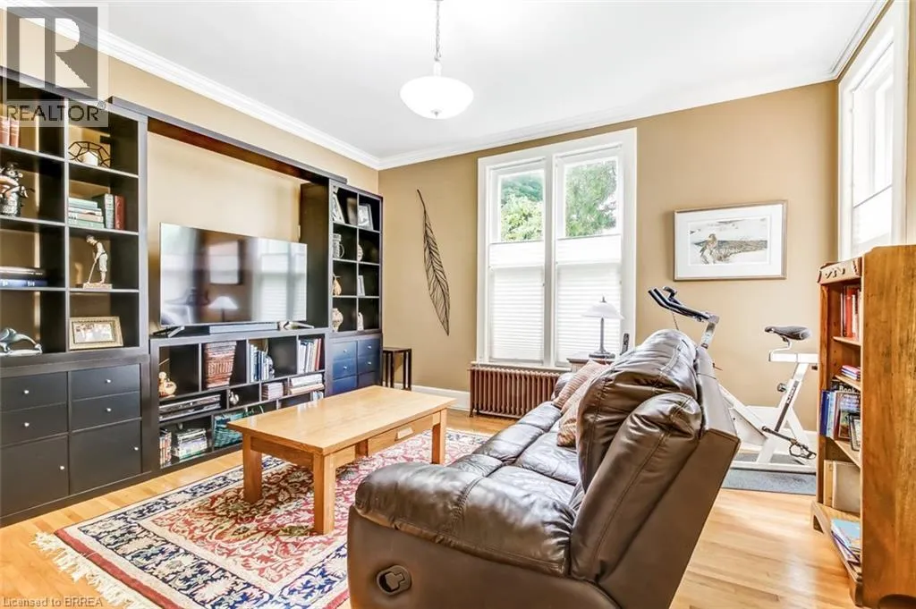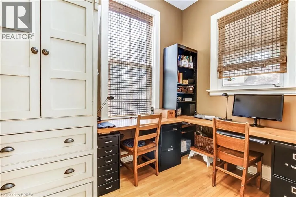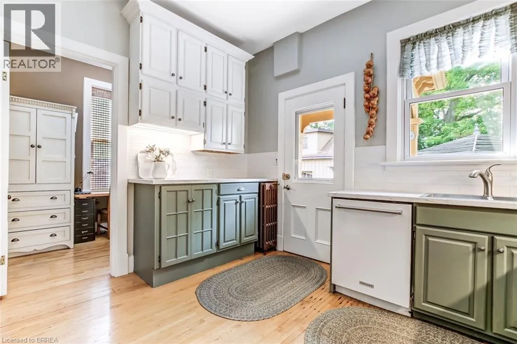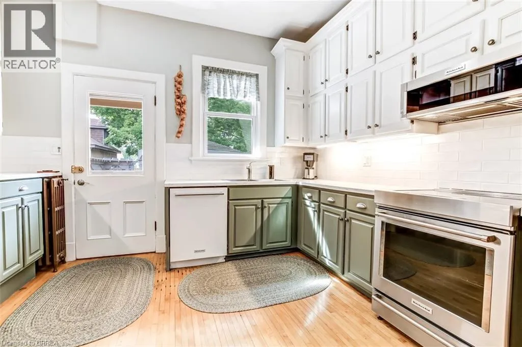 Main St. (Hwy #24) to West Church St to St. James Street Often admired and now for sale after 22 years of loving care and enhancement. This 1895 stately century home presents a Victorian facade, architecturally updated in 1936, and features the touch of an avid gardener creating a horticultural showcase once featured in a garden show and news media. Trees, hedges and fencing create a private outdoor living space. It contains a tasteful eat-in kitchen with upgraded appliances, convenient main floor office for two, grand dining and stately living rooms with gas fireplace and custom made cabinetry of hardwood and etched glass. The character of the home is complimented throughout by quality hardwood floors and woodwork, etched and stained glass doors, antique light fixtures and custom crown moulding in keeping with the original architecture of the home. The upper level features four generous bedrooms with primary ensuite and additional 4 piece bath. Outside you will find a coach house double car garage with a workshop and a loft studio apartment with kitchenette, bedsitting room and 3 piece bath. It is located 3 blocks from the Waterford ponds with boat launch, paved trail within the town limits and access to the scenic rail trail to both Pt. Dover and Brantford. This distinctive home is one of a kind that seldom comes available. Let your family be the next one to cherish it for years to come. (id:27476)