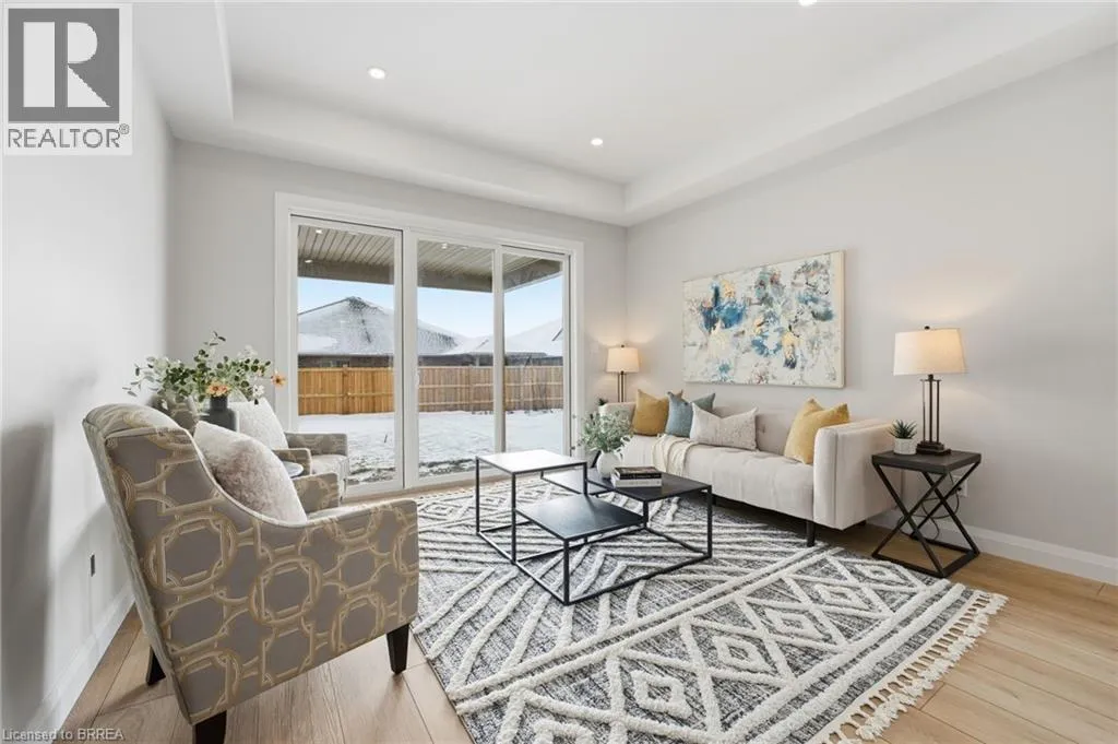 Travelling North on Washington Street, turn left onto Charles Street, and right onto Vanrooy Trail. Welcome to Modern Comfort in Waterford! Step into this beautifully crafted two-bedroom 1460 square foot bungalow, proudly built by the reputable Dixon Homes Inc. Designed with both elegance and functionality in mind, this home features a modern open concept layout that blends everyday living with effortless entertaining. From the moment you arrive, the full brick exterior and double car garage set a tone of timeless curb appeal. Inside, 9-foot ceilings elevate the sense of space and light, while luxury vinyl flooring offers style and low-maintenance living throughout the main floor. The kitchen is the heart of the home, complete with quartz countertops that continue into both bathrooms for a cohesive, upscale finish. The primary bedroom serves as a private retreat, boasting a walk-in closet and a spa-like three-piece ensuite with dual sinks. The main bathroom has the additional convenience of a bath/shower set-up and the laundry room is conveniently located on the main floor. Additional features include: covered rear deck perfect for relaxing or entertaining, Sliding glass doors leading to the deck area, paved driveway with space for two additional vehicles, fully sodded yard for move-in-ready landscape, 9â high basement with potential for custom finishing, and exterior entrance directly to the basement. But the home itself is just the beginning. Located in the charming town of Waterford, youâll enjoy the serenity of small-town living with the convenience of nearby urban amenities. Waterford is surrounded by natural beauty and is only a short drive from Ontarioâs South Coastâincluding Port Dover, Turkey Point, Long Point, and more. This impressive home offers modern comfort, thoughtful upgrades, and exceptional valueâall in a location where community, convenience, and nature meet. Donât miss your chance to call this beautiful property home. (id:27476)