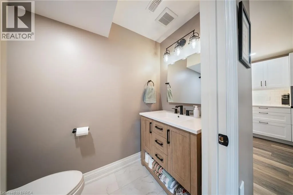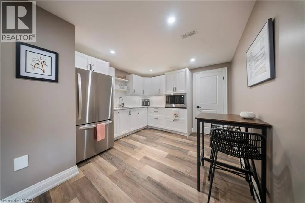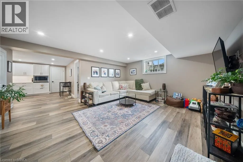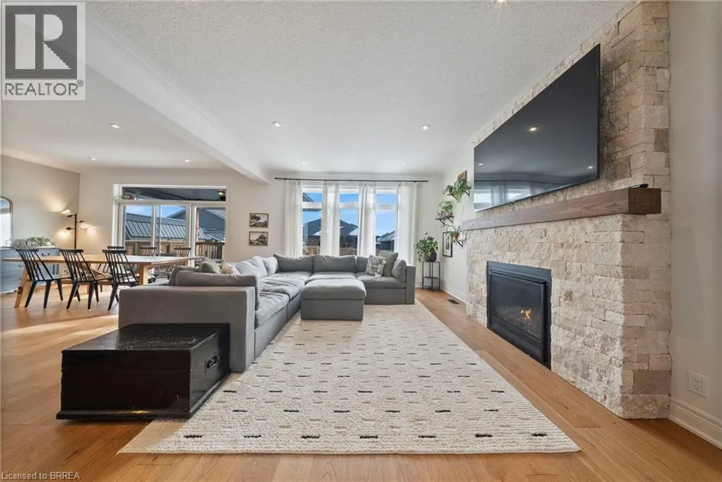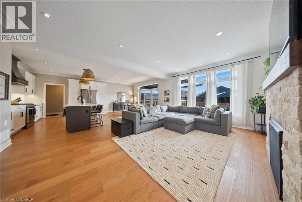 Welcome to this exquisite 2-storey home nestled in the charming town of Waterfordâwhere timeless elegance meets modern luxury. Meticulously crafted and beautifully maintained, this stunning residence seamlessly blends contemporary design with refined comfort. The thoughtfully designed open-concept main floor provides effortless flow between the kitchen, dining area, and living roomâan ideal layout for both everyday living and unforgettable entertaining. At the heart of the home is the chef-inspired kitchen, a true showstopper designed to impress. Featuring a spacious centre island with seating, sleek quartz countertops, a classic subway tile backsplash, premium stainless steel appliances, under-mount lighting, and refined crown moldings, this kitchen combines beauty and functionality in every detail. Whether preparing family meals or hosting guests, this space is sure to inspire. The living room exudes warmth and style with its striking stone-surround gas fireplaceâperfect for cozy eveningsâwhile the dining area offers sliding glass doors that lead to a covered deck, extending your living space outdoors for effortless indoor-outdoor entertaining. The fully finished lower level adds exceptional versatility, offering a spacious recreation room, convenient kitchenette, additional bedroom, and 2-peice bathroomâmaking it perfectly suited for an in-law suite or multi-generational living arrangement. Step outside to a fully fenced backyard designed for both relaxation and recreation. With ample space for entertaining, gardening, or letting children and pets play freely, this private outdoor retreat truly enhances the homeâs appeal. The property also features an updated aggregate driveway, eye-catching glow-in-the-dark safety stones on the steps for added nighttime visibility, and a concrete and turf enclosed dog runâthoughtfully designed with both style and practicality in mind. Luxury living in a welcoming communityâdonât miss this rare opportunity! (id:27476)