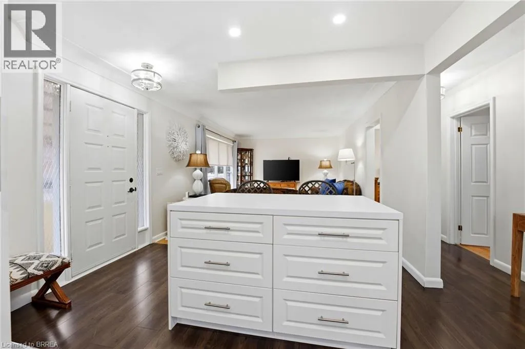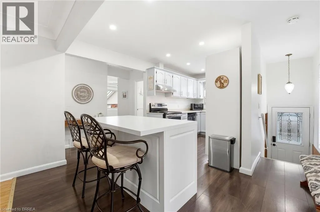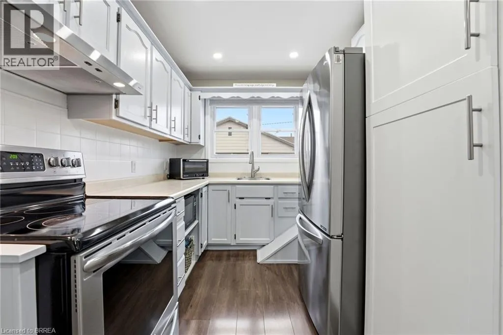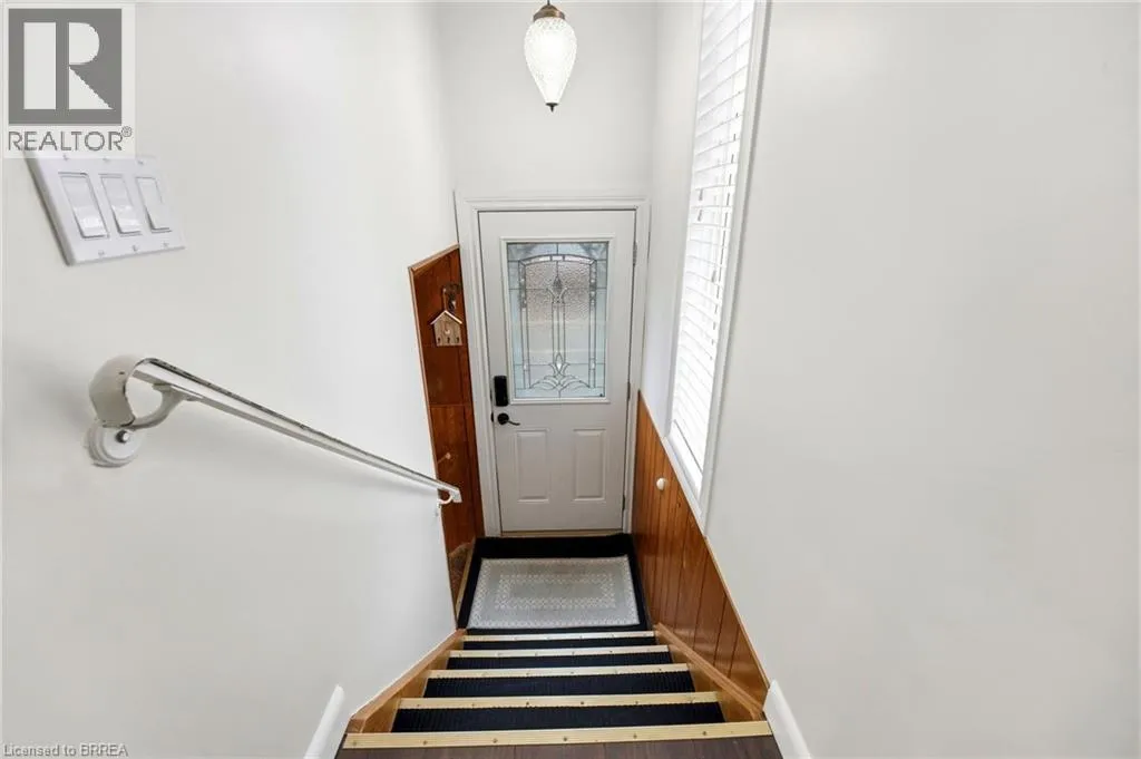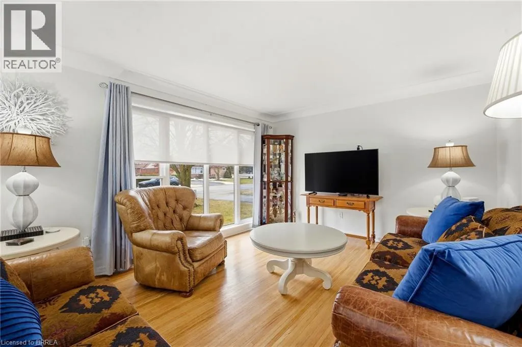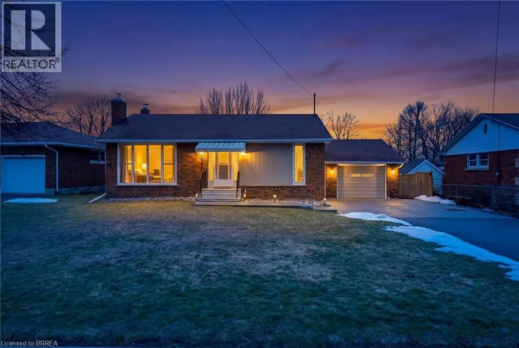 Thompson Road East, Waterford to Duncombe Road. Turn north. Pass the first access to Montclair Cres on left, continuing north to the second access point. Turn west onto Montclair Cres., property on north side of road. Welcome to 168 Montclair Circle in Waterford, ideally located in town and backing directly onto Waterford Public School. This immaculate brick bungalow with an attached oversized single-car garage offers 3 main-floor bedrooms and 2 full bathrooms, combining comfort, functionality, and thoughtful updates throughout. Perfect for hosting family and friends, the home features ample street parking along with a double-wide concrete and paved driveway, while the spacious garage provides an excellent workspace for hobbyists. Inside, youâll find gleaming hardwood floors, a bright open-concept kitchen and living area ideal for entertaining, and a large finished basement rec room highlighted by a cozy gas fireplace set against a striking brick feature wall. Extensive recent upgrades include a new furnace and A/C (2024/25), leaf and gutter guards on the eavestroughs (2025), updated lighting throughout the home and garage (2024), a fully renovated 3-piece basement bathroom (2025), new doors in the rec room, laundry room, and basement bath (2025), blackout blinds in the primary bedroom, kitchen, and bathroom (2024), a new kitchen island and pantry (2024), new wood fencing in the backyard (2024), fresh front landscaping with a beach-stone rock bed (2025), a poured concrete pad/deck (2023), gas fireplace (2019), new washer, dryer, and range hood (2024), and the entire home professionally painted in 2024. Simply move in and enjoy this beautifully maintained home. (id:27476)