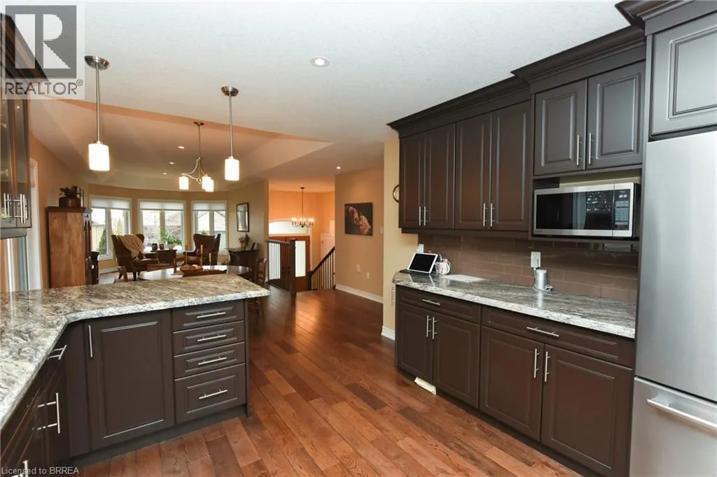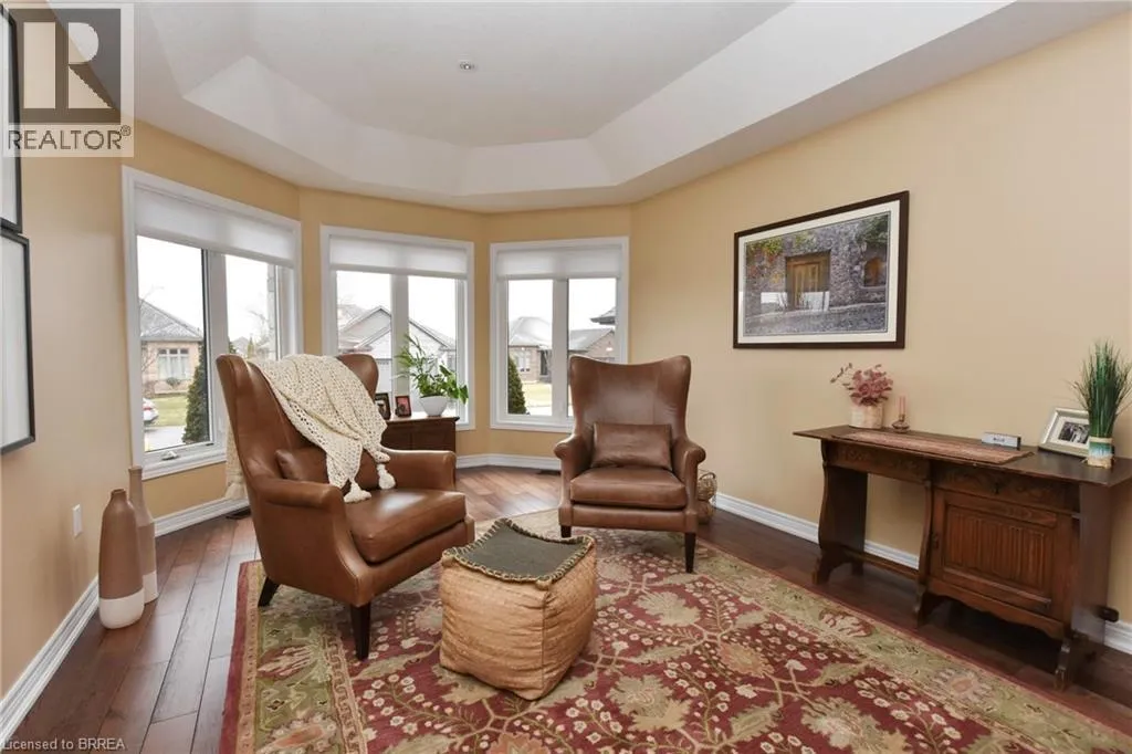 Welcome to 45 Tan Ave located in the charming town of Waterford. This lovely raised bungalow offers 4 bedrooms and 2.5 baths and feels bigger than its 2300sq. ft. of living space would indicate. The home offers luxury features like tray ceilings in living room and dining room. The kitchen has loads of cabinets for storage and ample counter space for food prep. The kitchen peninsula doubles as breakfast bar The kitchen and bathrooms have granite or hard surface counters with undermount sinks. The primary bedroom on main floor is generously sized has a walk-in closet and ensuite privilege. The ensuite has separate free standing soaker tub and separate shower. Vanity and toilet are just as elegant. What makes this home truly special is an additional 2 piece bath on the main floor. So by closing one door you have a full fledged ensuite. A second bedroom finishes the tour of this level. The lower levels offers oversize windows to maximize natural light. Family will surely gather in the cavernous size family room with corner gas fireplace. Just a wonderful spot to hang. Two more bedrooms on this level plus dedicated laundry room. Almost forgot to mention the lovely 3 piece bath located here as well. The two car garage with in home entry is 23ft x 21ft with 12ft ceilings and includes custom pet washing station and garage door openers. The home was constructed with 2x6 exterior walls to helo with energy costs. The exterior has also not been ignored. Paved driveway with decorative edge detail, inground sprinklers front and rear, landacaped rear yard, with deck and privacy fence on all three sides. Homes at his price point don't include the I want features incorporated into this home. Be sure to book a viewing before its gone. Don't miss an opportunity for small town living at its best. (id:27476)