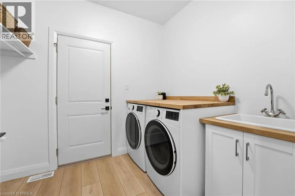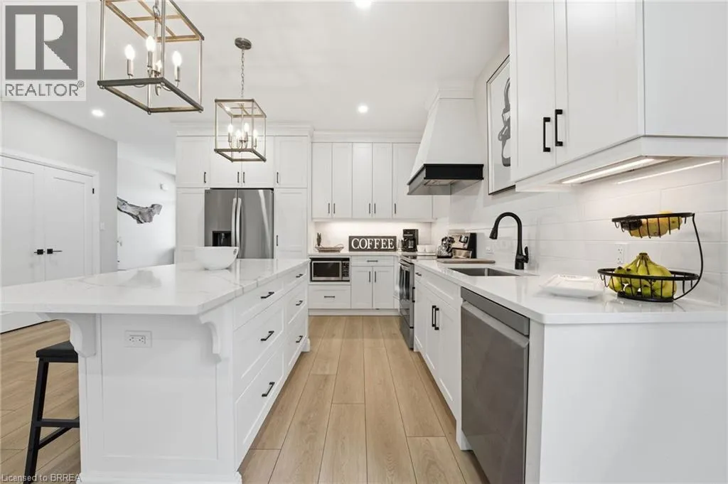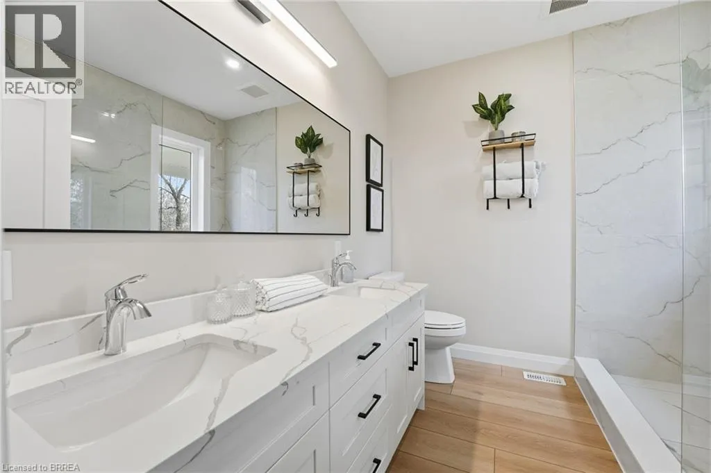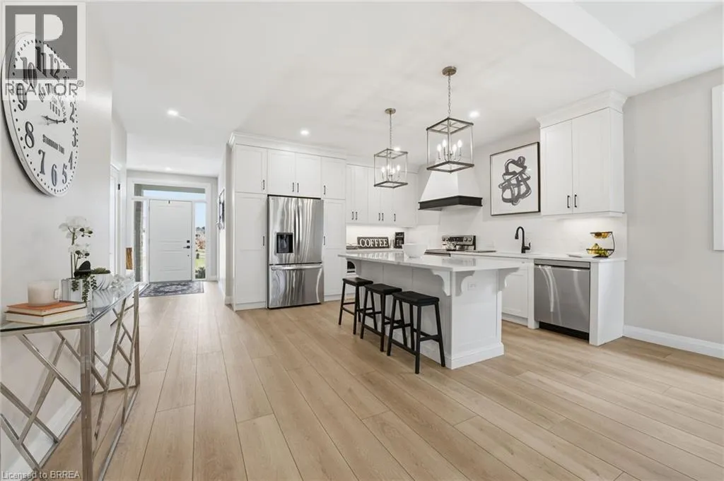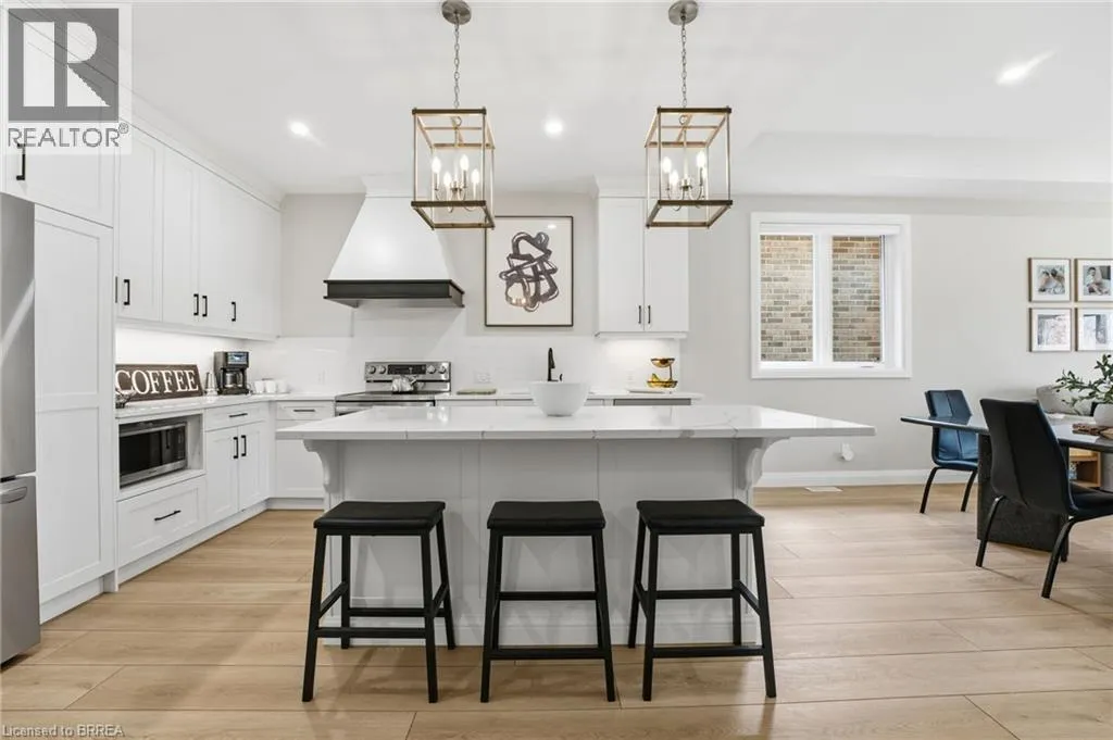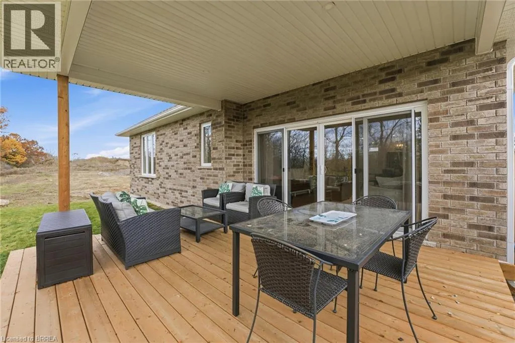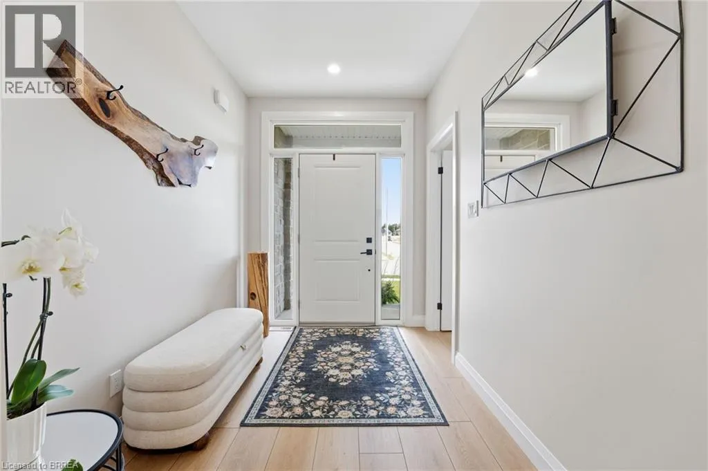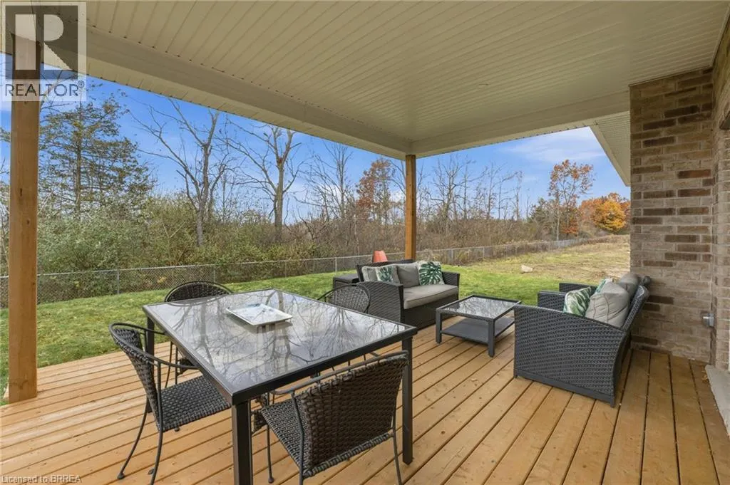 Travelling West on Charles Street, turn right onto Vanrooy Trail. Step into this beautifully crafted three-bedroom 1675 square foot bungalow, proudly built by the reputable Dixon Homes Inc. Designed with both elegance and functionality in mind, this home features a modern open-concept layout that blends everyday living with effortless entertaining. From the moment you arrive, the full brick exterior and double car garage set a tone of timeless curb appeal. Inside, 9-foot ceilings elevate the sense of space and light, while luxury vinyl flooring offers style and low-maintenance living throughout the main floor. The kitchen features quartz countertops that continue into both bathrooms for a cohesive, upscale finish. The primary bedroom serves as a private retreat, boasting a walk-in closet and a spa- like three-piece ensuite with dual sinks. The main bathroom has the additional convenience of a bath/shower set-up and the laundry room is conveniently located on the main floor. Additional features include a covered rear deck that is perfect for relaxing or entertaining. Sliding glass doors lead directly to the deck area, creating a seamless indoor-outdoor flow. The paved driveway provides space for two additional vehicles, while the fully sodded yard offers a move-in-ready landscape. The 9-foot-high basement provides excellent potential for custom finishing and includes an exterior entrance that leads directly to the basement. Enjoy added privacy with no backyard neighbours, as the property backs onto the scenic trails. Located in the charming town of Waterford, youâll enjoy the serenity of small-town living with the convenience of nearby urban amenities. Waterford is surrounded by natural beauty and is only a short drive from Ontarioâs South Coastâincluding Port Dover, Turkey Point, Long Point, and more. This impressive home offers modern comfort, thoughtful upgrades, and exceptional valueâall in a location where community, convenience, and nature meet. Donât miss your chance to call this beautiful property your home. (id:27476)