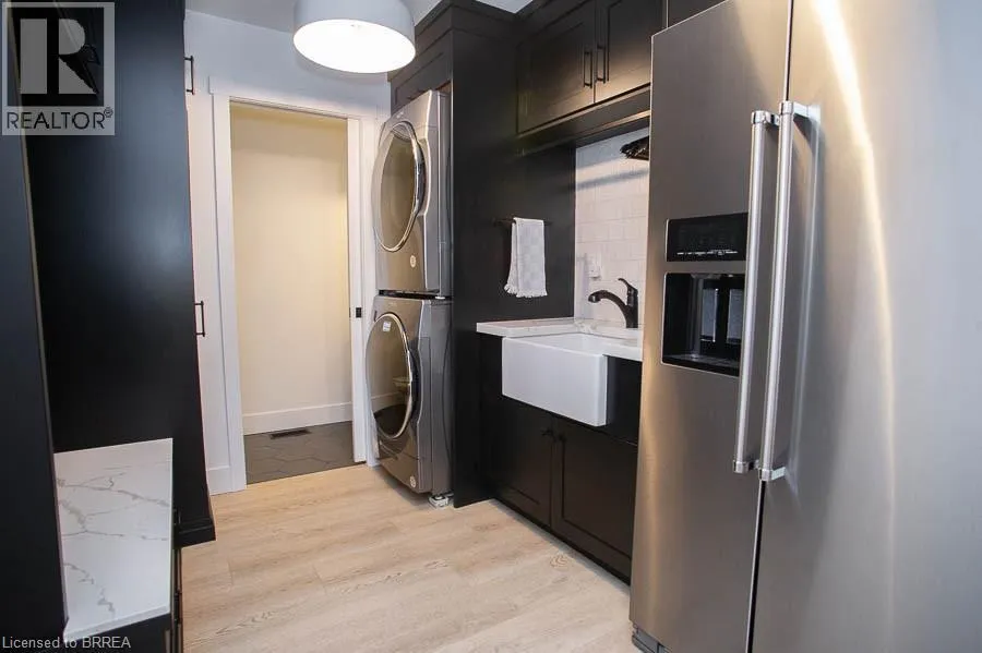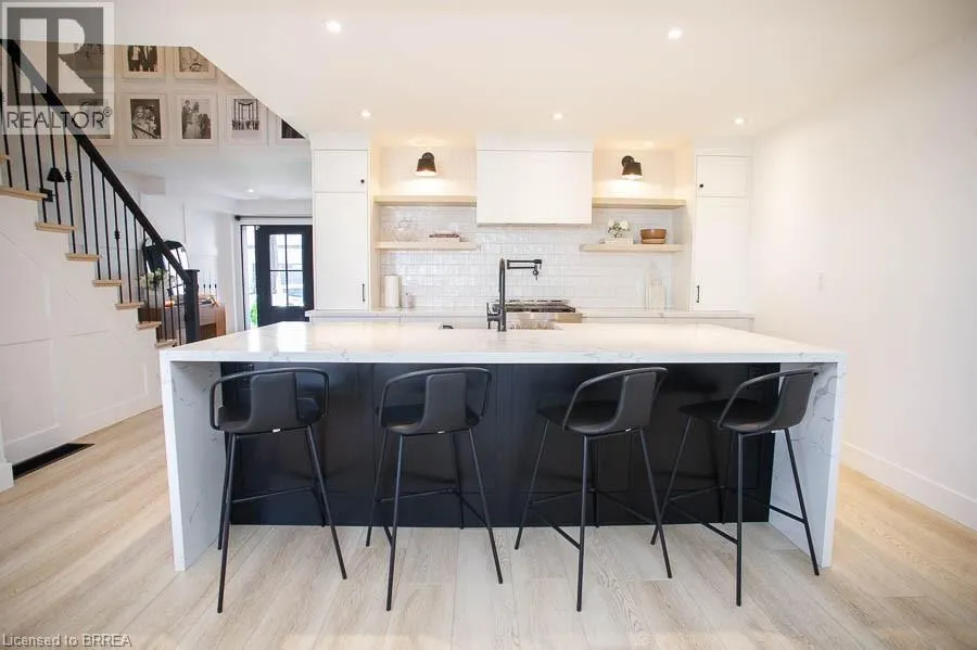 Main St North to Amber Street, turn onto Beemer Street then to Gibbons Street Stunning home in the heart of Waterford - one of Norfolk County's most sought-after communities. Beautifully designed, nearly 2,000 sq ft home offers 3 bedrooms, 2.5 bathrooms, a double garage, & a modern backyard oasis w covered porch. Thoughtfully curated materials & upgrades throughout offers a custom build, w style & continuity in every detail. Striking curb appeal is enhanced by professional landscaping, concrete walkways, & steps that wrap elegantly around the home. Inside, a grand foyer welcomes you w wide- plank LVP flooring, wainscoting, & a dramatic hardwood staircase w sconce lighting. The mudroom/laundry space is both functional & stylish, w ample built-in cabinetry, quartz counters, & bench seating - leading to a designer powder room w floating vanity, vessel sinks & honeycomb tile that can be found in all bathrooms. The open-concept main living area is perfect for both everyday life & entertaining. The kitchen features modern white cabinetry, quartz countertops, a massive 9.5' x 4.5' island, open shelving, & two pantries. The adjoining dining & living areas flow seamlessly, highlighted by a sleek concrete fireplace. Patio doors open to a composite covered porch w glass railing, overlooking a beautifully designed backyard w seating area, gazebo, & elegant lighting. Upstairs, the primary suite includes a barn-door walk-in closet & spa-inspired ensuite w soaker tub, glass shower, & quartz vanity. Two additional spacious bedrooms, a designer full bathroom,& a cozy office area w barn doors complete the upper level. The lower level is thoughtfully prepared for future finishing & offers exceptional potential for added living space, featuring a 3-piece bathroom rough-in & oversized window that make it ideal for a recreation room, guest suite, or additional bedroom. Unfinished & ready for your vision, space provides incredible flexibility to customize to your lifestyle. This home is a rare blend of luxury, function, & style - ready to welcome its next family. (id:27476)