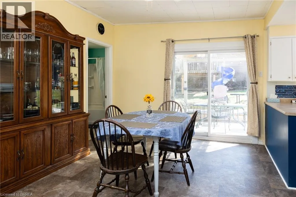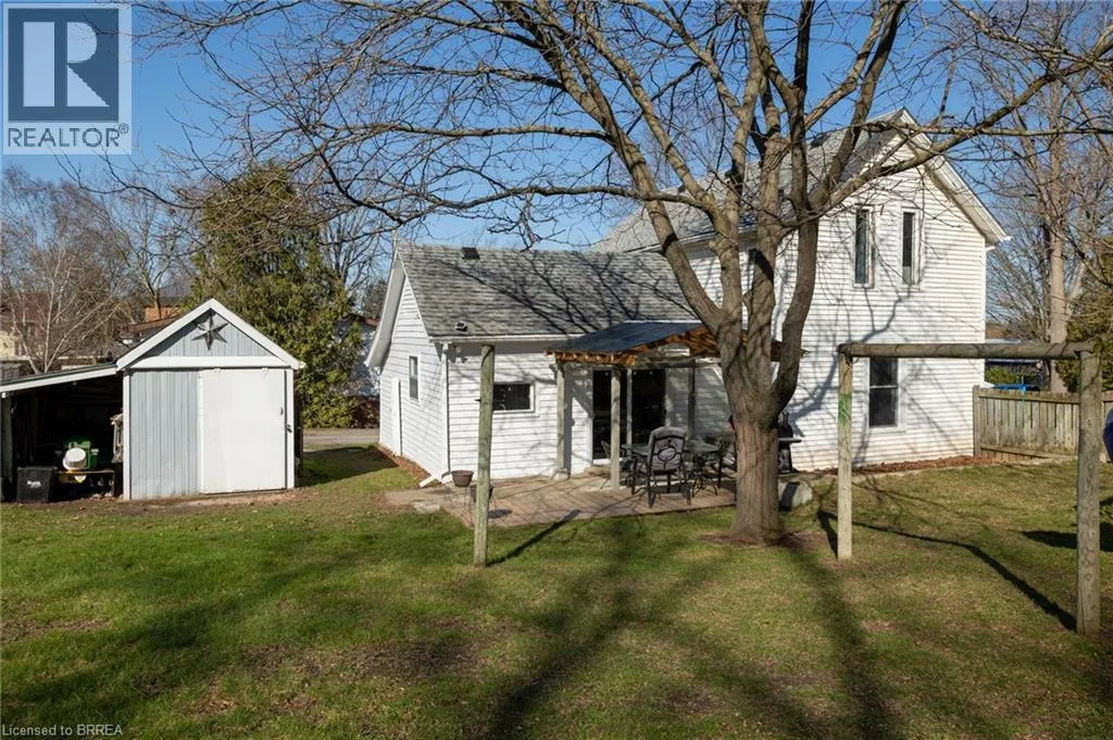 Main St S, to Temperance St W. Watch for the sign Great starter or small family home near all amenities in the charming town of Waterford, with a large yard. Featuring 3 bedrooms, 2 full bathrooms, a spacious living room with tall ceilings, formal dining room & front mudroom. The kitchen is the heart of the home, and this one is a good size with a peninsula and all major appliances included. Just off the kitchen is the main floor laundry room and sliding doors to the backyard patio with pergola. Wonderful, spacious back yard complete with two large sheds; handy for your tools and toys; and a super fun playhouse with slide for the kids. Loads of private and street parking as well. This is a great opportunity to buy at a fair price in a good neighbourhood close to schools, all amenities, the ponds and trails. Do not delay, book your private viewing today. (id:27476)