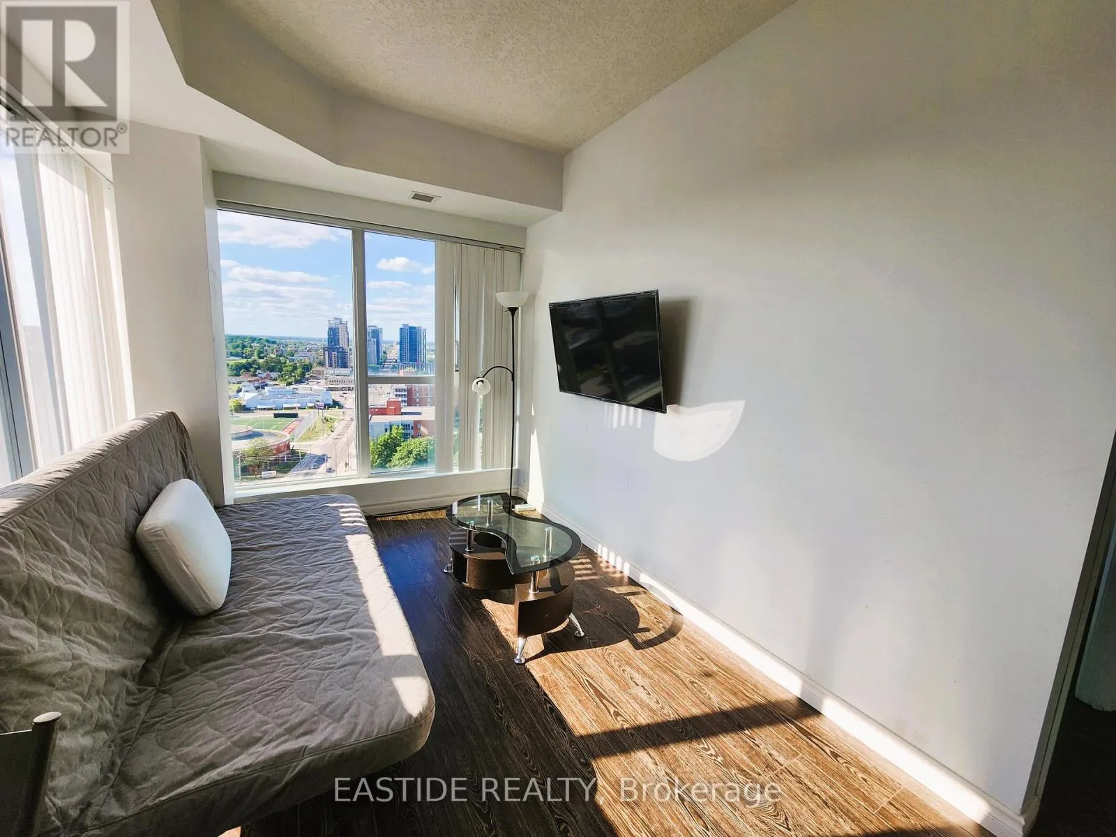 Cross Streets: UNIVERSITY AVE/KING ST N. ** Directions: WEST. Situated in the heart of the city, Close To Uptown Waterloo, just beside Wilfrid Laurier University And Park, Few Minutes Driving To University Of Waterloo. 2 Br With 2 Washrooms. Bright And Spacious 867 Sq Ft of living space. Modern Finishes With 9-Feet Ceiling, Custom Kitchen Cabinetry, Stainless Steel Appliances And High Quality Laminate Wood Floors. Large Den With Window Can Be Used As 3rd Bedroom. The bed room features extra-large windows, flooding the space with natural light and enhancing the airy ambiance of the unit. Take advantage of the prime rental income potential, surging population growth, excellent transit options. Discover urban living at its finest in this contemporary suite at K2 Condominium. Ideal for students, professionals, and families, this location offers endless opportunities for both residents and investors alike. (id:27476)