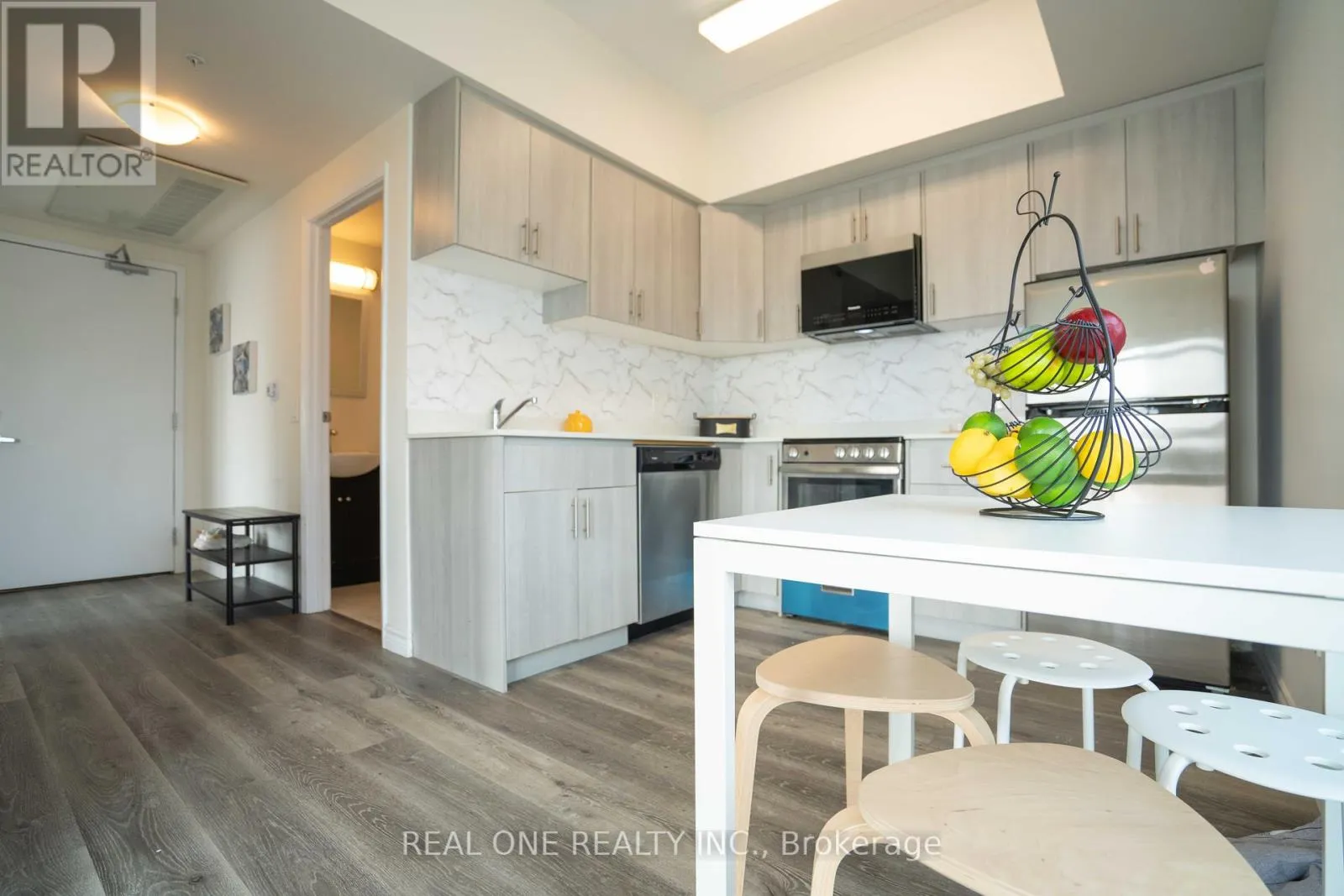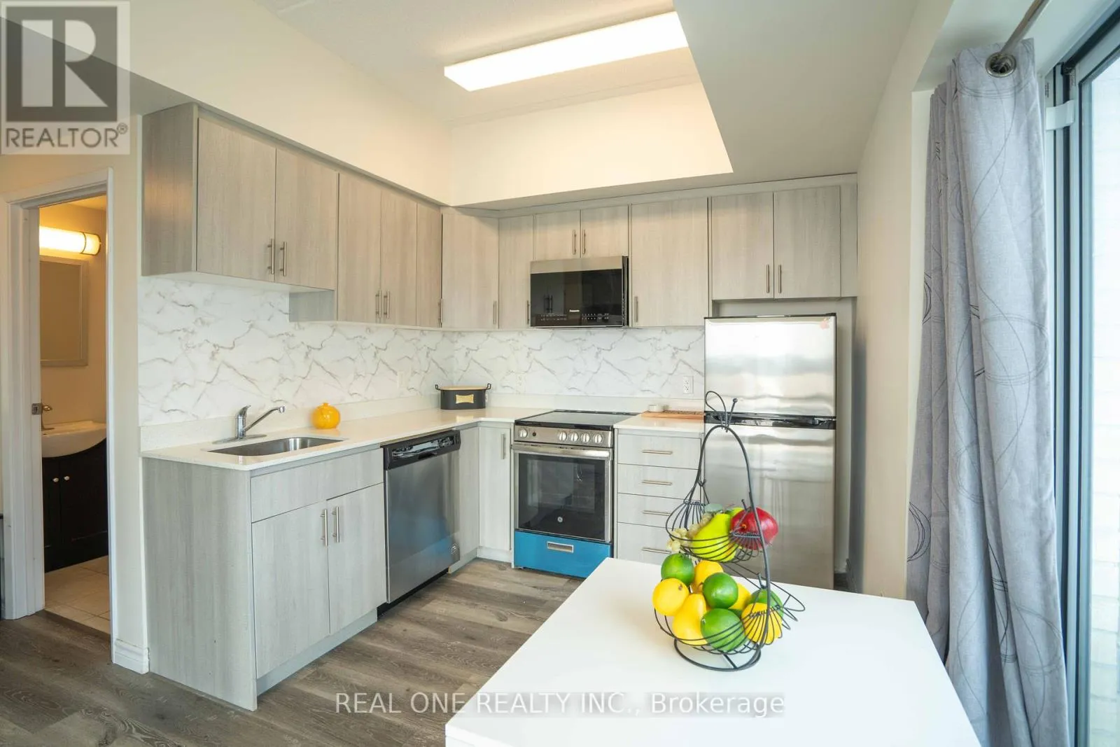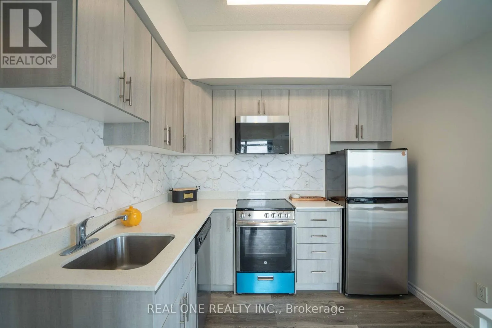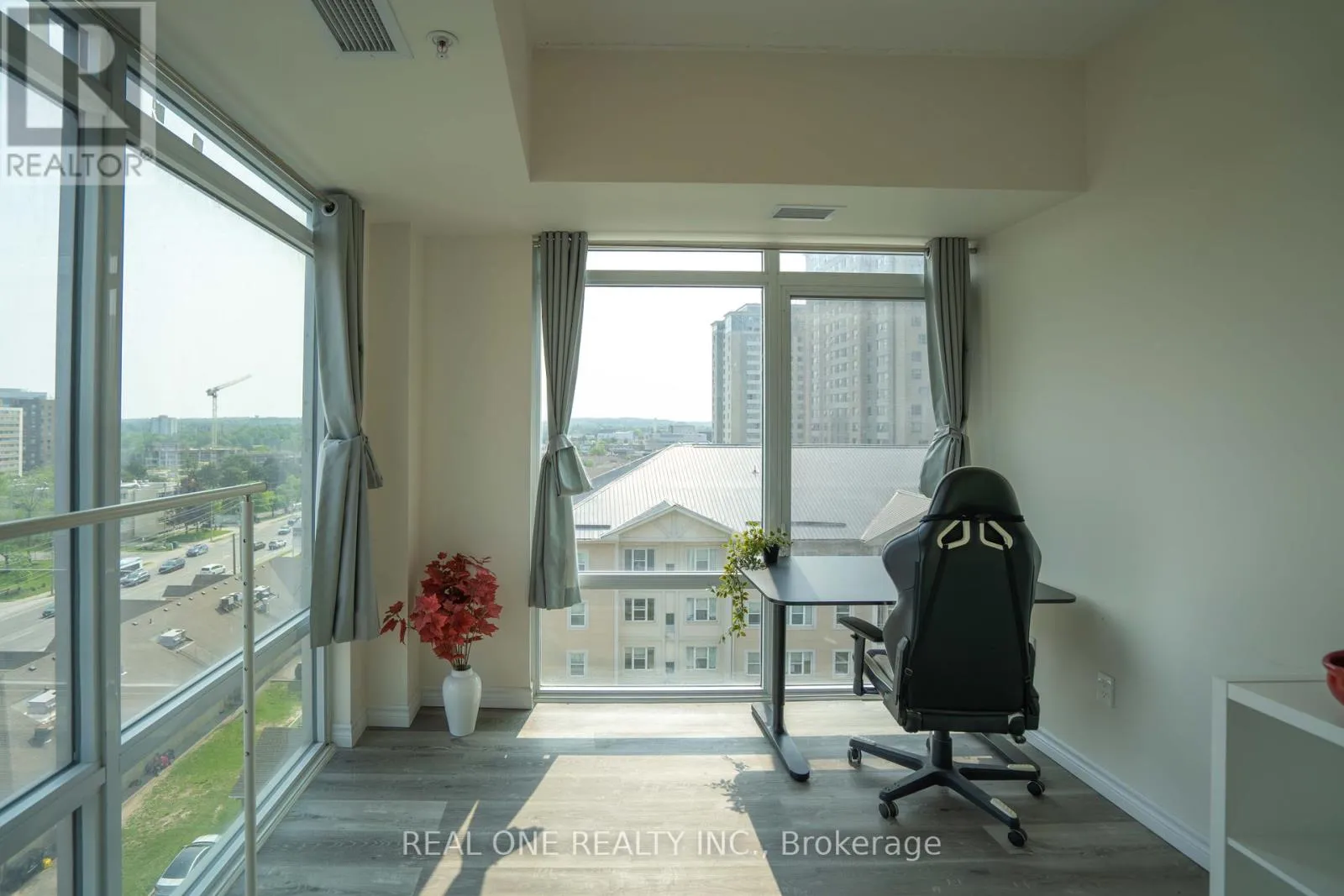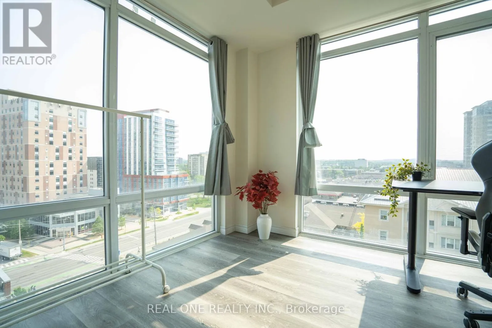 University/Lester Sun-Filled Corner Unit in Prime University District Location! Welcome to Unit 902 a rare south-west facing corner unit with Floor-to-ceiling windows in all rooms offering abundant natural sunlight and stunning open views. This well-maintained 1+1 bedroom, 2-bathroom condo features a smart, open-concept layout with a versatile den that can easily be converted into a true second bedroom by adding a wall and door. Enjoy modern finishes throughout, including laminate flooring, quartz countertops, and a full set of stainless steel appliances in the contemporary kitchen. The spacious primary bedroom includes a private 3-piece ensuite, while the second full bathroom features a convenient corner shower. This unit also offers the added convenience of in-suite laundry, featuring a newer, high-end washer/dryer. The 9-foot ceilings and large windows amplify the light and space, making this condo feel airy and bright all day long. Building amenities include a study room with rooftop terrace, fitness centre, visitor parking, and a CCTV-monitored security system in common areas. Just steps from WLU and UW with easy access to restaurants, cafés, shopping, and public transit. The unit is owner-occupied and well-maintained, and one rare find parking spot is included. Perfect for students, professionals, or investors dont miss out on this sunny, spacious, and versatile unit in one of Waterloos most sought-after buildings! (id:27476)