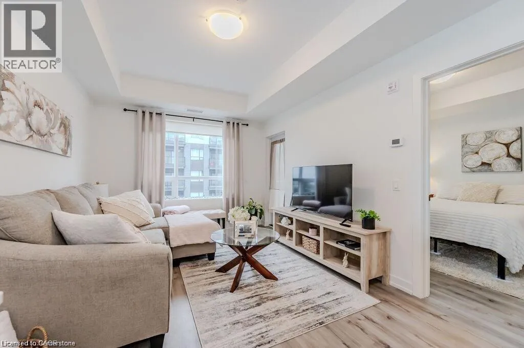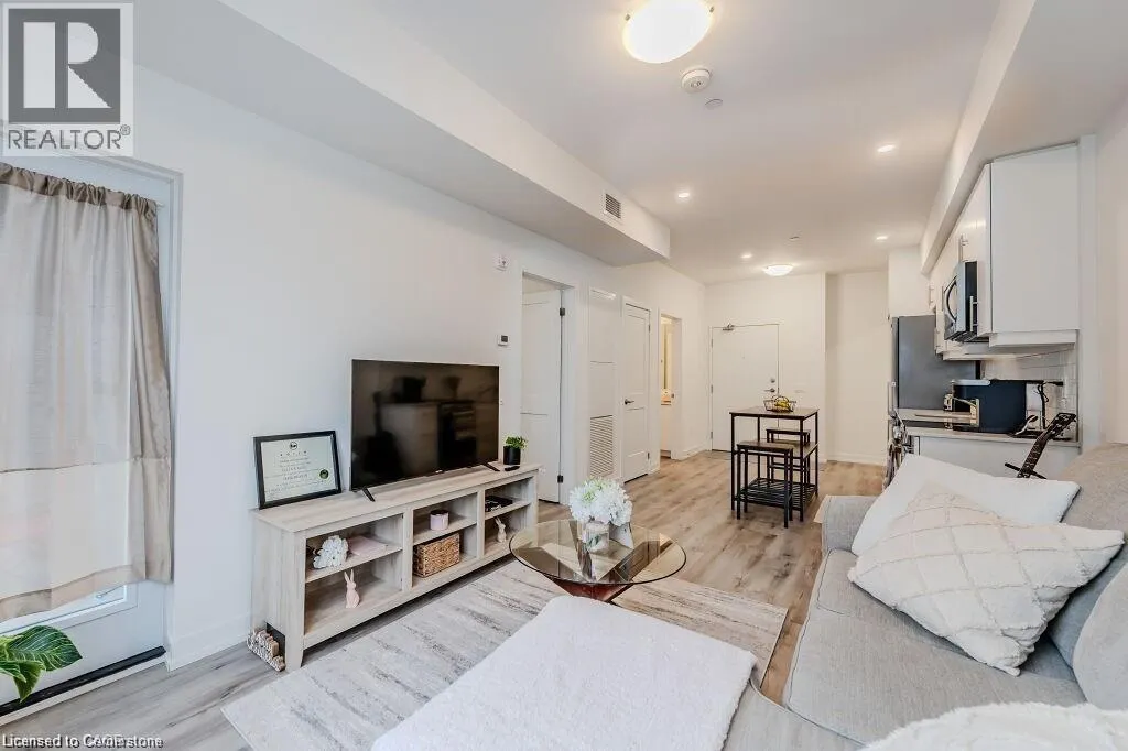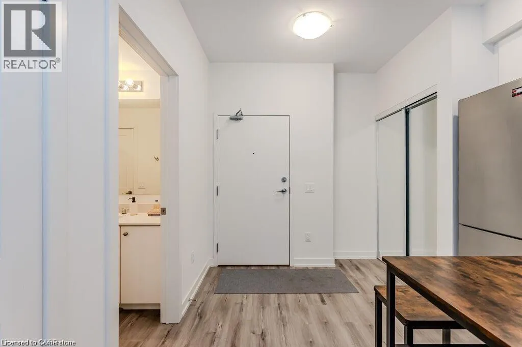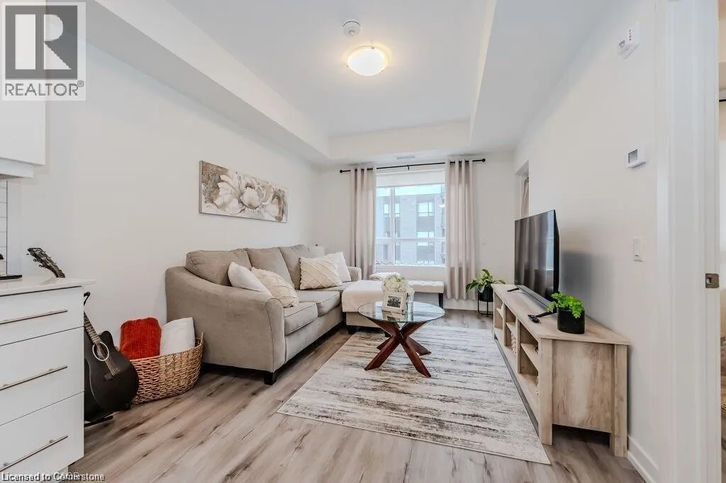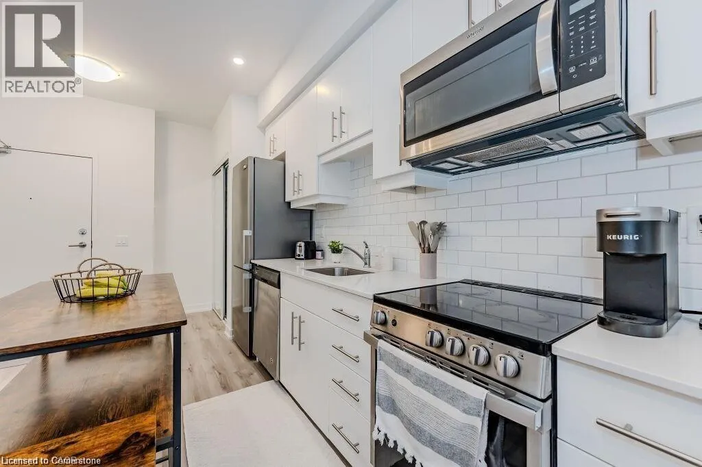 Bridge/Northfield Discover this chic one-bedroom unit in the modern Blackstone complex, featuring a bright, open layout with 9-foot ceilings, upgraded vinyl flooring, a spacious walk-in closet, and a private balcony. The sleek kitchen boasts quartz countertops, stainless steel appliances, and a built-in microwave. Enjoy the convenience of an in-suite stacked washer/dryer. Residents have access to premium amenities, including a state-of-the-art gym, vibrant party lounge, bike storage, and an outdoor terrace with BBQs and a gas fire pit. Includes underground parking and storage for tires or decorations. Perfectly located near St. Jacobs Farmers Market, Conestoga Mall, expressway access, LRT stations, RIM Park, and scenic walking/biking trails. Ideal for modern living in a prime Kitchener location. (id:27476)