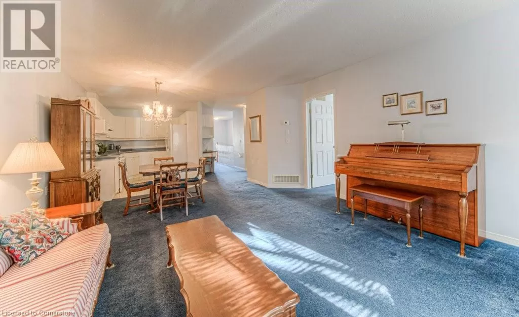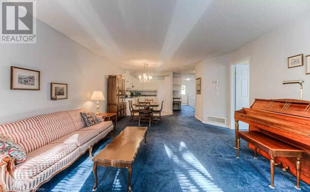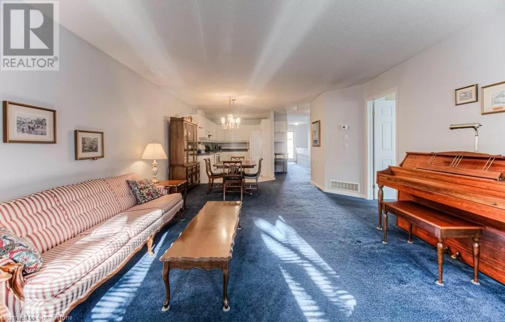 Columbia to Erbsville Turnkey Bungalow Townhome in Prime Waterloo Location! Looking to downsize, purchase your first home, or enjoy the ease of single-level living? This immaculate 2-bedroom bungalow townhouse condoâwith an attached garageâis the perfect fit, nestled in one of Waterlooâs most desirable neighbourhoods. The main floor features a spacious and bright open-concept layout combining the family room, dining area, and kitchenâideal for everyday living and entertaining. The generously sized primary bedroom includes a 4-piece ensuite and double closet, while the second bedroom (currently used as an office/den) also features a closet for added flexibility. Enjoy peace of mind with a well-maintained and move-in-ready home, including a finished basement offering a large rec room with cozy gas fireplace, a 3-piece bathroom, and a versatile bonus room currently set up with two single bedsâperfect for guests, a home gym, or games room. Relax or entertain outdoors on the new deck complete with a gas BBQ hookup. Additional highlights include main floor laundry, a 100-amp electrical panel, and newer furnace and central air (2017). Don't miss your opportunity to own a low-maintenance home in a sought-after community! (id:27476)