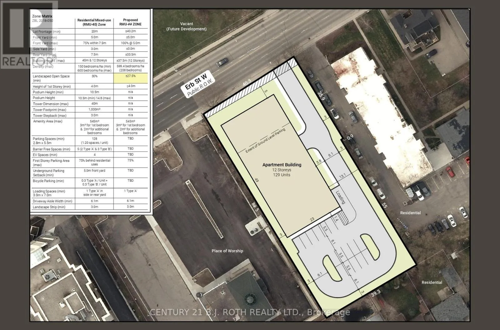 Cross Streets: ERB ST W/WESTMOUNT RD S. ** Directions: NORTH ON WESMOUNTRD S., TURN RIGHT ON ERB ST W. This land assembly, totaling 0.89 acres, presents a compelling development potential opportunity with 3 existing income-generating properties situated in the heart of Waterloos energetic uptown core. In 2024, a development concept was brought forward to the City of Waterloo, outlining a 12-story residential apartment building with 129 units. The plan includes 17 parking spaces located at grade behind the building, complemented by additional underground parking whose quantity has yet to be specified. The project adheres to the area's zoning regulations and complies with both the Official Plan and applicable Zoning By-Laws, including matching the scale and height of surrounding developments. This prime location lies within one of Waterloos most desirable neighborhoods and falls inside the Willis Way Protected Major Transit Station Area (PMTSA), where minimum parking requirements are waived under Bill 185. The vision for the residential development centers around connected urban living, offering future residents immediate access to restaurants, boutiques, entertainment, and cultural attractions. With nearby schools, green spaces, institutions, and modern infrastructure enhancements, this site is exceptionally well-positioned to benefit from long-term growth, sustained demand, and increasing value. The seller and their representative make no guarantees about the property's future use or development potential regardless of any of the favorable information noted. The buyer is fully responsible for investigating all current and future matters related to the property and future development. Image of the 12 story building in the listing is merely a virtual rendering to help give some perspective on what may be possible. (id:27476)