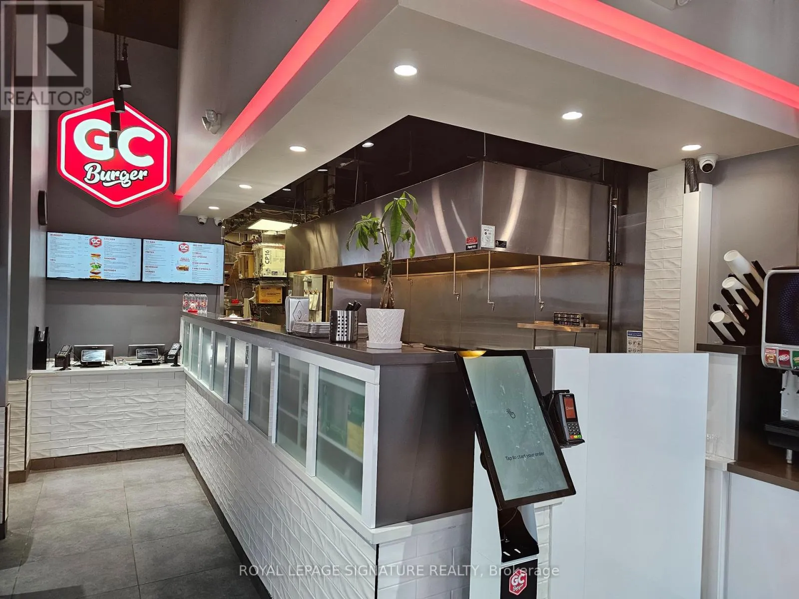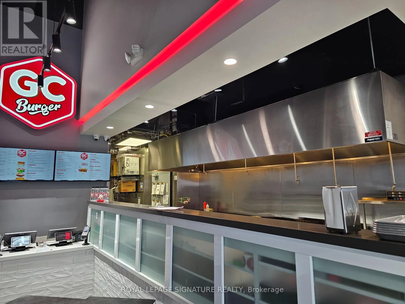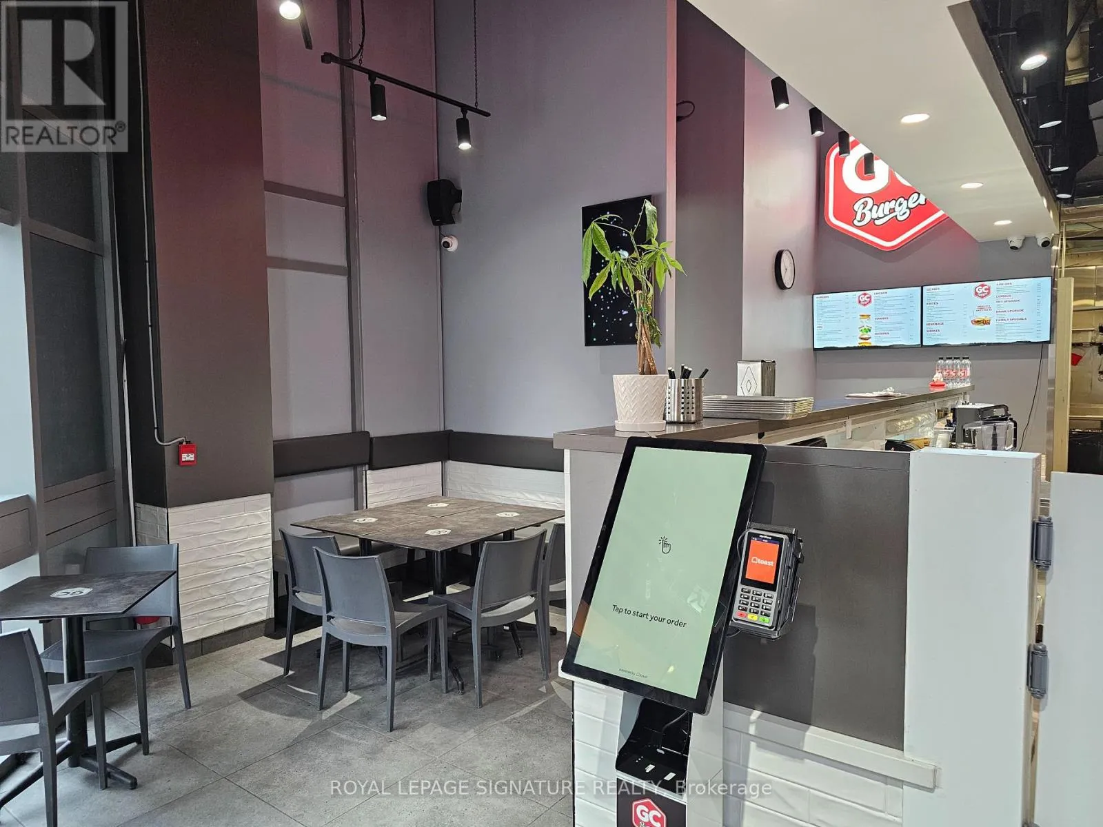 Hickory St E & King St N GC Burger franchise location in the heart of the University District in Kitchener-Waterloo.Situated at the base of 308 King, a newly built condo tower dedicated to student accommodation,this is a prime location for high foot traffic and visibility. The unit features 1,073 sq ft with a modern QSR layout, seating for 16 inside, plus a patio with additional seating. Equipped with a massive 16-ft commercial hood, two walk-in fridges, and a full line of new equipment this turnkey setup is ideal for efficient operations. Attractive lease rate of $5,487 gross rent including TMI with 4 + 5 years remaining. Full training to be provided pending franchisor approval, with royalties set at 6% + 2.5%. Please do not go direct or speak to staff. (id:27476)