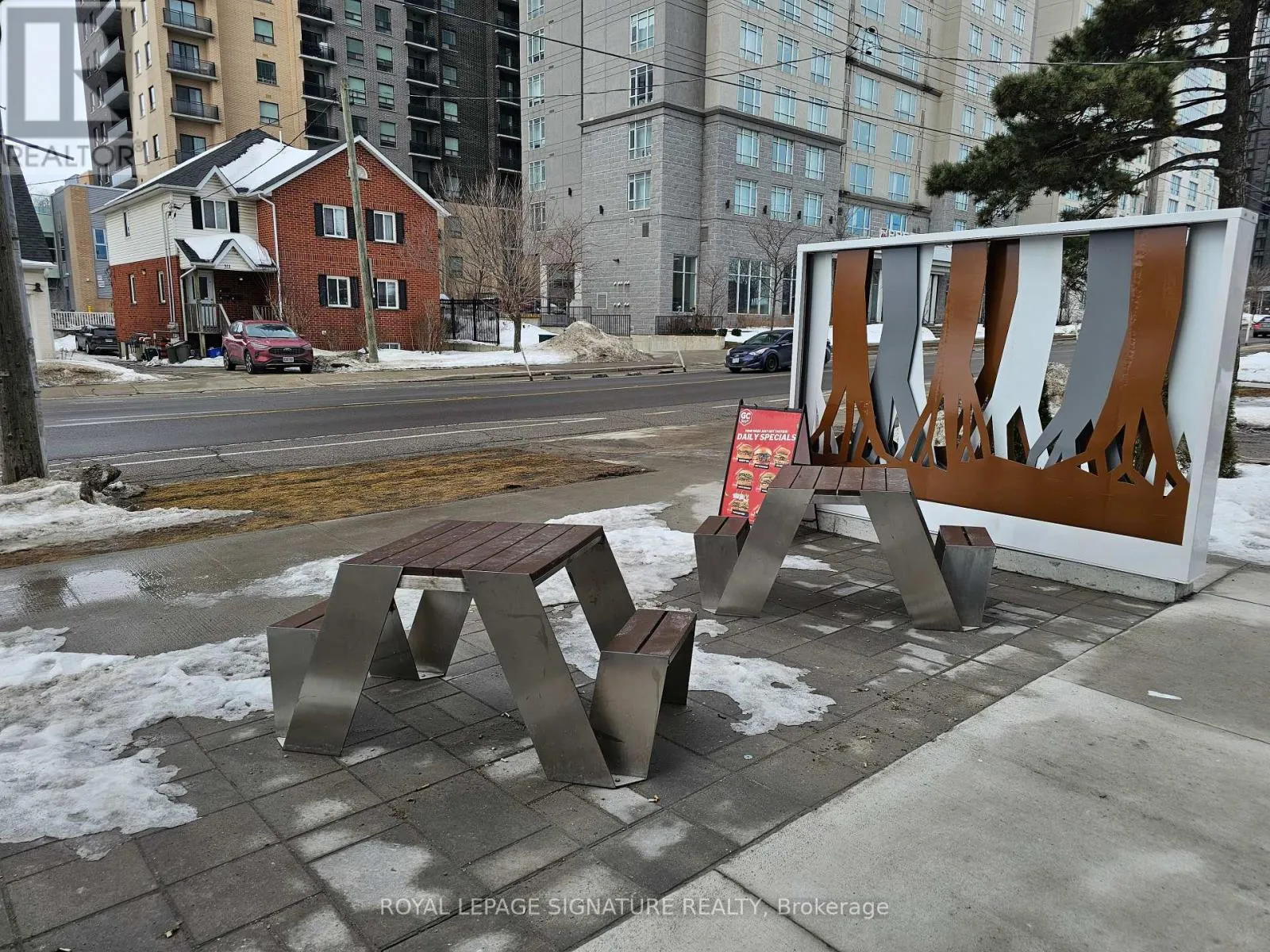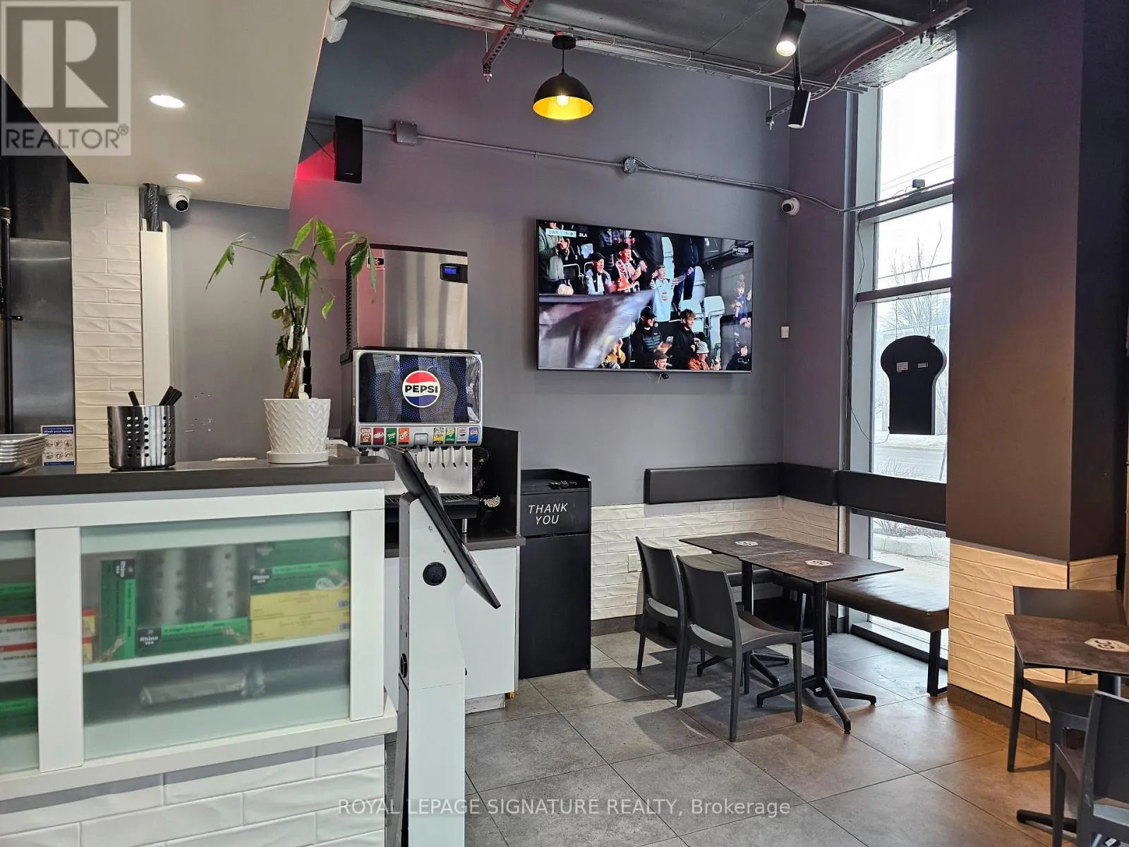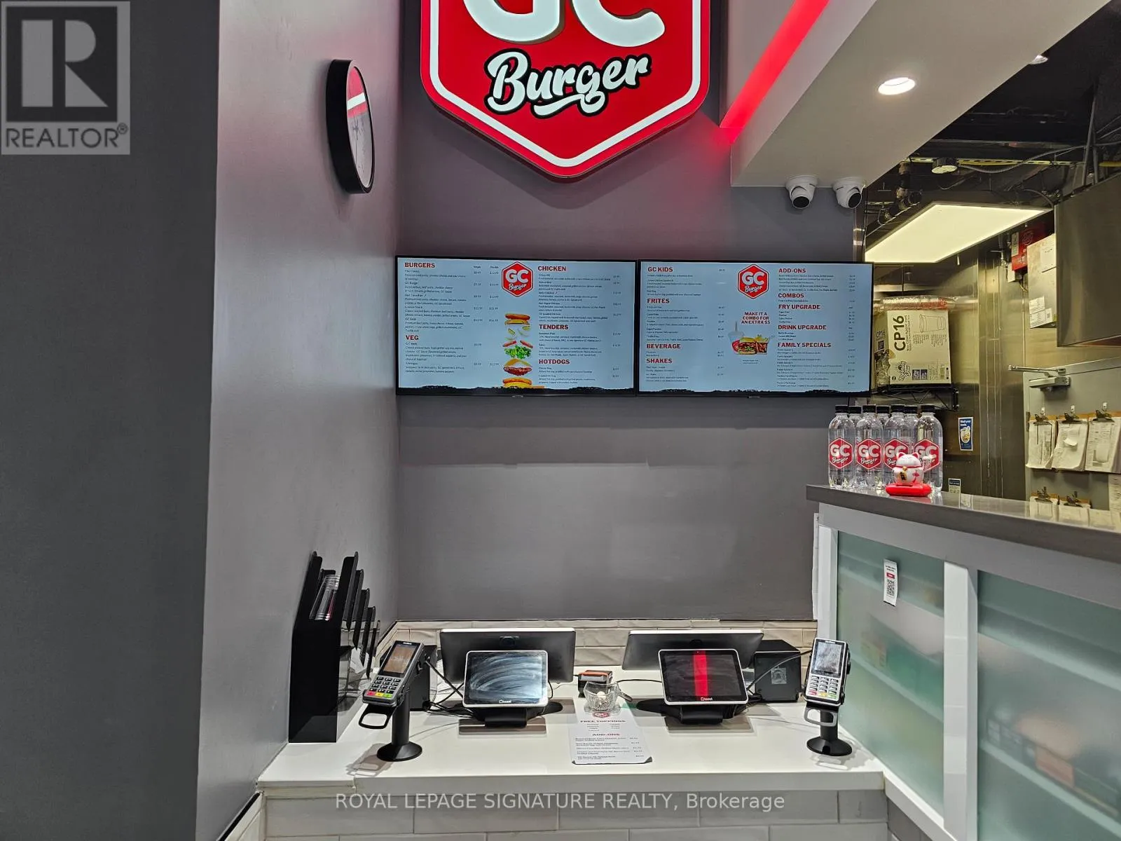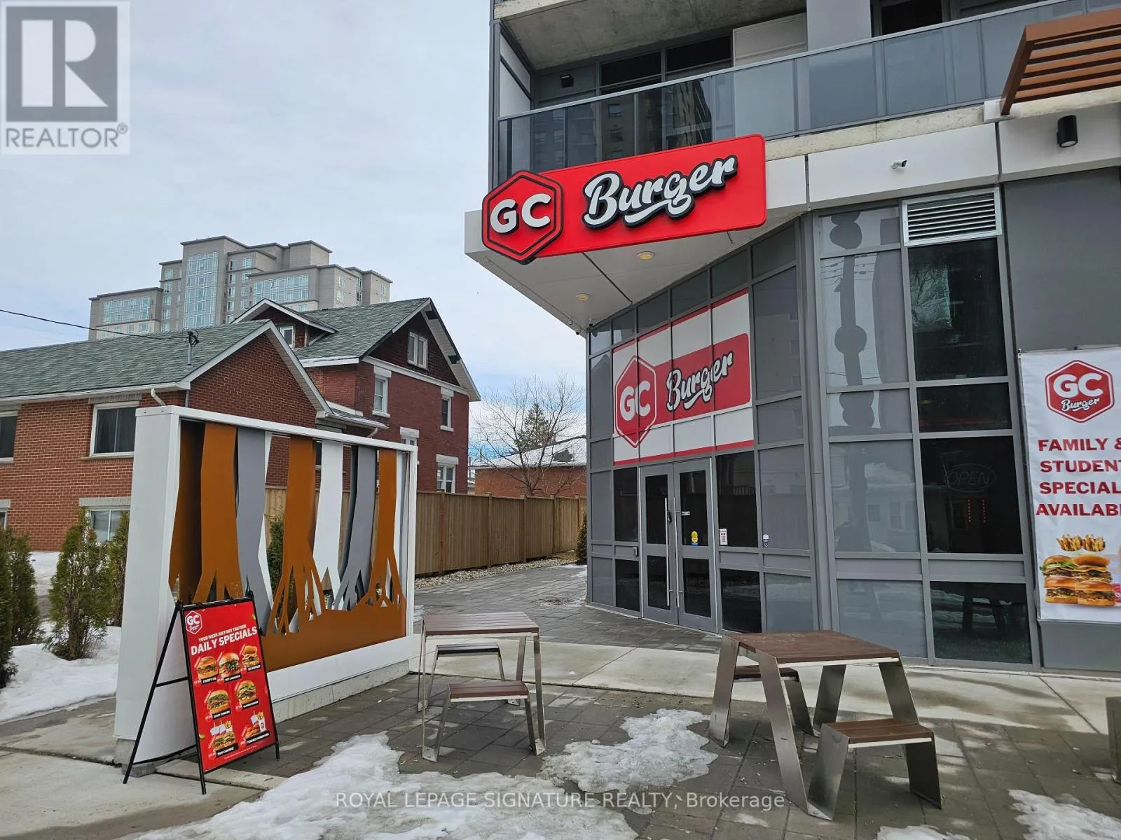 Hickory St E & King St N GC Burger franchise location in the heart of the University District in Kitchener-Waterloo.Situated at the base of 308 King, a newly built condo tower dedicated to student accommodation,this is a prime location for high foot traffic and visibility. The unit features 1,073 sq ft with a modern QSR layout, seating for 16 inside, plus a patio with additional seating. Equipped with a massive 16-ft commercial hood, two walk-in fridges, and a full line of new equipment this turnkey setup is ideal for efficient operations. Attractive lease rate of $5,487 gross rent including TMI with 4 + 5 years remaining. Full training to be provided pending franchisor approval, with royalties set at 6% + 2.5%. Please do not go direct or speak to staff. (id:27476)