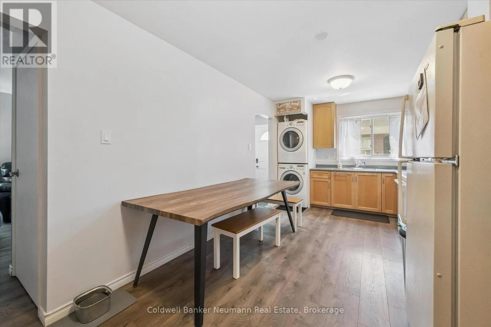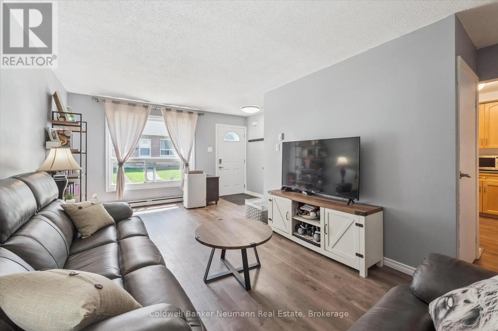 Bearing at Albert Welcome to 453 Albert Street, Unit 14 which is a beautifully maintained and thoughtfully updated townhome located in the heart of Kitchener-Waterloo.Step into the bright and open main floor, where the spacious living room overlooks the front yard and allows plenty of natural light through a large front window. The open-concept layout flows seamlessly into the kitchen and dining area, offering ample counter space, plenty of storage, and a convenient main-floor laundry.Upstairs, youll find two generously sized bedrooms, each with its own closet. The bathroom has been tastefully renovated with a modern tub, updated vanity, new toilet, and stylish sink providing a fresh and contemporary feel.The lower level features a third bedroom and a versatile recreation room, both with closets, and a shared three-piece bathroom. This level also includes a separate walk-up entrance, offering privacy and potential for additional rental income or multigenerational living.Notable updates include: luxury vinyl flooring, fresh paint throughout, and a fully renovated bathroom. Whether you're a first-time buyer or looking for a great investment opportunity, this property delivers. Ideally located close to local universities and colleges, on a convenient bus route, and with shopping and amenities just minutes away this home has it all. (id:27476)