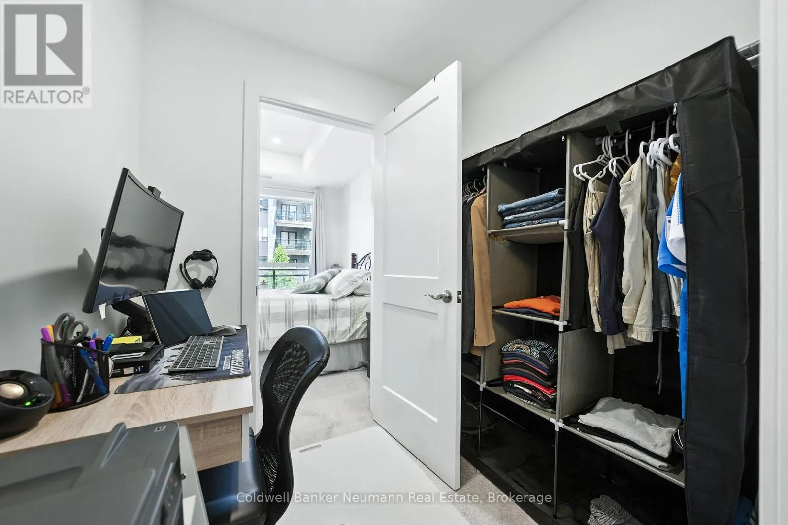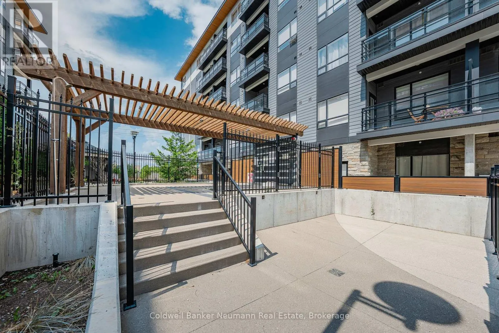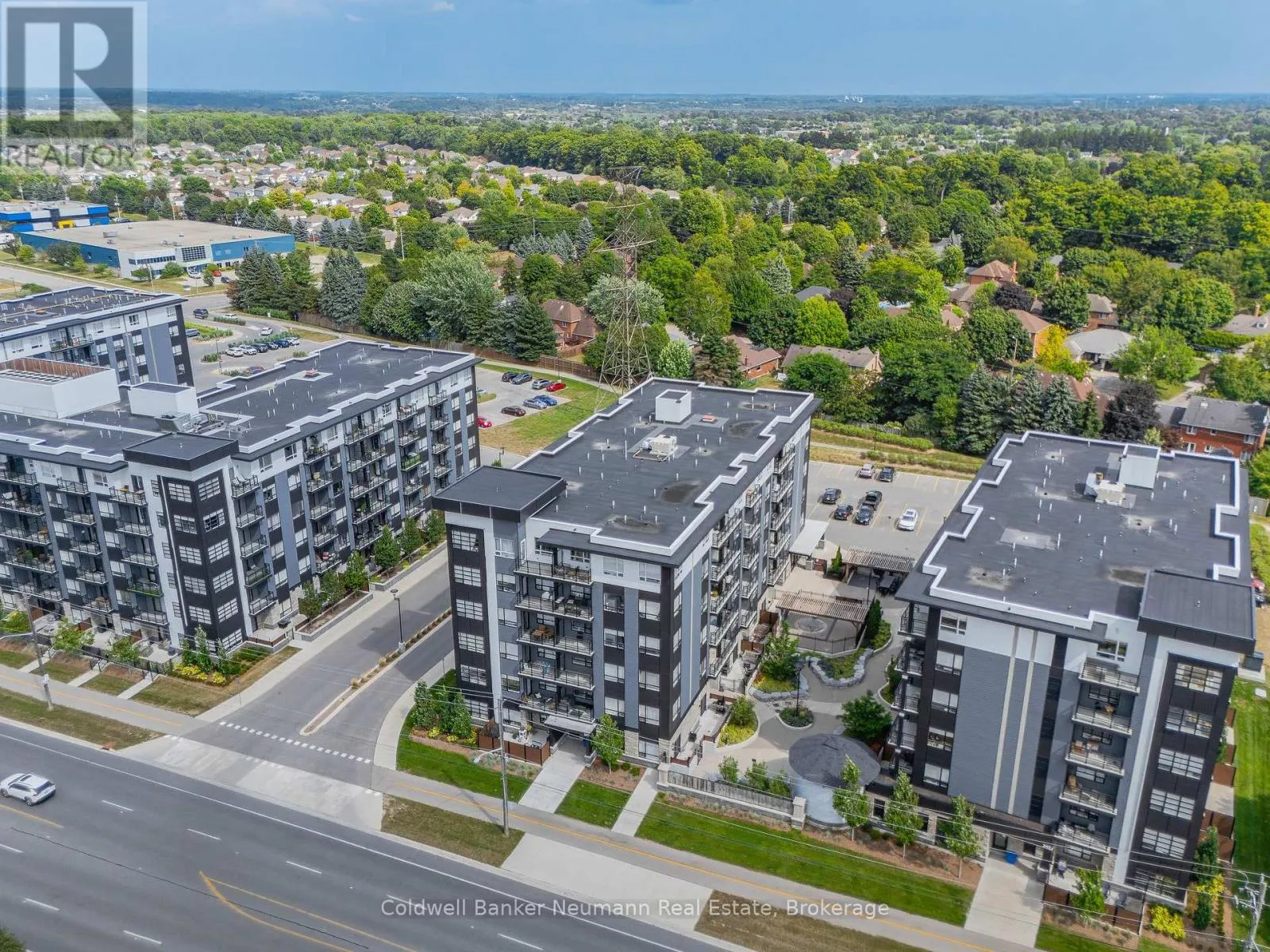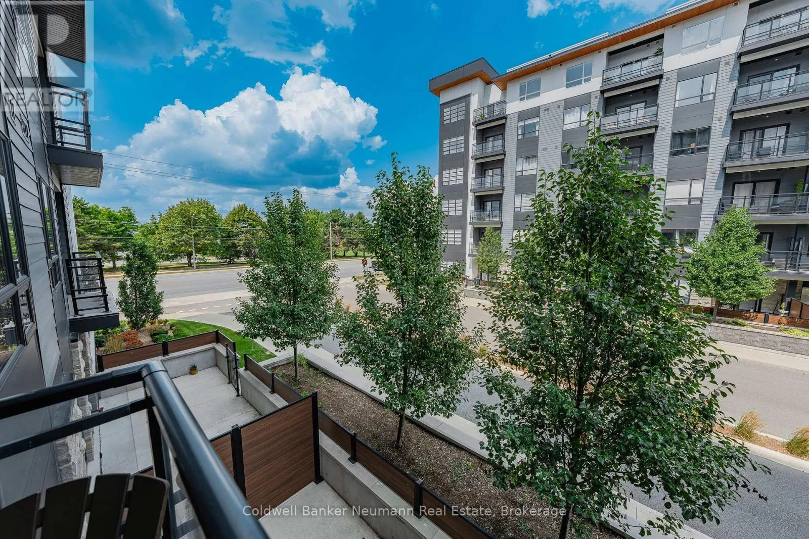 Northfield Dr E and Bridge St W An ideal investment opportunity for you... At "Blackstone", a spotless clean well cared for bright one bedroom unit strategically located on Northfield with public transit and many shopping and service amenities nearby, Quartz counters,, backsplash, fridge, stove, washer, dryer, dishwasher, balcony, sprinker system, underground parking, storage locker, terrace nearby with BBQ's, gas firepit and the Courtyard (id:27476)