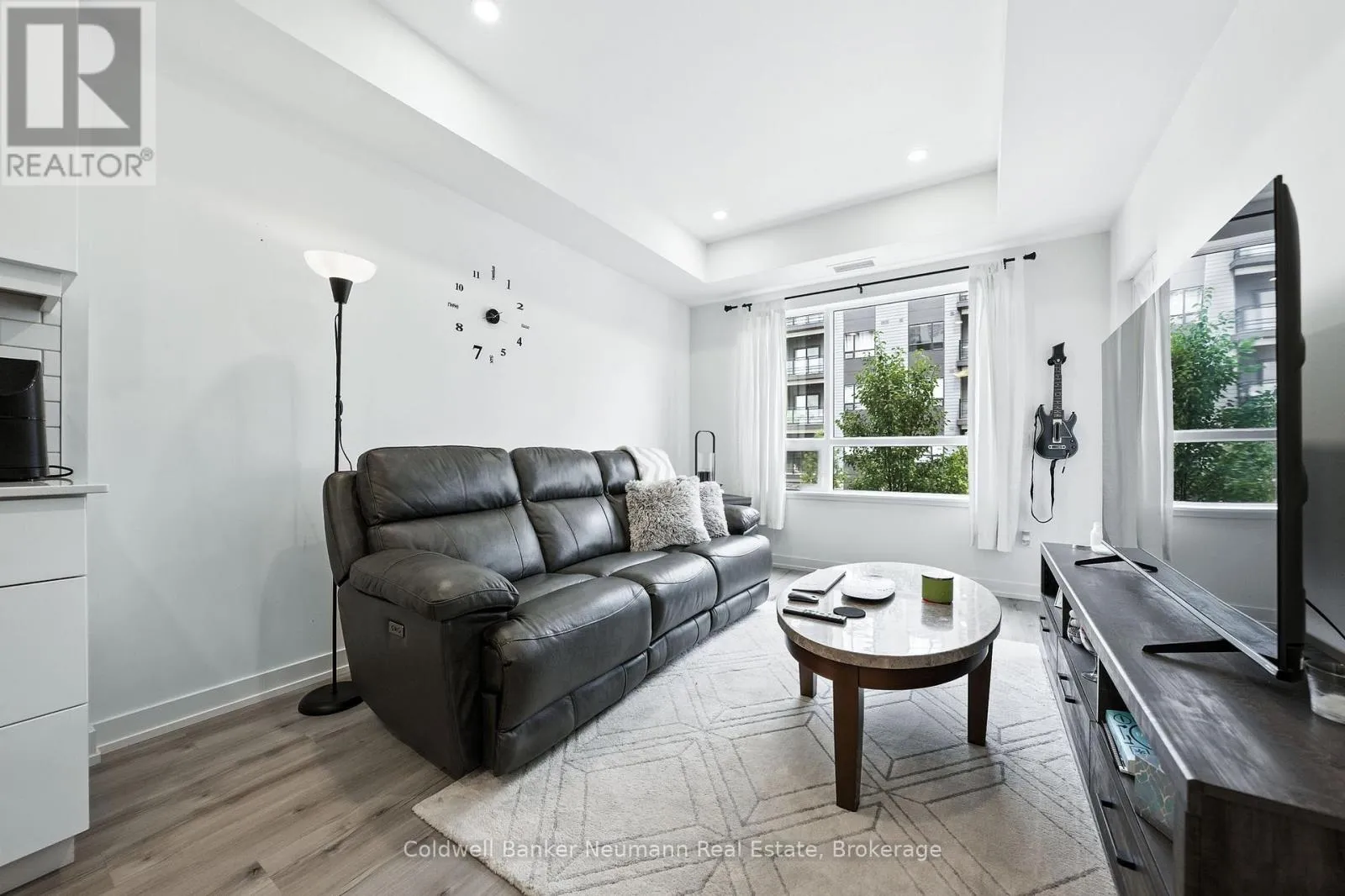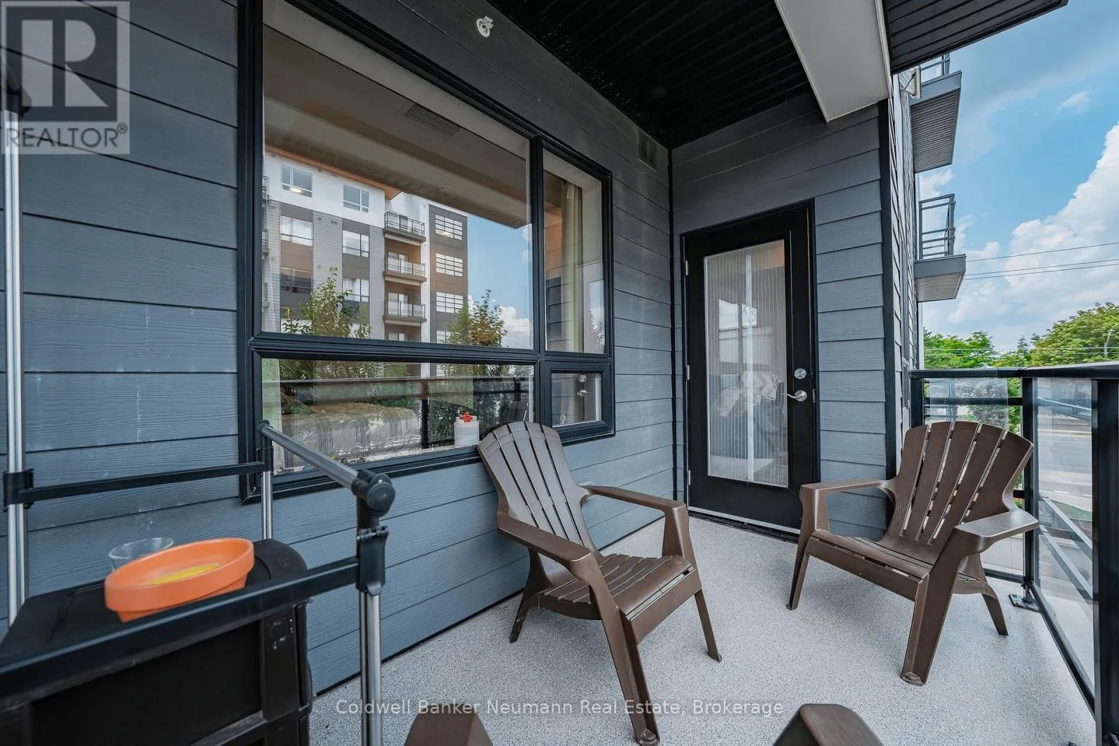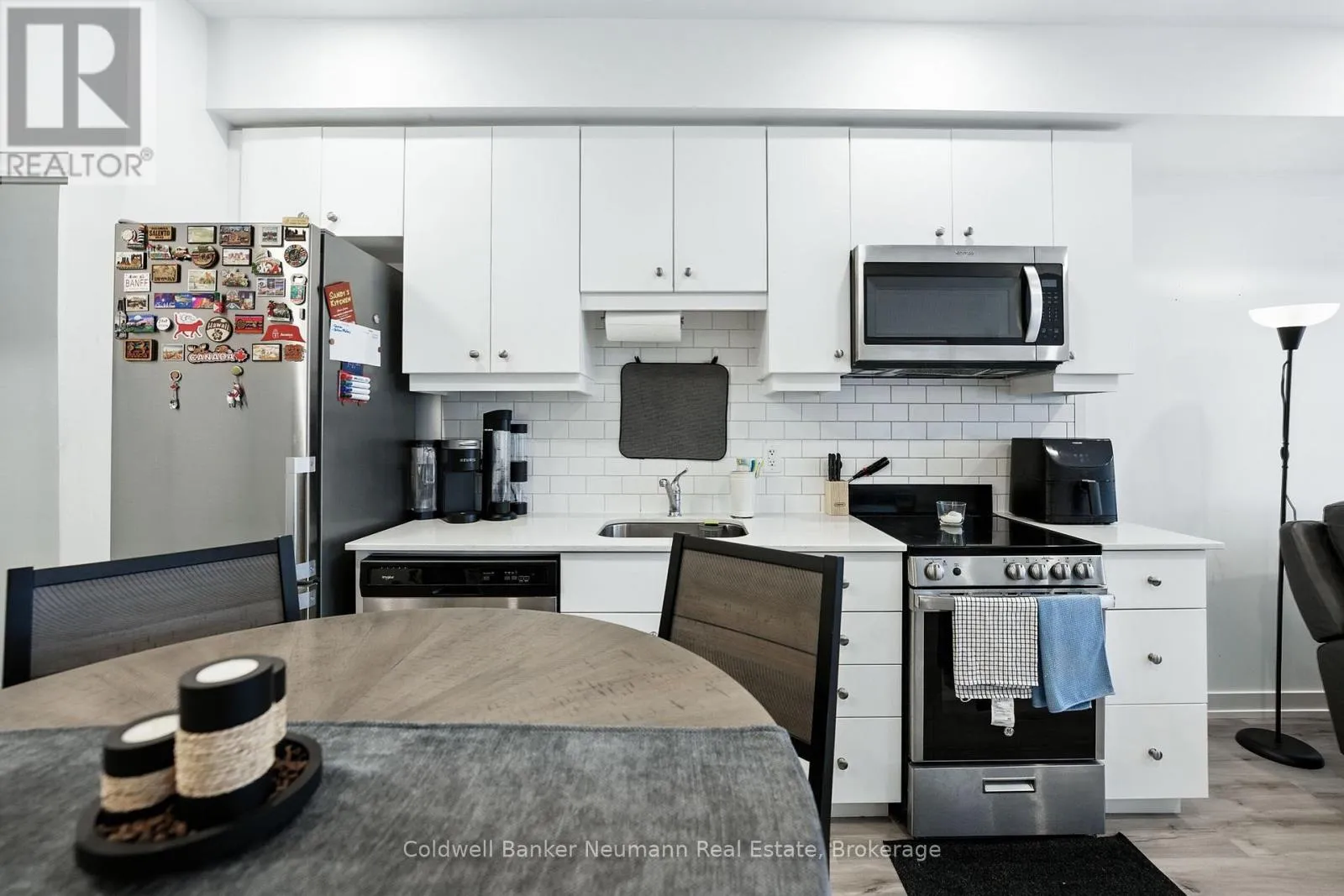 Northfield Dr E and Bridge St W An ideal investment opportunity for you... At "Blackstone", a spotless clean well cared for bright one bedroom unit strategically located on Northfield with public transit and many shopping and service amenities nearby, Quartz counters,, backsplash, fridge, stove, washer, dryer, dishwasher, balcony, sprinker system, underground parking, storage locker, terrace nearby with BBQ's, gas firepit and the Courtyard (id:27476)