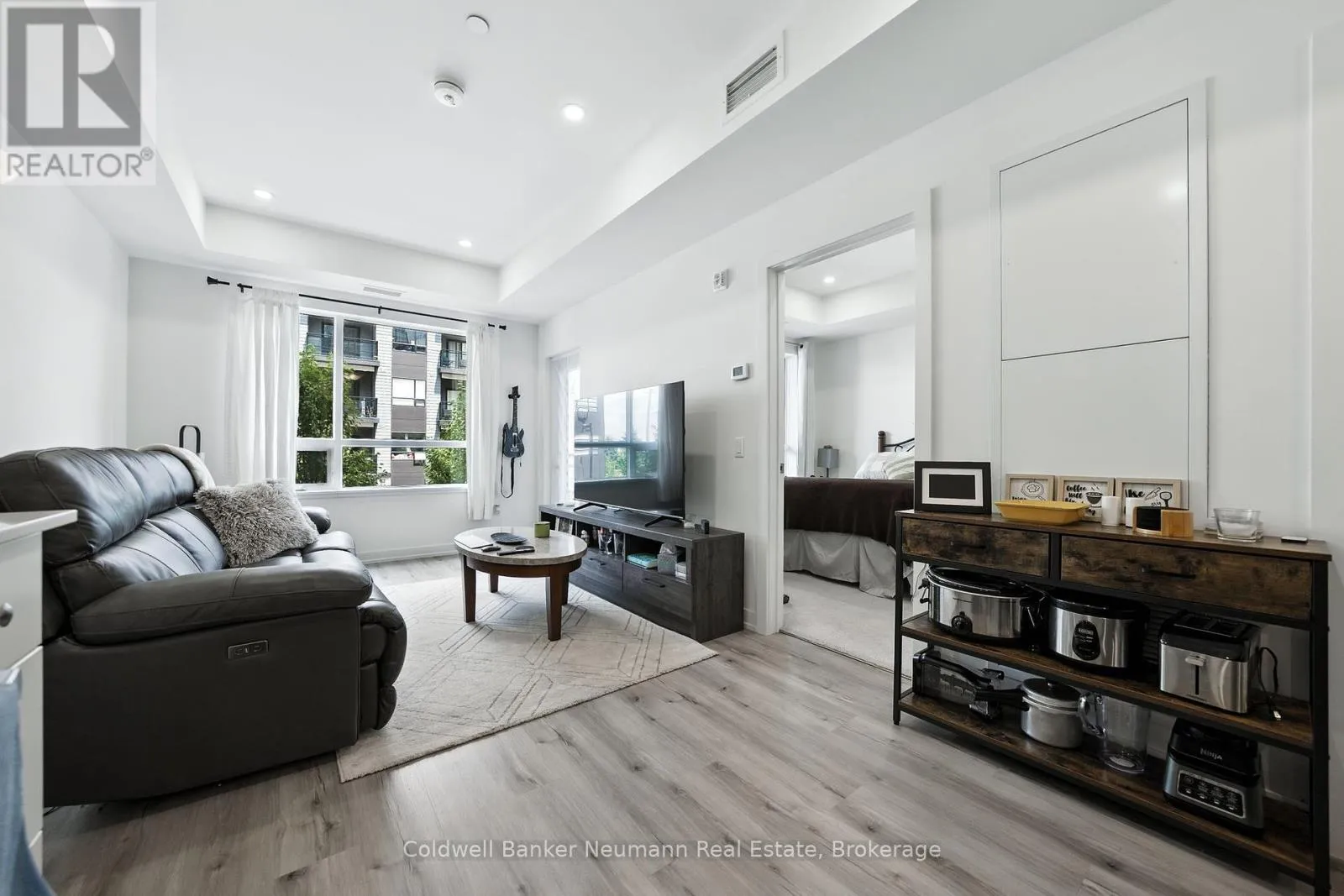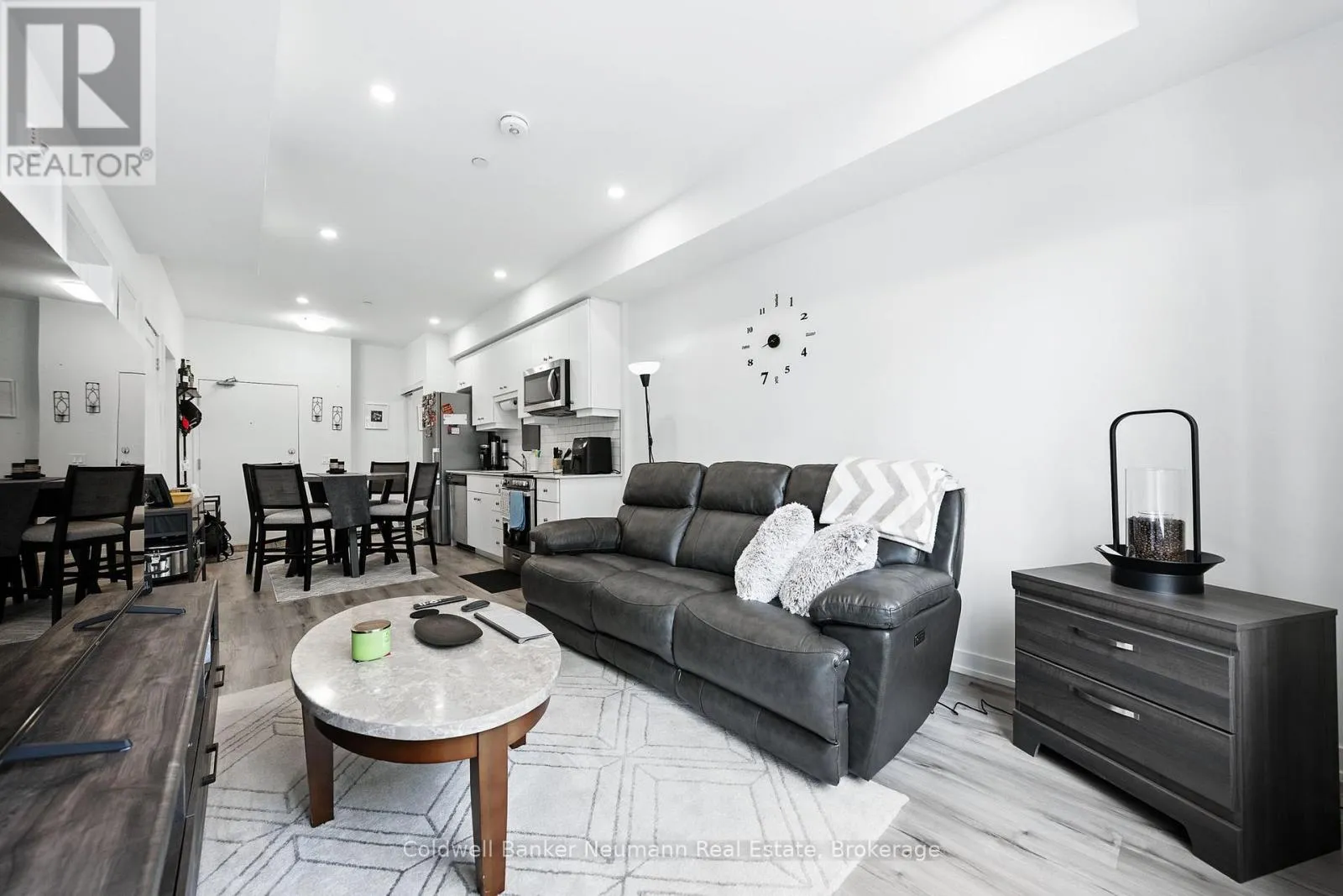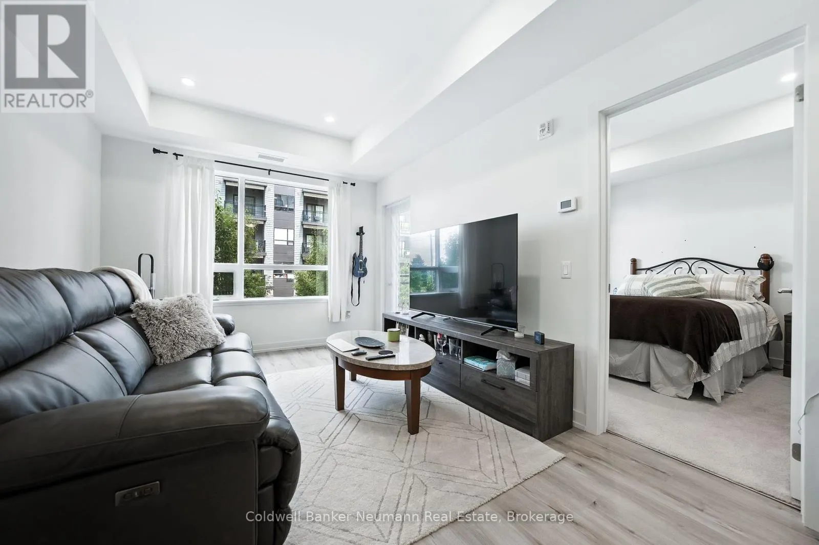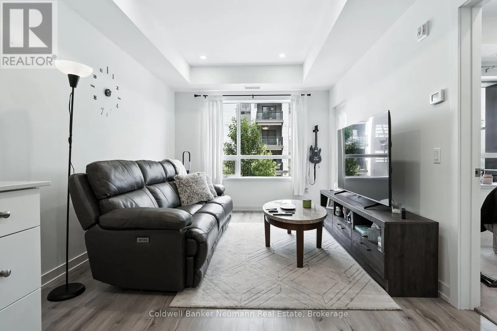 Northfield Dr E and Bridge St W An ideal investment opportunity for you... At "Blackstone", a spotless clean well cared for bright one bedroom unit strategically located on Northfield with public transit and many shopping and service amenities nearby, Quartz counters,, backsplash, fridge, stove, washer, dryer, dishwasher, balcony, sprinker system, underground parking, storage locker, terrace nearby with BBQ's, gas firepit and the Courtyard (id:27476)