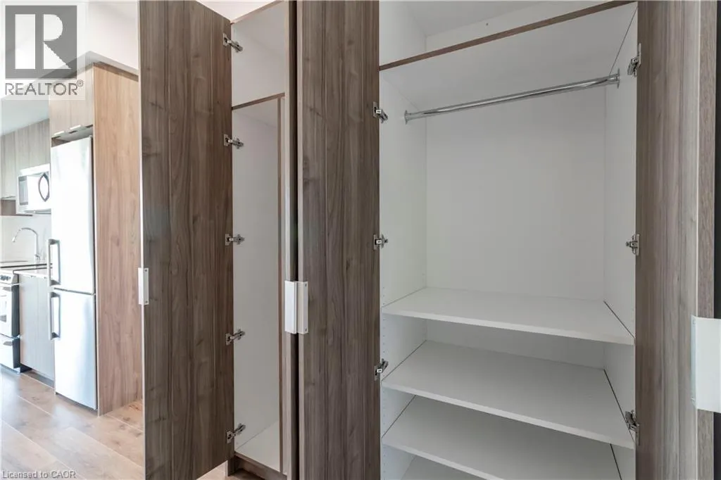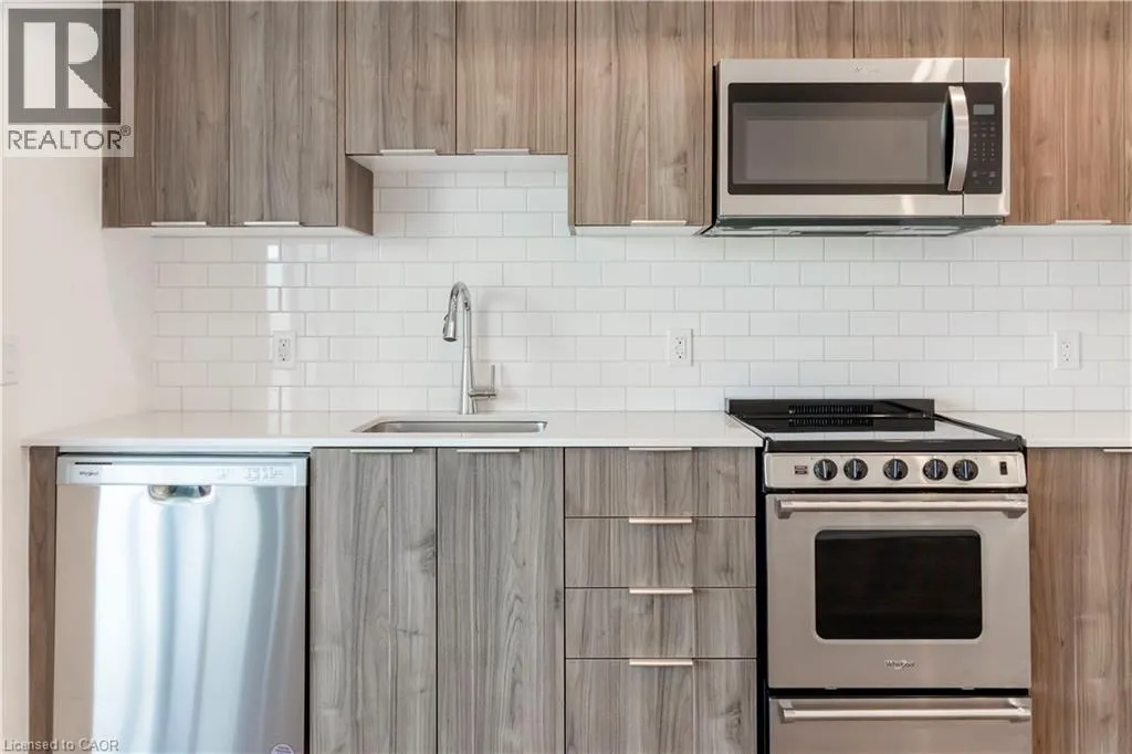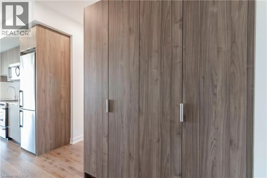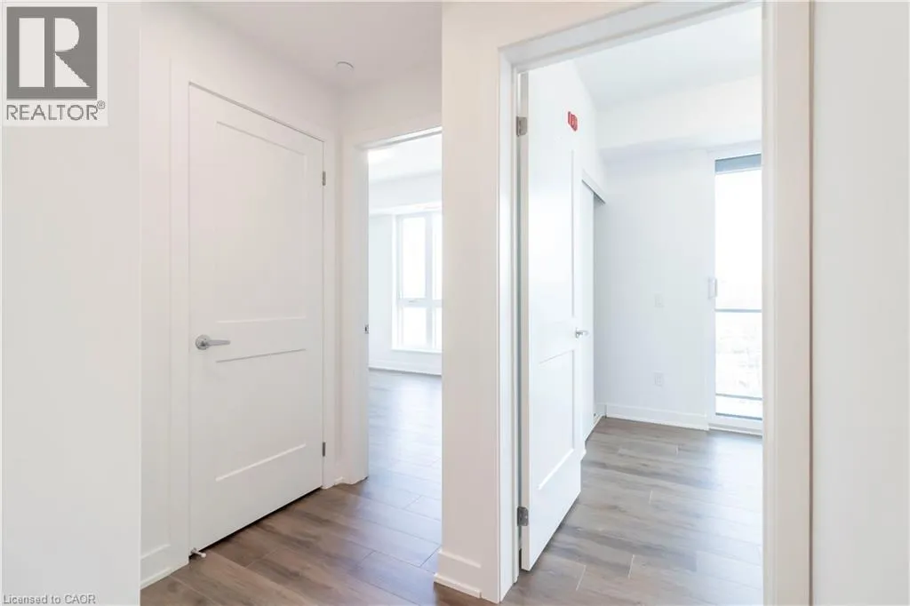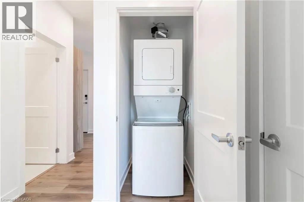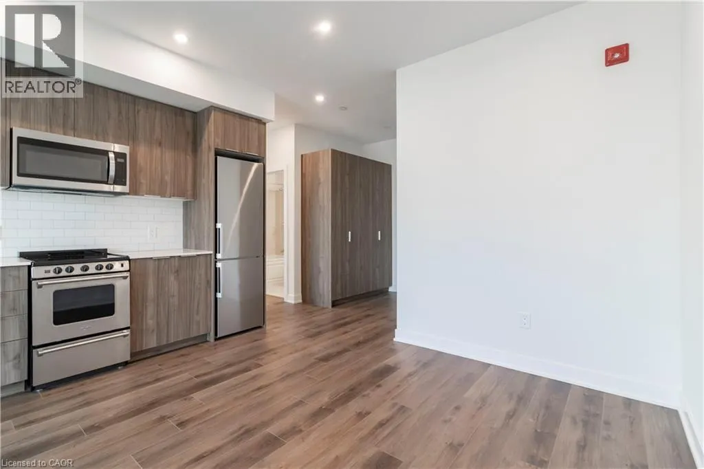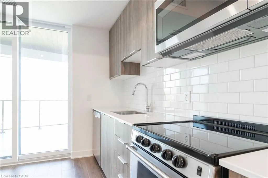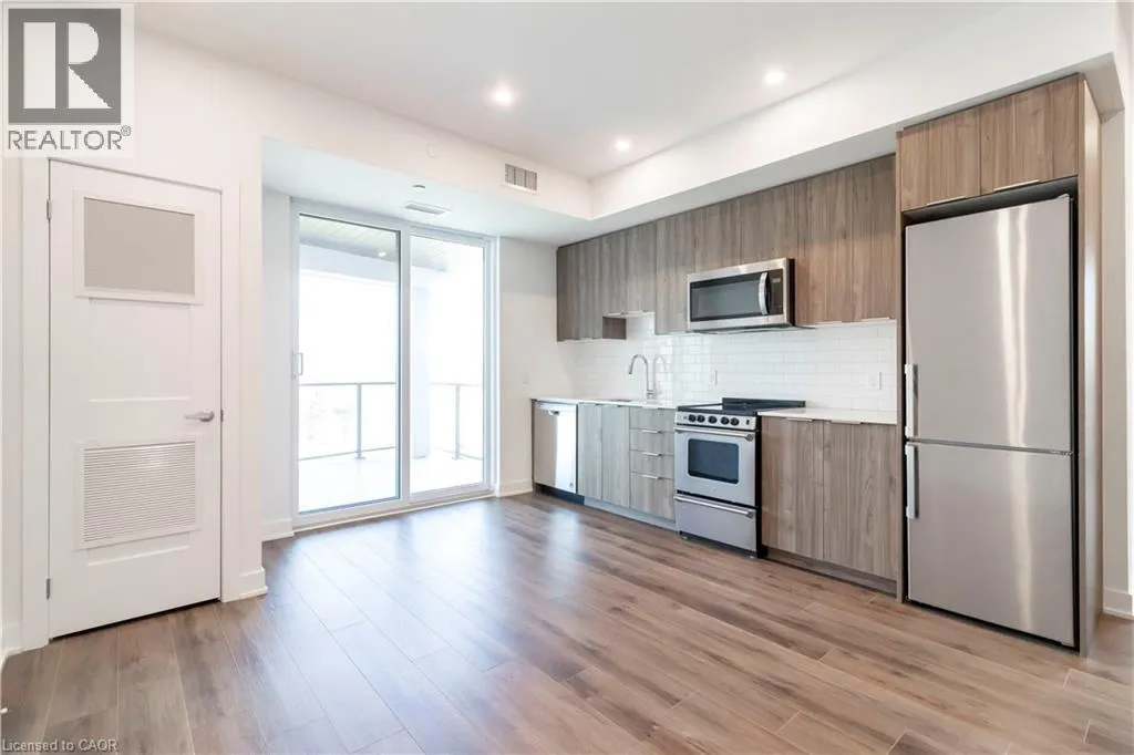 On Erb St between McDougall & Amos Live à la Moda â A Refined Expression of Urban Sophistication Step into this pristine, never-lived-in 2-bedroom, 2-bath retreat at Moda, where every detail exudes sophistication and intentional design. With 715 sq ft of elegant interior space complemented by 195 sq ft of outdoor living across two balconies, this home is perfect for both restful mornings and stylish entertaining. From the moment you enter, youâre welcomed by bespoke craftsmanship, a custom millwork coat closet and sleek designer lighting that sets the tone for modern luxury. Light pours in through full-height black-framed windows, illuminating a premium kitchen package with quartz counters and stainless-steel appliances. The primary suite is a quiet sanctuary: a walk-through closet framed by pocket doors leads into an ensuite filled with natural light through its own window. The guest bedroom, too, offers its own balcony, and creates a personal dimension to shared spaces. With its intuitive flow and purpose-driven design, this unit feels right at home in the kind of vibrant urban centre where innovation and lifestyle intersect. Positioned just minutes from Uptown, University of Waterloo, Wilfrid Laurier University, the Waterloo Recreation Complex, and Hydrocut trailsâitâs made for an active, connected lifestyle. Cyclists will especially appreciate secure bike parking, a maintenance station, and bike-friendly routes. Moda puts convenience and community first, featuring a co-working lounge with coffee bar and meeting pods, pet wash station, EV-ready parking, a secure parcel room, and optional storage lockers, these are amenities that feel both curated and practical.Your home is more than a place to liveâitâs a statement. Welcome to Moda Modern Loft Living. (id:27476)