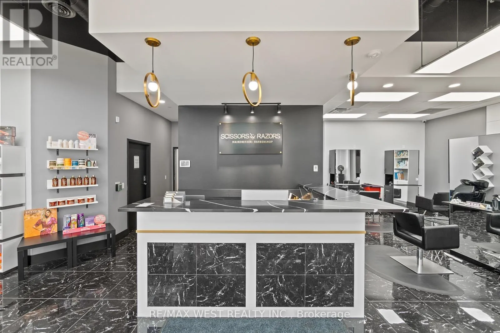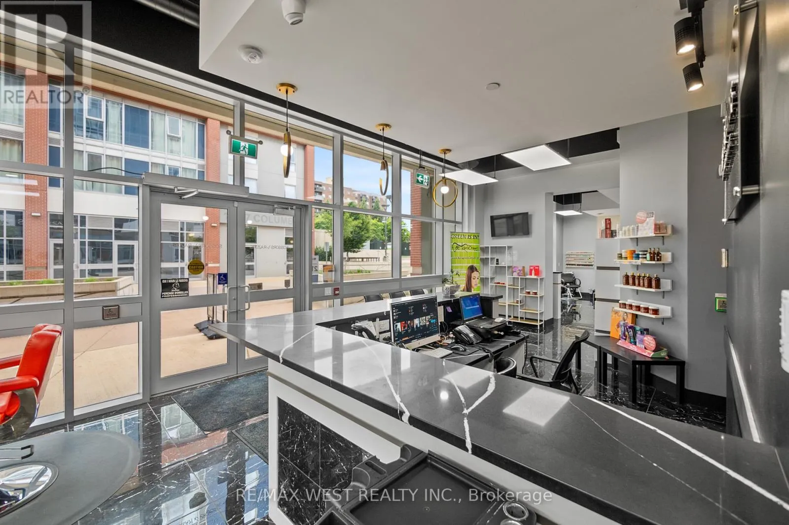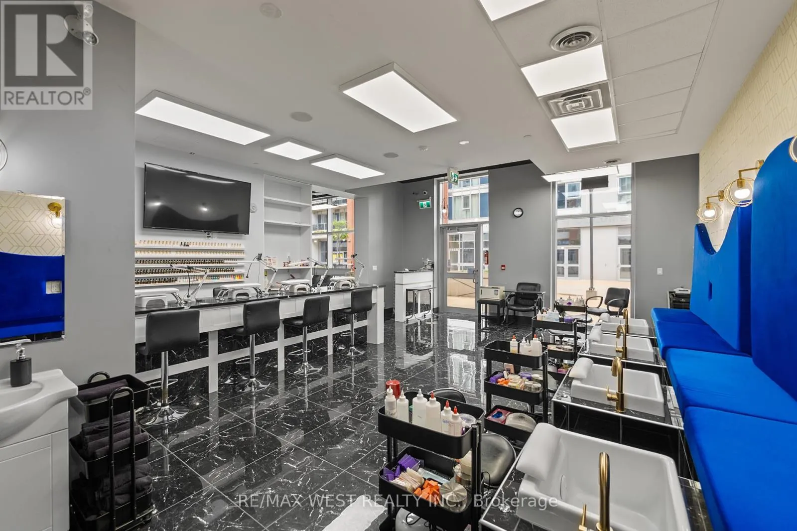Cross Streets: Columbia St W & Albert St. ** Directions: NA. An incredible opportunity to own a turnkey Beauty Salon Business with a built-in Bar/Cafe with a liquor license in a prestigious neighborhood at the heart of Waterloo. Minutes from The University of Waterloo and Laurier. 7 years in business. Large loyal clientele. The salon is divided into 3 sections: Nail Spa, Hair Salon, and a Bar/Cafe that serves Spirits, Bubble Tea, Coffee, and Deserts. Fully renovated with luxury modern finishes, custom-made fixtures, and high-end equipment + inventory. For Sale "as is", including all furniture: 6 hairstyling stations, 2 hair sinks, all shelving, desks & chairs, fully stocked back bar, color bar, and retail area, 4 Manicure Stations, 5 Pedicure Stations. Current employees willing to stay. Guaranteed positive cashflow from day one. Perfect for an investor, hairstylist or aesthetician. Surrounded by anchor businesses and hundreds of residents. (id:27476)