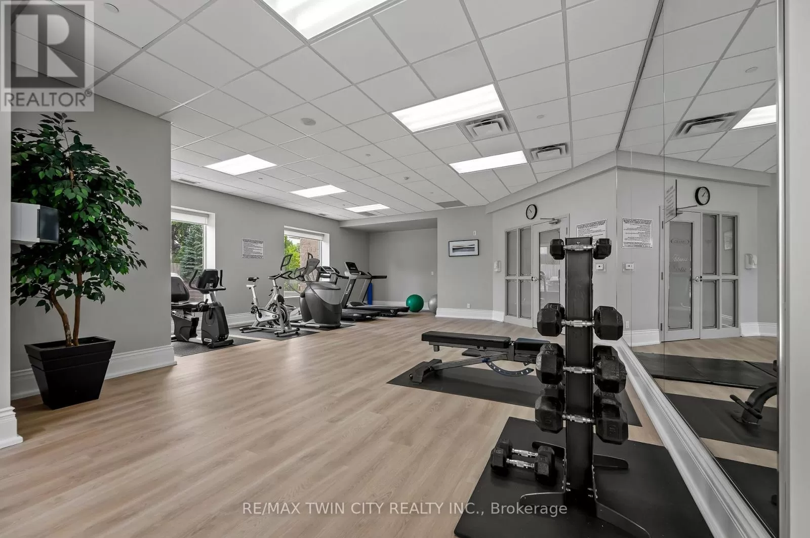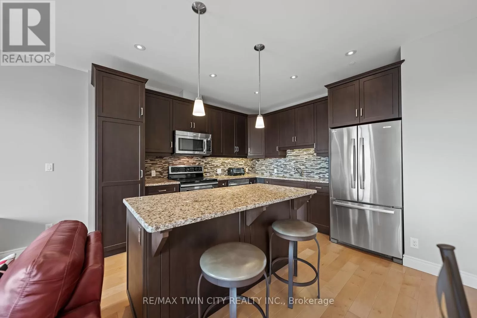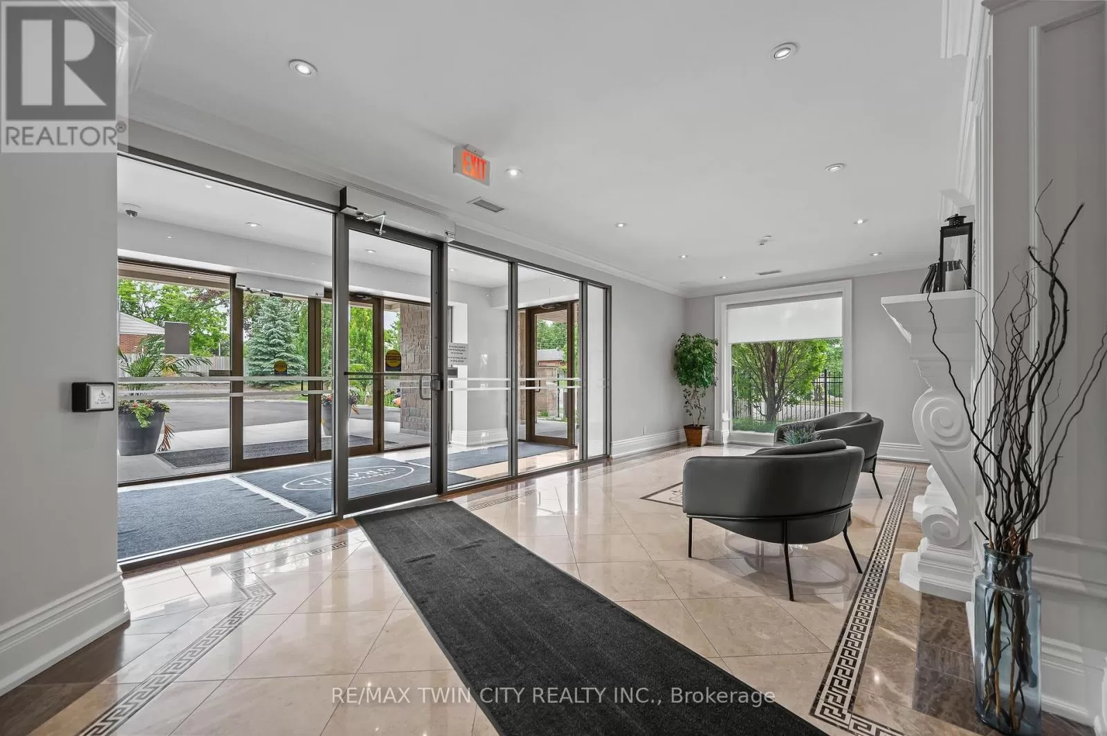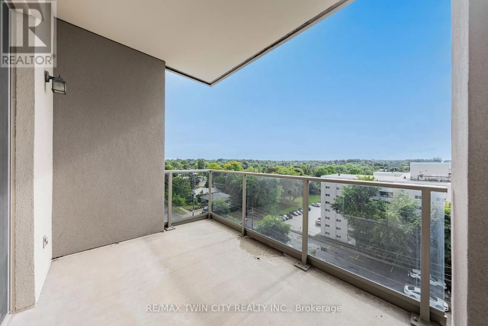 Cross Streets: WESTMOUNT ROAD S. ** Directions: WESTMOUNT ROAD S TO ERB STREET W. Experience upscale condo living at the Westmount Grand, one of Waterloos most prestigious addresses! This impressive west-facing 1-bedroom + den, 2-bathroom suite combines luxury, comfort, and convenience in the heart of Uptown Waterloo. Inside, you'll find 9 ceilings, a spacious open-concept kitchen with island, granite counters, stainless steel appliances, under-cabinet lighting, and a stylish backsplash. The expansive living and dining areas are framed by large windows, filling the space with natural light and showcasing panoramic city views. A bonus flex space offers the perfect spot for a home office. Hardwood flooring flows seamlessly throughout the main living area, adding warmth and elegance. The oversized primary bedroom is a true retreat, featuring a large window, dual closets, and a 5-piece spa-inspired ensuite. Additional highlights include a second full bathroom, in-suite laundry, and a storage room. Step out to the spacious covered balcony to take in spectacular sunsets! This unit also includes one underground parking space and one locker. Residents of Westmount Grand enjoy an array of first-class amenities: a rooftop terrace, library, fitness centre, sauna, entertainment room, and secure underground parking. Perfectly located, you'll be steps from Uptown Waterloos restaurants, shops, and parks, and just minutes from the University of Waterloo and Wilfrid Laurier University. Luxury, lifestyle, and location, this condo has it all! (id:27476)