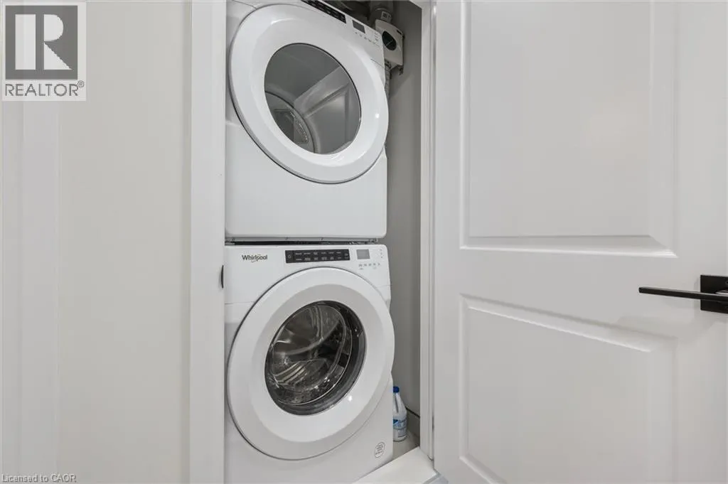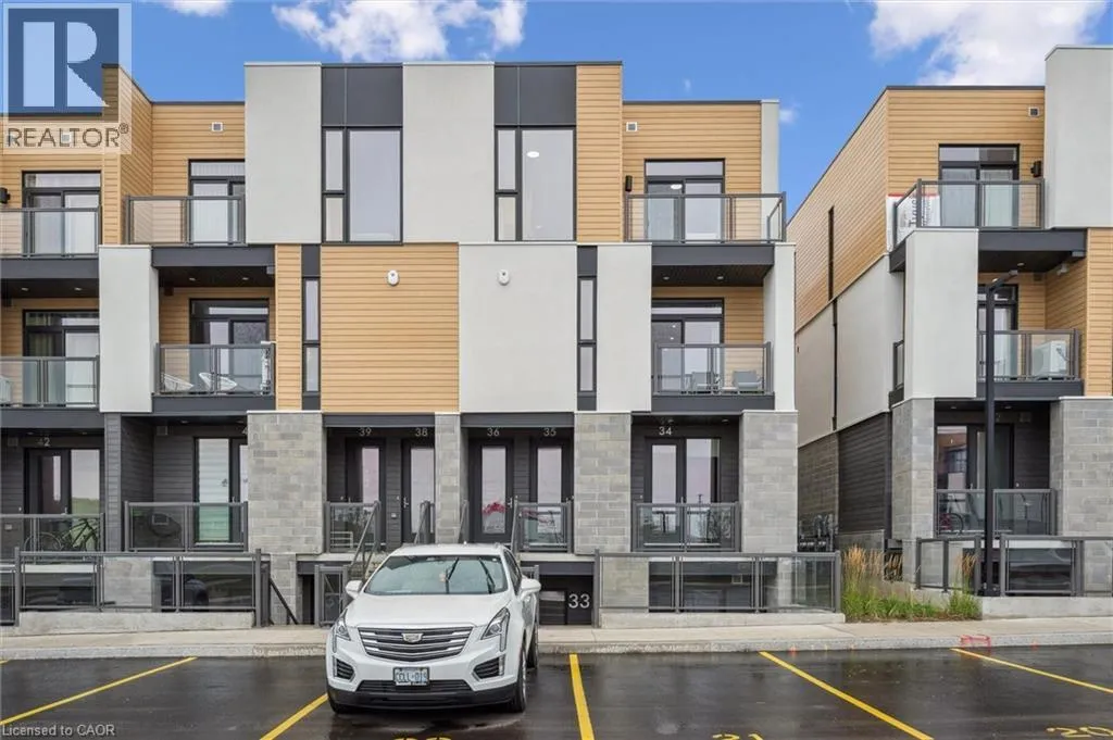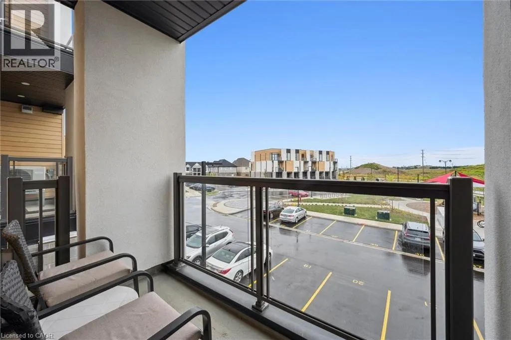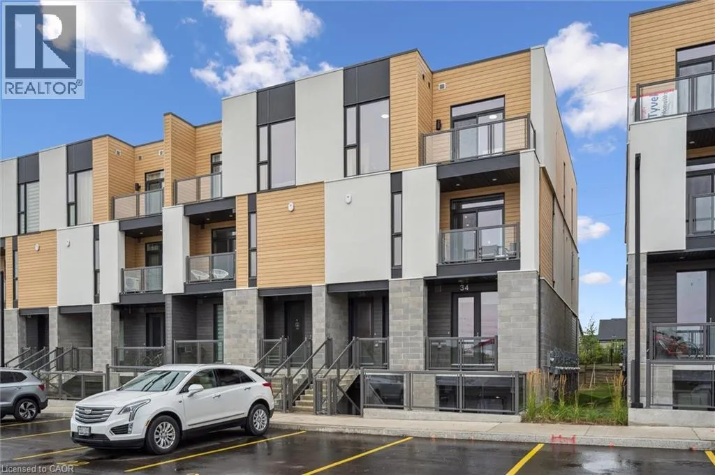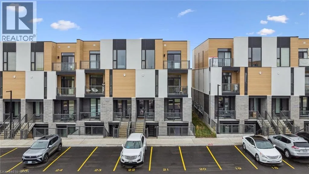 Columbia Street West to Ladyslipper Drive then Ladyslipper Drive to Foamflower Place Welcome to this beautifully upgraded 2-bedroom, 2.5-bath stacked townhome in the desirable Vista Hills community of Waterloo. This modern home is filled with premium finishes and thoughtful details. The kitchen shines with granite countertops, stainless steel appliances, pot lights, upgraded fixtures, and sleek black hardware throughout. The open-concept main floor features 9-foot ceilings, oversized windows, and durable laminate flooring, with sliding doors leading to one of two private balconies. Upstairs, both bedrooms are equipped with smart lighting, and the primary suite offers a walk-in closet, upgraded ensuite with glass shower, and access to a private balcony. A convenient upstairs laundry is located near the bedrooms, and the bathrooms are finished with quartz countertops for a touch of luxury. Additional highlights include a smart thermostat, upgraded light fixtures, and carpet-free living except on the stairs. With two parking spaces included, this home delivers both comfort and convenience. Located just minutes from shopping, dining, Costco, schools, universities, public transit, and The Boardwalk, this property combines style, functionality, and locationâperfect for families, professionals, or investors alike. (id:27476)