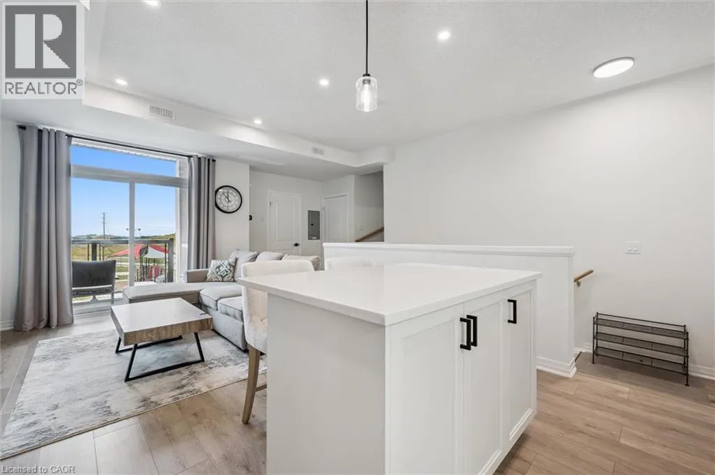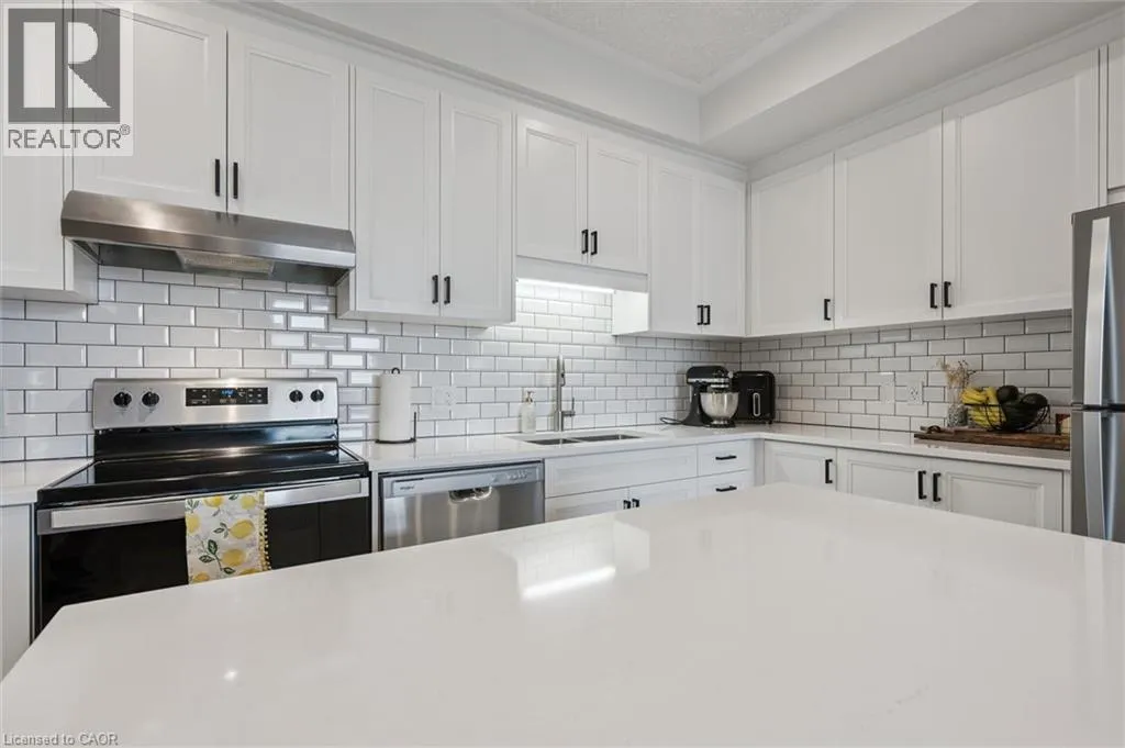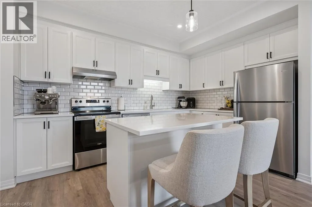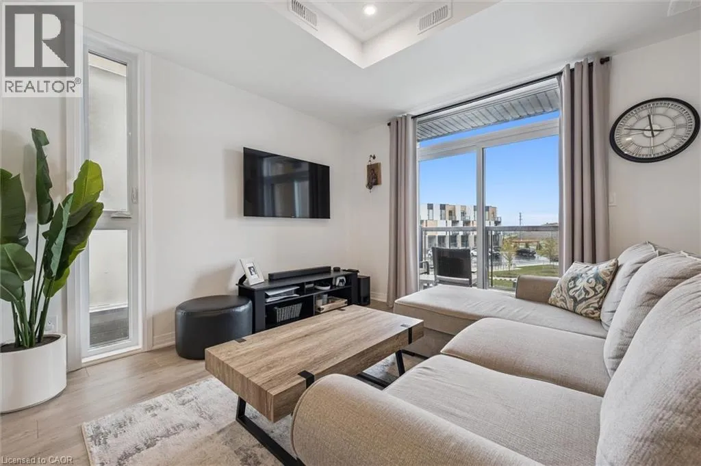 Columbia Street West to Ladyslipper Drive then Ladyslipper Drive to Foamflower Place Welcome to this beautifully upgraded 2-bedroom, 2.5-bath stacked townhome in the desirable Vista Hills community of Waterloo. This modern home is filled with premium finishes and thoughtful details. The kitchen shines with granite countertops, stainless steel appliances, pot lights, upgraded fixtures, and sleek black hardware throughout. The open-concept main floor features 9-foot ceilings, oversized windows, and durable laminate flooring, with sliding doors leading to one of two private balconies. Upstairs, both bedrooms are equipped with smart lighting, and the primary suite offers a walk-in closet, upgraded ensuite with glass shower, and access to a private balcony. A convenient upstairs laundry is located near the bedrooms, and the bathrooms are finished with quartz countertops for a touch of luxury. Additional highlights include a smart thermostat, upgraded light fixtures, and carpet-free living except on the stairs. With two parking spaces included, this home delivers both comfort and convenience. Located just minutes from shopping, dining, Costco, schools, universities, public transit, and The Boardwalk, this property combines style, functionality, and locationâperfect for families, professionals, or investors alike. (id:27476)