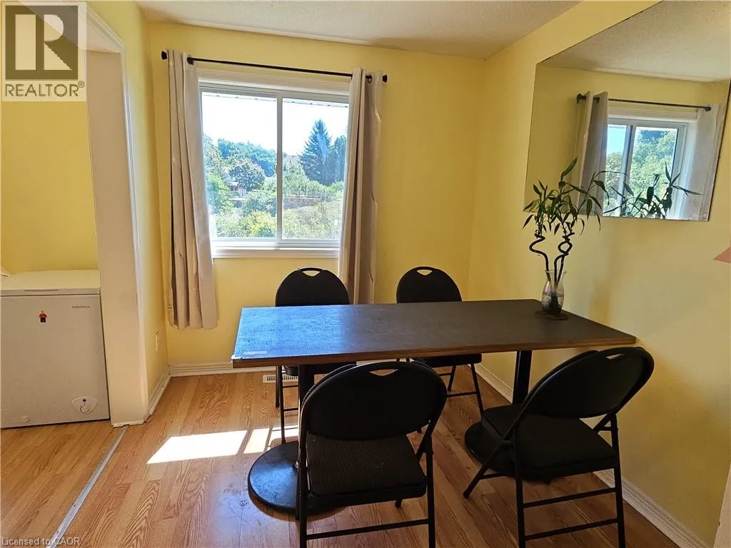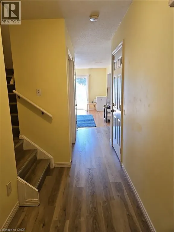 Columbia St W to ERBSVILLE Road MOVE-IN READY! This carpet-free townhouse is conveniently Located in the quiet Westgate Manor complex in Beechwood area of Waterloo. Kitchen was updated in 2024, the bright living room features a sliding door that opens to a sizable deck overlooking the beautiful view of the backyard. The second floor offers 3 bedrooms, and the master bedroom has privileged access to the main bathroom. The walkout basement has a 3pc bathroom, a laundry room with plenty of storage space, and the large rec-room features a gas fireplace. Great location close to many amenities, within walking distance to schools, bus routes, shopping centers. A short drive to the Boardwalk, and both Waterloo and Laurier University. (id:27476)